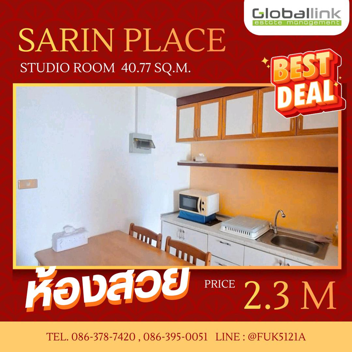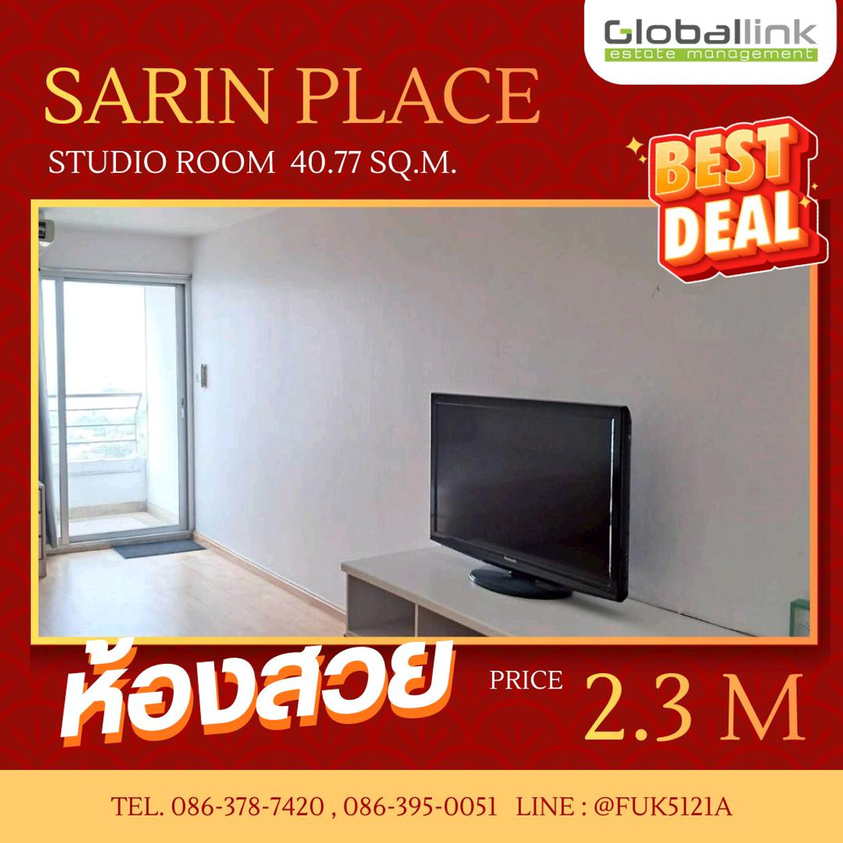 (GBL2366) ขาย‼️ คอนโด สารินเพลส🏢 (Sarin Place) ➡️ ชั้น 17 ➡️ ห้องขนาด 40.77 ตร.ม. ➡️ Studio ➡️ 1 ห้องน้ำ 👉 เครื่องใช้ไฟฟ้าและ เฟอร์นิเจอร์ 🚪 📌 ทีวี 📌 แอร์ 📌 ไมโครเวฟ 📌 ตู้เย็น 📌 โซฟา 📌 ที่นอน 📌 โต๊ะทา
