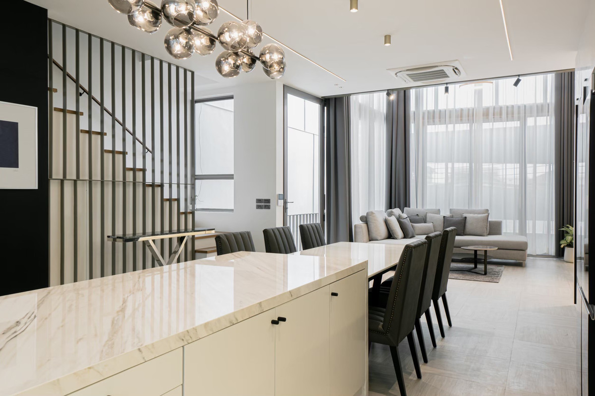 ขายโฮมออฟฟิศโครงการ Luxe 35 รัชดา - ลาดพร้าว โฮมออฟฟิศ 3.5 ชั้น ตกแต่งแล้ว พร้อมเฟอร์นิเจอร์ Built-in สวย ฟังก์ชั่นครบ พร้อมเฟอร์นิเจอร์และเครื่องใช้ไฟฟ้าครบที่มี พื้นที่ใช้สอย 310 ตรม. 4 ห้องนอน 5 ห้องน้ำ 1 ห้องครัว พร้อมลิฟต์โดยสารขึ้นลงสะดวก จอดรถได้ถึง 4 คัน มาพร้อมฟังก์ชั่นพื้นที่จัดเต็ม และดีไซน์ที่เรียบหรู บนทำเลศักยภาพ ใน ซ.ลาดพร้าว 35 ใจกลางย่าน รัชดา - ลาดพร้าว ที่ใกล้ทั้งรถไฟฟ้าสายสีเหลือง สถานีภาวนา รวมถึง Interchange สถานีลาดพร้าว สะดวกสบายเรื่องการเดินทาง ใกล้ย่านธุรกิจและห้างสรรพสินค้าหลายแห่ง มีความปลอดภัยเพราะ พร้อมด้วยกล้องวงจรปิด CCTV ถึง 4 จุด ทั้งฝั่งหน้าบ้านและหลังบ้านของชั้น 1 กับชั้นลอย รวมถึงมี Intercom ให้แขกผู้ติดต่อสื่อสารกับคนข้างในก่อนเข้าสู่พื้นที่บ้าน นอกจากนี้ยังติดตั้ง Alarm Sensor ตามประตู - หน้าต่าง ทุกชั้น และรองรับระบบ Smart Home Automation สำหรับสั่งเปิดปิดไฟ ผ้าม่าน รวมถึงประตูรั้ว ผ่านโทรศัพท์สมาร์ตโฟนให้ด้วย Surrounding ห้างสรรพสินค้า Central ลาดพร้าว Crstral Park CDC Chic Republic Tesco Lotus สถานศึกษา โรงเรียนหอวัง โรงเรียนสตรีวิทยา 2 โรงเรียนนานาชาติเซนต์จอห์น มหาวิทยาลัยราชภัฎจันทรเกษม โรงพยาบาล โรงพยาบาลเปาโล โรงพยาบาลลาดพร้าว ติดต่อสอบถามข้อมูลเพิ่มเติม คุณเบียร์ Line id :Arabeer105 Tel. คลิกเพื่อดูเบอร์โทรติดต่อ WhatsApp คลิกเพื่อดูเบอร์โทรติดต่อ