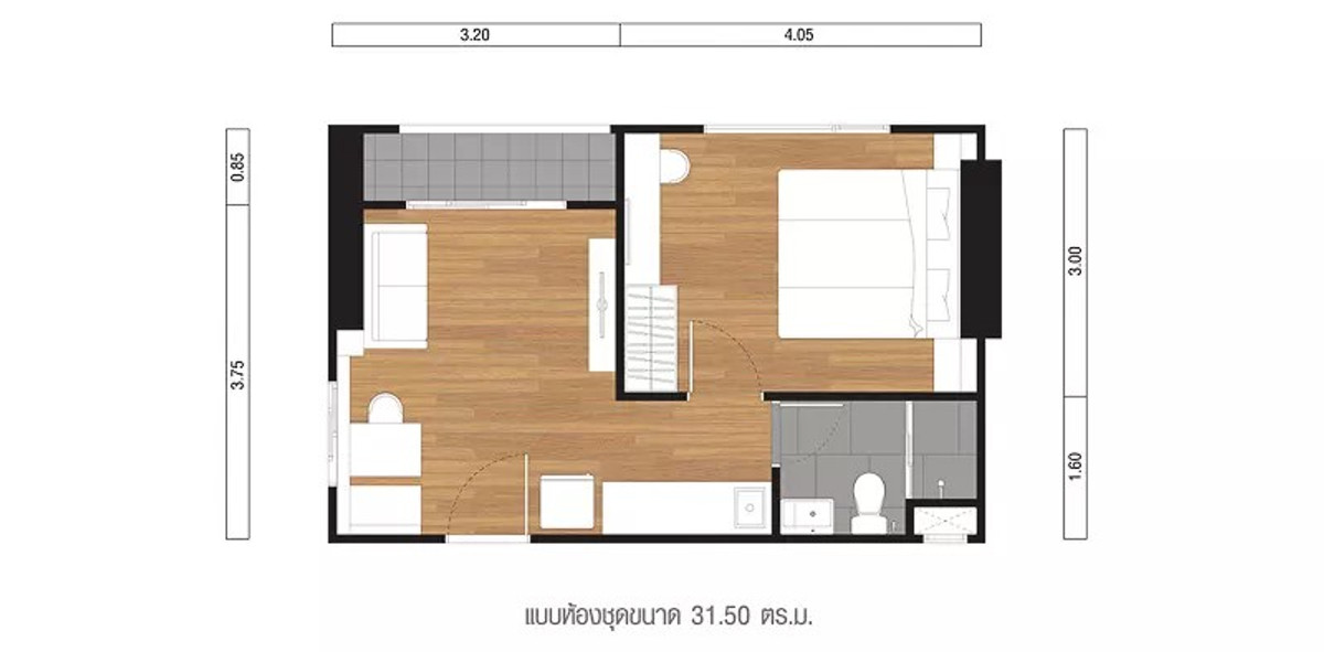 พื้นที่ใช้สอย 31.50 ตร.ม.