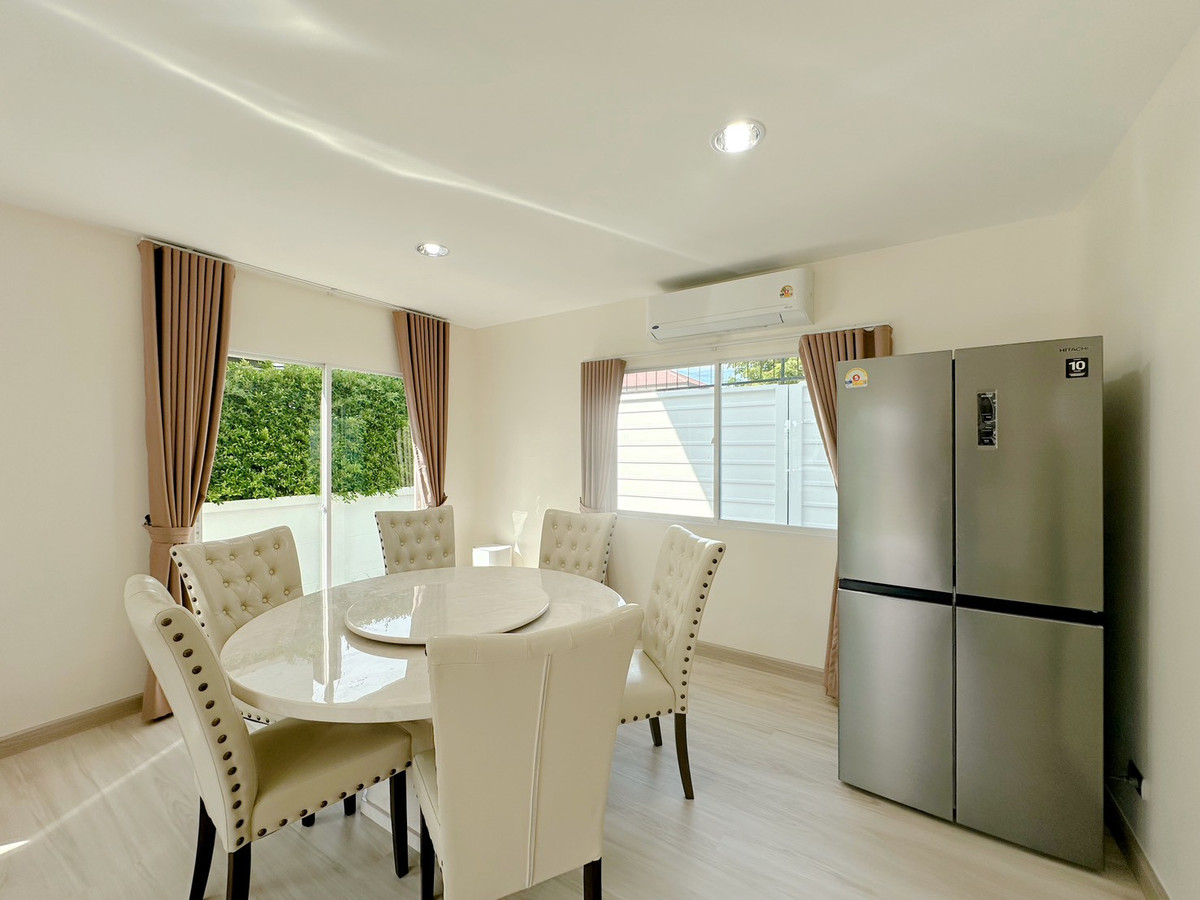 🏡 บ้านเดี่ยวให้เช่า ในโครงการ Perfect Place Wongwaen-Ramkhamhaeng LOCATION: https://maps.app.goo.gl/byEkVGKroeFzbhkx6 บ้านสวย บรรยากาศอบอุ่น เป็นส่วนตัว พร้อมเข้าอยู่ บ้านเดี่ยวบนที่ดิน 55 ตารางวา พื้นที่ใช้สอย 130 ตารางเมตร ออกแบบพื้นที่ใช้สอยลงตัว เหมาะสำหรับครอบครัวที่ต้องการความสงบ ความปลอดภัย และความสะดวกสบายในทุกวัน 🌿 ✨ บรรยากาศและจุดเด่น ตัวบ้านตั้งอยู่บนถนนภายในโครงการกว้าง 12 เมตร บรรยากาศเงียบสงบ ไม่แออัด เพื่อนบ้านคุณภาพ ให้ความรู้สึกเป็นสังคมส่วนตัวและปลอดภัย ภายในบ้านโปร่ง โล่ง รับแสงธรรมชาติได้ดี พื้นที่ห้องรับแขกเชื่อมต่อโซนทานอาหารอย่างลงตัว เหมาะสำหรับใช้เวลาร่วมกันของครอบครัว หรือรับรองแขกอย่างอบอุ่น ครัวแยกเป็นสัดส่วน ช่วยลดกลิ่นรบกวนภายในบ้าน มีห้องแม่บ้านและห้องน้ำแยก เพิ่มความสะดวกในการอยู่อาศัย บริเวณรอบบ้านมีพื้นที่เหลือให้จัดสวนเล็ก ๆ หรือมุมพักผ่อน จอดรถในบ้านได้ 2 คันอย่างสบาย 🛏 ฟังก์ชันครบ พร้อมอยู่ 3 ห้องนอน 3 ห้องน้ำ 1 ห้องรับแขก 1 ห้องทานข้าว ห้องครัวแยก ห้องแม่บ้าน + ห้องน้ำแม่บ้าน 🟡 เครื่องใช้ไฟฟ้าครบครัน แอร์ 5 เครื่อง (ครบทุกห้อง) พร้อมล้างแอร์ฟรีทุก 10 เดือน เครื่องทำน้ำอุ่น 4 เครื่อง เครื่องซักผ้า + เครื่องอบผ้า ทีวี 75", 65", 55" (2 เครื่อง) ระบบอินเทอร์เน็ตคุณภาพสูง (Mikrotik Router + Access Point 3 ตัว) กล้องวงจรปิด 2 จุด ระบบตรวจจับควันและแก๊สรั่ว ฉีดปลวกปีละ 1 ครั้ง เปลี่ยนไส้กรองน้ำทุก 10 เดือน 🤍 เงื่อนไขเพิ่มเติม กรณีมีสัตว์เลี้ยง วางเงินค้ำประกันความเสียหาย 6 เดือน LINE:@MUUHOUSE465 CALL : คลิกเพื่อดูเบอร์โทรติดต่อ AIKO
