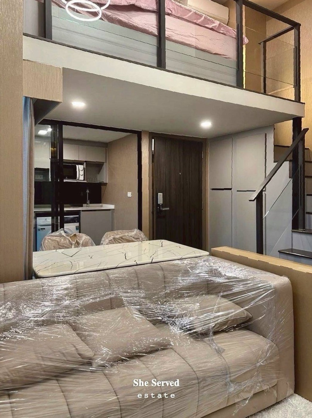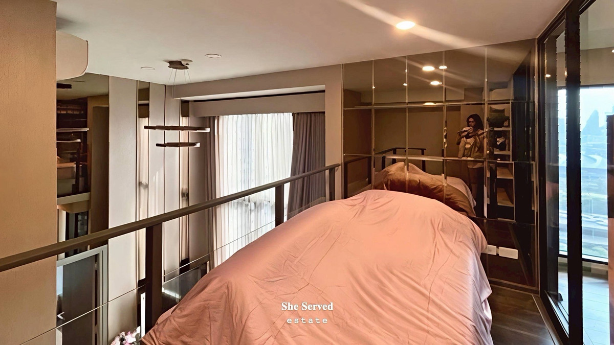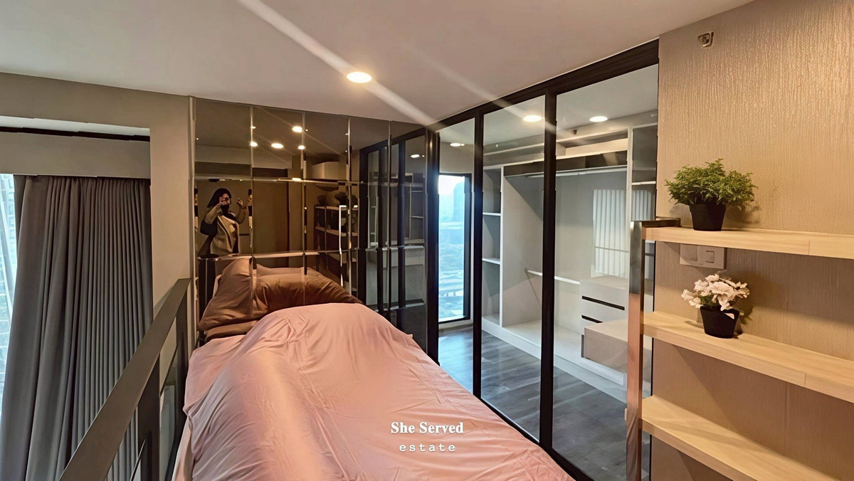 ◈Knightsbridge Space Rama 9 ◈ 2 Bedrooms | 1 Bathroom 44 sq.m. | 16th Floor | Corner Unit Duplex layout (2 levels) with 2 beds: Upper level: 3.5 ft bed Lower private bedroom: 5 ft bed Rental Price: 38