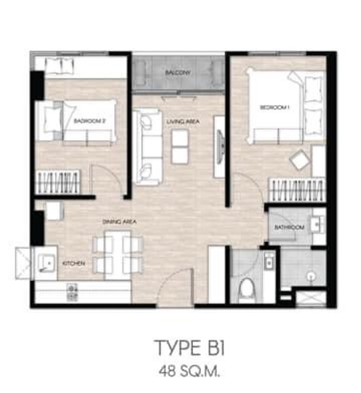 พื้นที่ใช้สอย 48 ตร.ม.