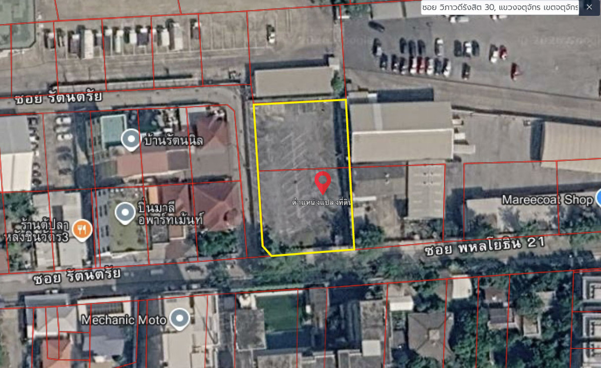 รหัสทร้พย์ TBP-L690070 ขายที่ดินพหลโยธิน 21 ทำเลดีมาก หาไม่ได้อีกแล้ว ถนนกว้าง ปากซอยคือโครงการศุภาลัย พหลโยธิน เข้าออกได้ 2 เส้นทาง คือ พหลโยธิน 21 และซอยวิภาวดี 30 ใกล้ห้าง Central ลาดพร้าวใหม่ ใกล้ Major รัชโยธิน ตรงข้าม Tesco Lotus เหมาะสร้างคอนโดมิเนียม สร้างออฟฟิศ บ้านเดี่ยว ใกล้ BTS พหลโยธิน ที่ดินขนาด 381 ตารางวา หน้ากว้าง 31 เมตร ลึก 52 เมตร ที่ดินรูปแปลงสวย อยู่หลังตึกชินวัตร วิภาวดี 30 ถนน 6 เมตร ขาย 120,000,000 บาท