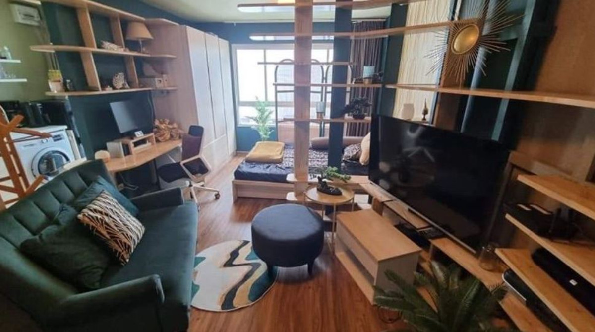 สตูดิโอ 1 ห้องน้ำ 26ตรม อาคาร H ชั้น 2 11000/เดือน มัดจำ 2 เดือน ล่วงหน้า 1 เดือน สัญญาขั้นต่ำ 1 ปี เฟอร์นิเจอร์ - โซฟา - ชั้นวางทีวี - เตียง + ฟูก เครื่องใช้ไฟฟ้า - ทีวี - ตู้เย็น - ไมโครเวฟ - แอร์ - เครื่องซักผ้า