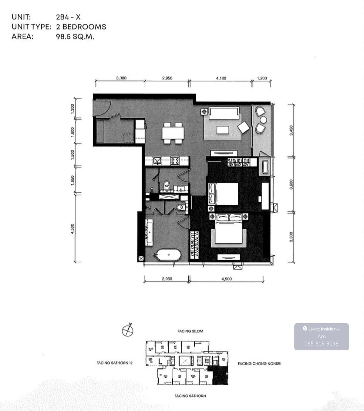Tait Sathorn 12: 2bed 2bath 98.5sqm. 29,700,000 Am: 0656199198
