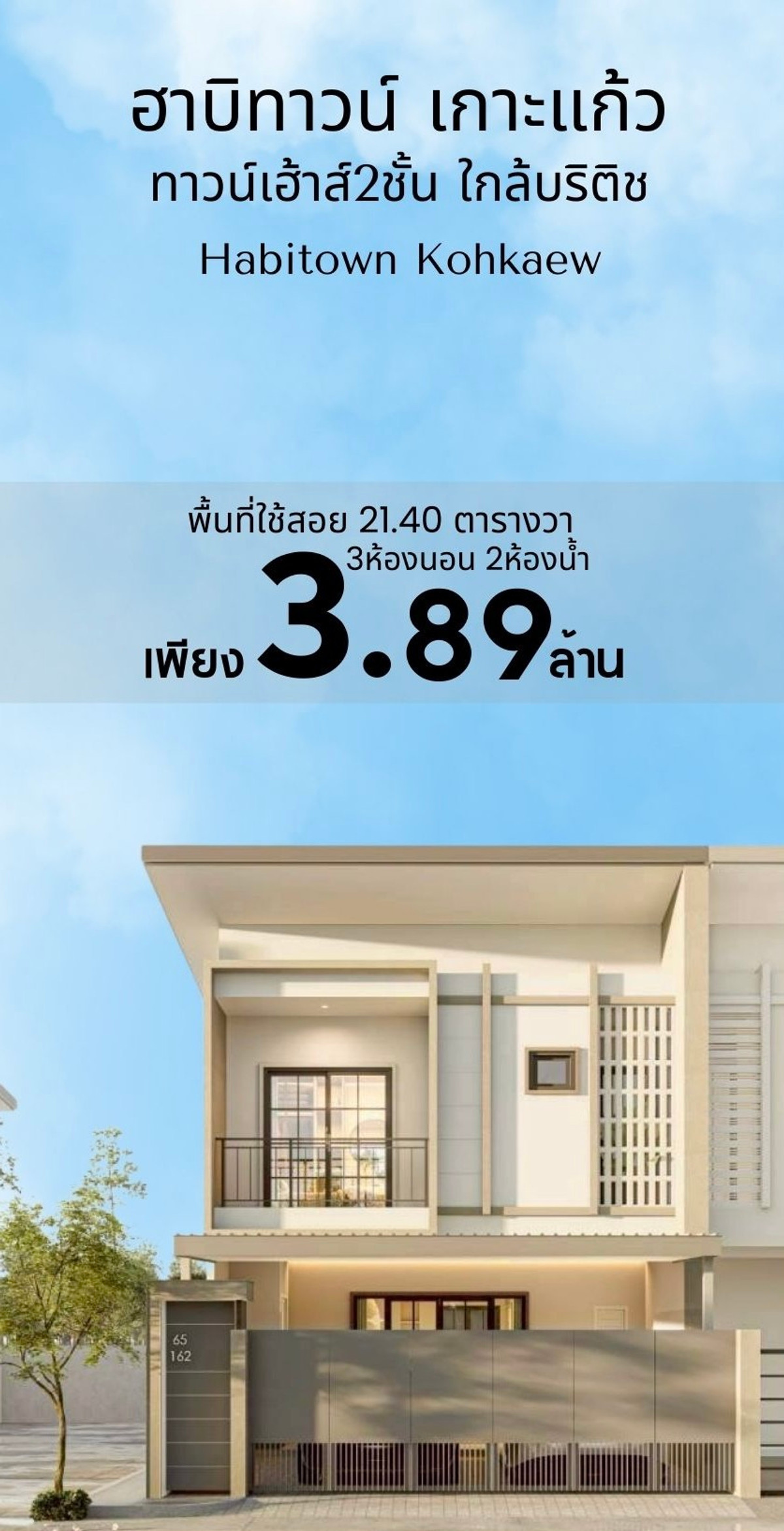 หมู่บ้านฮาบิทาวน์ โดย แสนสิริ บนทำเลใกล้โรงเรียนนานาชาติบริติชเพียงแค่ 2 นาที บนทำเลคุณภาพที่มีการเติบโตสูง - เกาะแก้ว แวดล้อมไปด้วยสิ่งอำนวยความสะดวกอย่างครบครัน ไม่ว่าจะเป็นซุปเปอร์มาร์เก็ต ร้านสะดวกซื้อ ตลาดสด ร้านอาหาร หรือคาเฟ่ แบบบ้านทาวน์เฮ้าส์ 2 ชั้นรีโนเวทใหม่ ในสไตล์โมเดิร์นตามแบบภาพ ** ไม่รวมเฟอร์นิเจอร์ เนื้อที่ดิน 21.4 ตารางวา 3 ห้องนอน 2 ห้องน้ำ ห้องครัวต่อเติมเคาน์เตอร์พร้อมชุดเตา+ที่ดูดควัน พื้นที่จอดรถในร่ม บ้านคุณภาพที่มาพร้อมกับการันตีหลังการขายสามเดือน ┏━━━━━━━━━━━━━━━━━━┓ ฿3,890,000.- ┗━━━━━━━━━━━━━━━━━━┛ Habitown Kohkaew Located just 2 minutes from British International School, Phuket. Situated in the high-growth area of Koh Kaew, surrounded by full amenities including supermarkets, convenience stores, fresh markets, restaurants, and cafés. Newly renovated 2-storey townhouse Modern style as shown in photos Furniture not included • Land area: 21.4 sq.wah (approx. 85.6 sq.m.) • 3 bedrooms, 2 bathrooms • Extended kitchen with counter, stove, and hood • Covered parking space • Quality home with 3-month after-sales warranty ⚫️ #บริษัทพอชบายรูมสเตย์พร็อพเพอร์ตี้ 🕳️ บริการเช็คเครดิต • คำนวณความสามารถในการกู้ • คำนวณอัตราผ่อนแต่ละเดือน 🕳️ We excel in sales and adeptly manage the trading operations for international clientele More information, Please do not hesitate to contact us [ POSHBYROOMSTAYPROPERTY.CO.,LTD ] บริษัทพอชบายรูมสเตย์พร็อพเพอร์ตี้จำกัด ที่ตั้งสำนักงาน ติดถนนเส้นหลัก วิรัชหงษ์หยก (นาคา) ➖➖➖➖➖➖➖➖➖➖➖➖➖➖➖➖➖ ☎️ More information, Please do not hesitate to contact us คลิกเพื่อดูเบอร์โทรติดต่อ คุณแนน คลิกเพื่อดูเบอร์โทรติดต่อ K.Ping (eng.) Line: @roomstay สอบถามข้อมูลทาง LINE สะดวกกว่าค่ะมีแอดมินดูแล https://lin.ee/aLaoTiw [ POSHBYROOMSTAYPROPERTY.CO.,LTD ] 📌 ชมรีวิวบ้านสวยๆได้ทาง https://www.tiktok.com/@poshbyroomstay?_t=8kTog2ffG59&_r=1