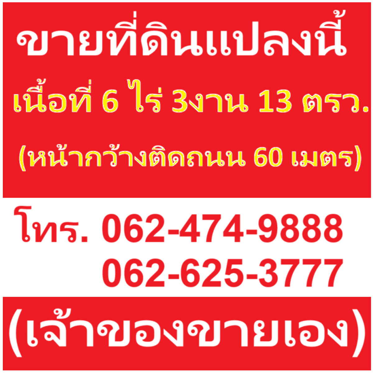ขนาดที่ดิน 6 ไร่ 3 งาน 13 ตร.ว.