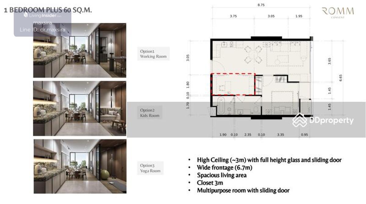 ขายดาว์น คอนโดหรู Romm Convent 1 BED Plus (1 ห้องนอน + 1 ห้องทำงาน) - ทำเลทองมีคอนโดเดียวในซอย คอนแวนต์ ใกล้รถไฟฟ้า bts, mrt 400เมตร ใกล้ห้าง Silom complex และ Dusit Central Park - ขนาด 60.21 ตรม ชั้น