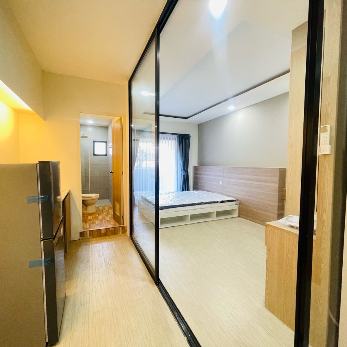 คอนโดเลเวล บางนา-ตราด ติด ม.หัวเฉียว ห้องใหญ่ 42 ตร.ม. เพียง 9,000฿/เดือน ✨ ชั้น 1 ตึก A ห้อง 179/13 (A113) ใครกำลังหาห้อง "กว้าง อยู่สบาย คุ้มราคา" ต้องดูห้องนี้เลยครับ 👀 เปิดประตูเข้ามาจะเจอพื้นที่โล่ง ๆ เดินสบาย ขนาด 42 ตร.ม. แบ่งสัดส่วนชัดเจน มีโซนนั่งเล่น และห้องนอนกั้นกระจก ดูโมเดิร์น เป็นส่วนตัวมาก 🛋 โซนนั่งเล่น โซฟา + โต๊ะกลาง + ชั้นวางทีวี พร้อมทีวี นั่งพักผ่อนดูหนังสบาย ๆ 🛏 ห้องนอน เตียงพร้อมที่นอน ตู้เสื้อผ้าใหญ่ ห้องกว้างไม่อึดอัด 🍳 มุมครัว เคาน์เตอร์ครัว พร้อมไมโครเวฟ อุ่นอาหารง่าย ๆ ⚡ เครื่องใช้ไฟฟ้าครบ ✔ แอร์ 2 เครื่อง ✔ ทีวี ✔ ไมโครเวฟ ✔ เครื่องทำน้ำอุ่น ✔ เครื่องซักผ้าฝาบน (ระเบียงห้อง) พื้น SPC ทนน้ำไม่บวม 🚗 จอดรถฟรี ❌ ไม่มีค่าส่วนกลางเพิ่ม 📍 ทำเลดีมาก ติด ม.หัวเฉียว เหมาะทั้งนักศึกษาและคนทำงานย่านบางนา-ตราด 💰 ราคาเช่าเพียง 9,000 บาท/เดือน ห้องใหญ่ พร้อมของครบ จอดรถฟรี ไม่มีบวกเพิ่มแบบนี้ บอกเลยว่าคุ้มมาก! พร้อมอยู่: จ่ายล่วงหน้า 1 เดือน + ประกัน 2 เดือน สนใจนัดดูห้อง ทักแชทมาได้เลยครับ ห้องสวยแบบนี้ ว่างไม่นาน รีบตัดสินใจก่อนหลุดนะครับ