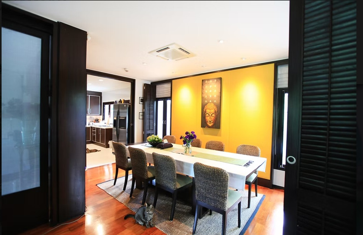 ขายบ้านเดี่ยว 2 ชั้น สุดหรู หมู่บ้านโนเบิลวานา วัชราพล จังหวัดกรุงเทพมหานคร ที่ตั้ง : แขวงท่าแร้ง เขตบางเขน จังหวัดกรุงเทพมหานคร 10220 ขนาดพื้นที่ : 648.8 ตารางวา ขนาดพื้นที่ใช้สอย : 297 ตารางเมตร รายละเอียด -บ้านเดี่ยว 2 ชั้น สภาพดีเยี่ยม ดูแลรักษาอย่างพิถีพิถัน -บ้านหลังนี้ผสมผสานความหรูหราและความอบอุ่นสำหรับครอบครัวได้อย่างลงตัว -มอบทั้งความสะดวกสบายและความเป็นส่วนตัว ภายในโครงการคุณภาพที่เงียบสงบ -พร้อมการตกแต่งภายในแบบสั่งทำพิเศษ โดดเด่นด้วยงานไม้สีเข้ม -ที่ให้ความรู้สึกคลาสสิก หรูหรา และมีเอกลักษณ์ ฟังก์ชั่นบ้าน -4 ห้องนอนขนาดกว้างขวาง -4 ห้องน้ำ -ห้องทำงานแยกเป็นสัดส่วน -ห้องพักแม่บ้านขนาดใหญ่ บรรยากาศภายนอก -ตัวบ้านล้อมรอบด้วยสวนสวยร่มรื่น เต็มไปด้วยธรรมชาติ ทั้งนก กระรอก และสัตว์ป่าขนาดเล็ก -มีบ่อปลาคาร์พพร้อมน้ำตก สร้างบรรยากาศผ่อนคลายเงียบสงบ -ระเบียงไม้ขัดเงาขนาดใหญ่ และศาลาที่สร้างขึ้นเป็นพิเศษ เหมาะสำหรับจัดงานเลี้ยงสังสรรค์ หรือพักผ่อนกับครอบครัวในวันหยุด สถานที่ใกล้เคียง -เพลินนารี่มอลล์ -เซ็นทรัล รามอินทรา -แฟชั่นไอส์แลนด์ -เดอะ พรอมานาด -โรงเรียนนานาชาติไทย-อเมริกัน -โรงพยาบาลสินแพทย์ รามอินทรา -โรงพยาบาลภูมิพลอดุลยเดช -มหาวิทยาลัยเกริก การเดินทางสะดวก -ใกล้ทางด่วน ฉลองรัช (รามอินทรา–อาจณรงค์) -เชื่อมต่อถนนวัชราพล, ถนนรามอินทรา และถนนพหลโยธิน -ใกล้รถไฟฟ้าสายสีชมพู สถานีวัชรพล โครงสร้างการถือครอง -ทรัพย์สินถือครองภายใต้โครงสร้างบริษัท สามารถโอนกรรมสิทธิ์ได้สะดวกผ่านการโอนหุ้น -หากสนใจรายละเอียดเพิ่มเติม หรือต้องการนัดชมบ้าน กรุณาติดต่อสอบถามได้ทันที ขายราคา 27,900,000 บาท สนใจติดต่อ โทร : คลิกเพื่อดูเบอร์โทรติดต่อ .................................................................................. 精美家庭住宅出售 豪华两层家庭住宅,带私人花园 位于 Mooban Noblewana Watcharapol 内,这栋维护精美的两层住宅处于曼谷最令人向往的封闭式社区之一,完美融合了奢华、舒适与私密。定制设计的室内装潢以优雅的深色木质饰面为主,拥有4间宽敞的卧室、4间浴室、一间独立办公室以及一间宽敞的独立佣人房。 这处房产占地648.8平方米,房屋面积297平方米,四周环绕着郁郁葱葱的成熟花园,园内鸟类、松鼠和其他野生动物栖息其间。一个景色优美的锦鲤池和瀑布营造出宁静祥和的氛围,而宽敞的抛光木质露台和定制凉亭则为户外娱乐提供了完美的场所。 这物业以公司形式持有,可通过股份转让轻松便捷地实现所有权转移。如有兴趣,欢迎垂询。