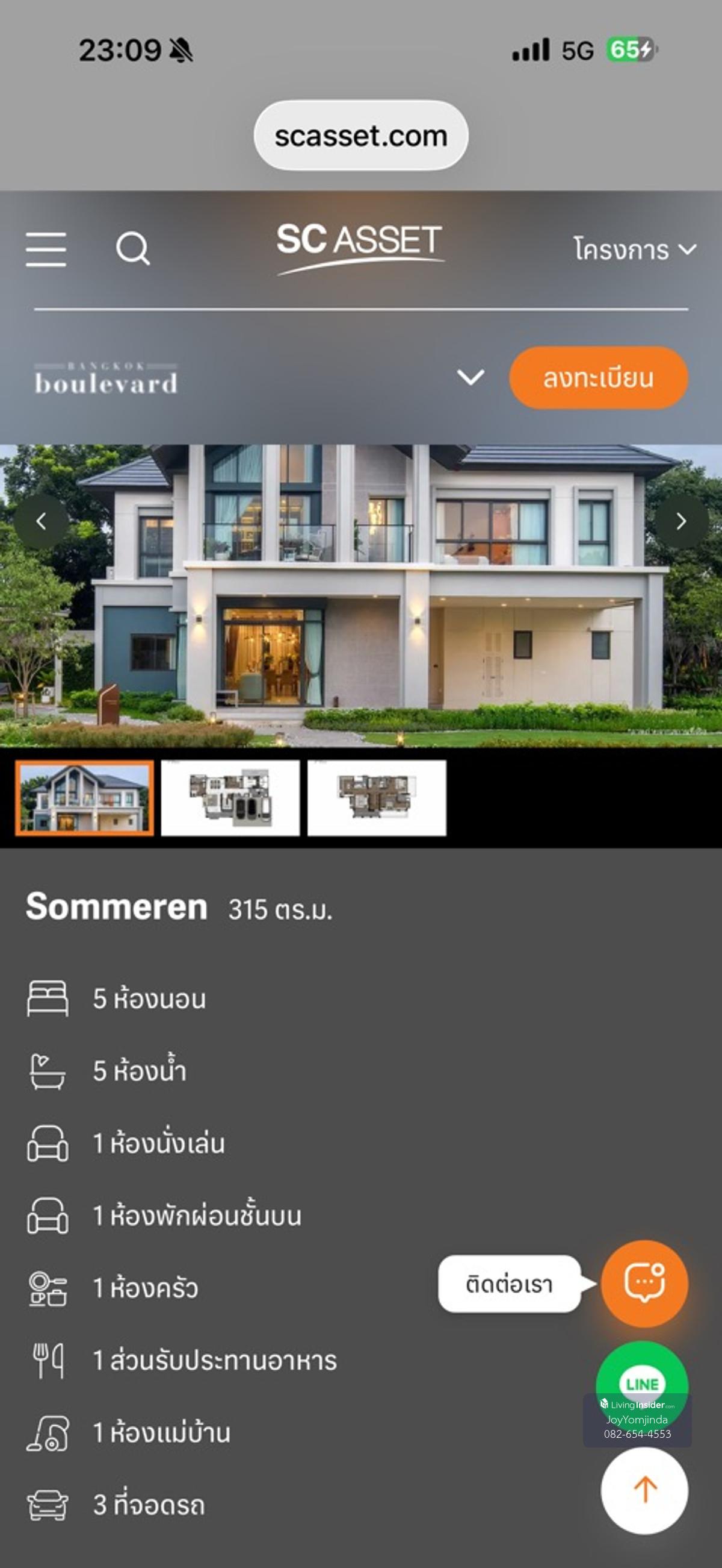 🏡 ขายบ้านเดี่ยว แบบบ้าน Sommeren สไตล์ Luxury Nordic 📍 หมู่บ้านบางกอก บูเลอวาร์ด รามอินทรา – วัชรพล 💰 ราคา 19.9 ล้านบาท ขนาดที่ดินและพื้นที่ใช้สอย • เนื้อที่ 73 ตารางวา • พื้นที่ใช้สอย 315 ตารางเมตร • บ้านตกแต่งครบ พร้อมเข้าอยู่ • Built-in ทั้งหลัง 🛏 ฟังก์ชันภายในบ้าน • 5 ห้องนอน • 5 ห้องน้ำ • 1 ห้องนั่งเล่น • โซนรับประทานอาหาร • เคาน์เตอร์บาร์ • 1 ห้องครัว • ที่จอดรถ 3 คัน ติดตั้งสัญญาณกันขโมยในตัวบ้าน ระบบ Magnetic และ Shock Sensor ทั้งหลัง 🏘 สิ่งอำนวยความสะดวกส่วนกลาง • สโมสร (Clubhouse) • สระว่ายน้ำ • ฟิตเนส • สวนสำหรับเดินเล่น • ห้องทำงาน / ห้องประชุม • ระบบรักษาความปลอดภัยแบบ Double Security ตลอด 24 ชม. กล้อง CCTV 67 จุด ทั่วโครงการ ประตู ทางเข้าโครงการ ควบคุมการเข้าออกด้วย Access Control ทำเลรามอินทรา–วัชรพล เดินทางสะดวก ใกล้ทางด่วนและสิ่งอำนวยความสะดวกครบ 🛍️ห้างสรรพสินค้า & สำนักงาน เดอะ พรอมานาด 9.6 กม. แฟชั่น ไอส์แลนด์ 9.6 กม. 🎓สถานศึกษา มหาวิทยาลัยเวสเทิร์น 4.2 กม. โรงเรียนสารสาสน์วิเทศ สายไหม 4.9 กม. โรงเรียนสาธิตพัฒนา 7.5 กม. โรงเรียนอินเตอร์เนชั่นแนลเกวลี 7.7 กม. โรงเรียนนานาชาติกีรพัฒน์ 7.7 กม. 🏥ศูนย์สุขภาพ โรงพยาบาลสายไหม 6 กม. โรงพยาบาลสินแพทย์ ลำลูกกา 9.4 กม. โรงพยาบาลอินทรารัตน์ 9.4 กม. 🚘การเดินทาง ถนนสายไหม 5.8 กม. ถนนรามอินทรา 8.7 กม. ทางพิเศษ ฉลองรัช ด่านจตุโชติ 1 กม. วงแหวนกาญจนาภิเษก 2 กม. ถนนสุขาภิบาล5 2 กม. ถนนเทพรักษ์ 5.2 กม. ถนนวัชรพล 5.4 กม. ถนนพหลโยธิน 10 กม. รถไฟฟ้าสายสีชมพู (สถานีรามอินทรา 9) 9.1 กม. สนใจนัดชมบ้าน / ขอรายละเอียดเพิ่มเติม ติดต่อได้ทันทีค่ะ 📞 จอย คลิกเพื่อดูเบอร์โทรติดต่อ line: joy_yomjinda