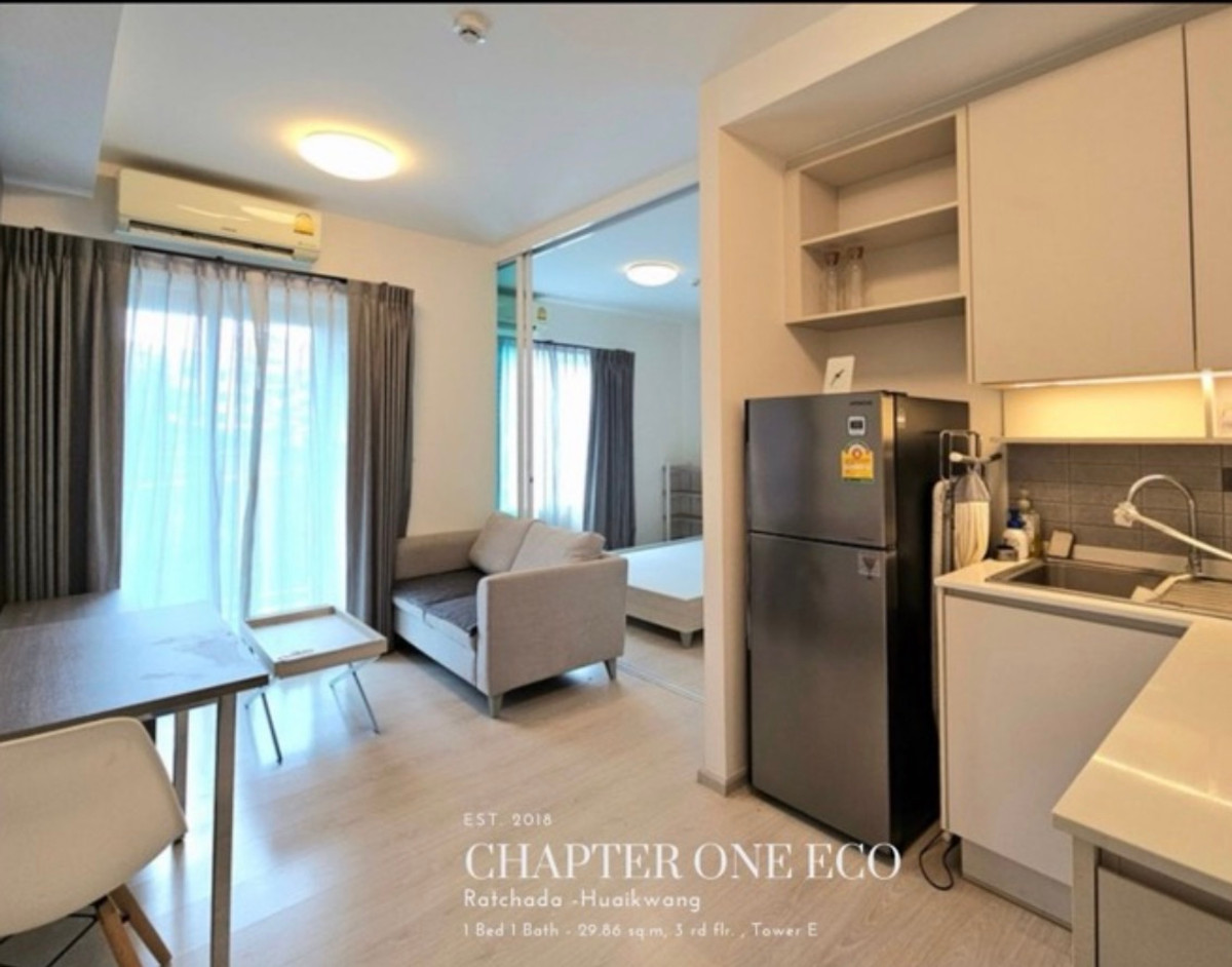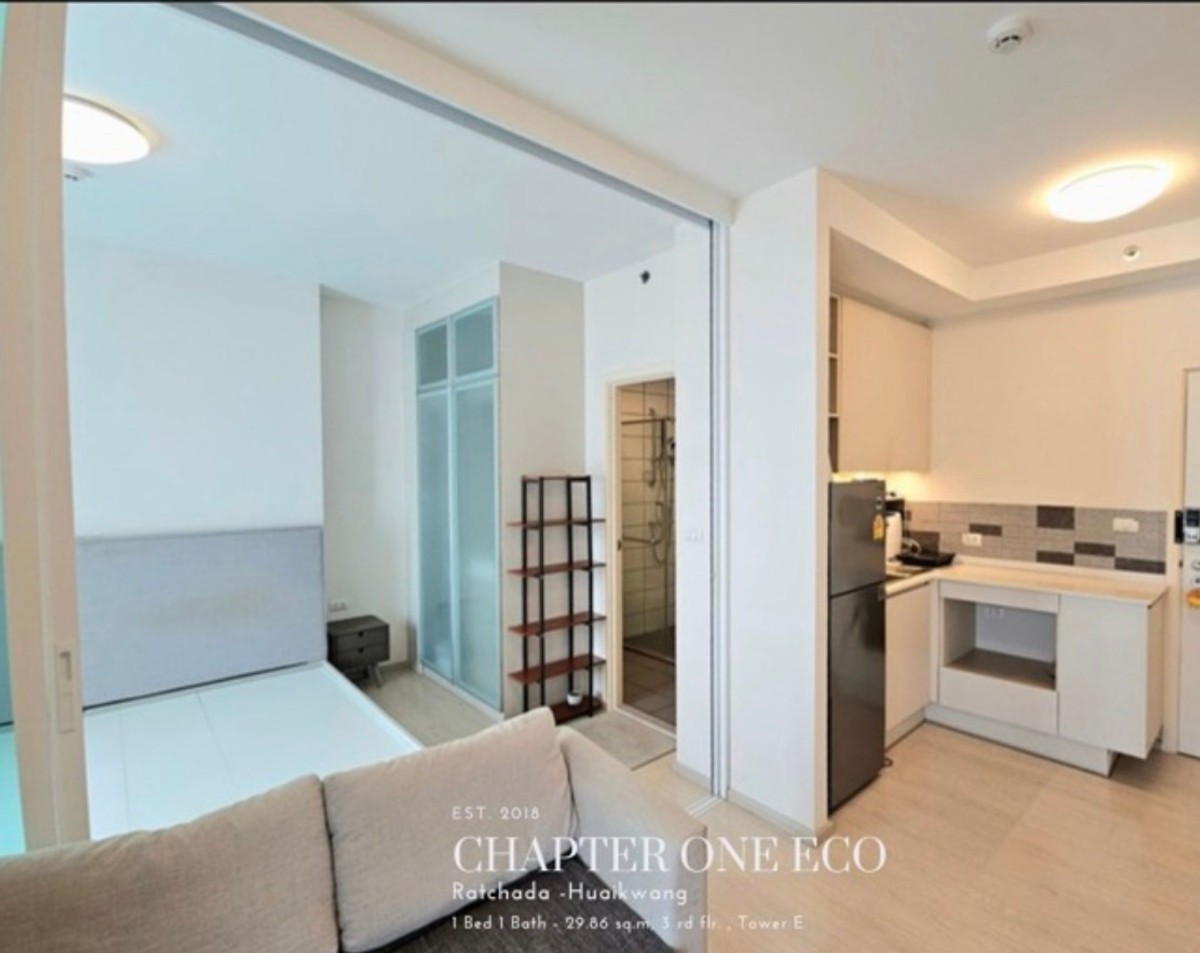 ปล่อยเช่าด่วน!! พร้อมเข้าอยู่ 1 เม.ย. 69 นี้ ใกล้ MRT ห้วยขวาง / จองก่อนได้ก่อน ✨แชปเตอร์วัน อีโค รัชดา - ห้วยขวาง 💸ค่าเช่า 13,500 บาท/เดือน (รวมค่าส่วนกลาง) - ขนาด 30 ตร.ม. ชั้น 3 ตึก E - 1 ห้องนอน,
