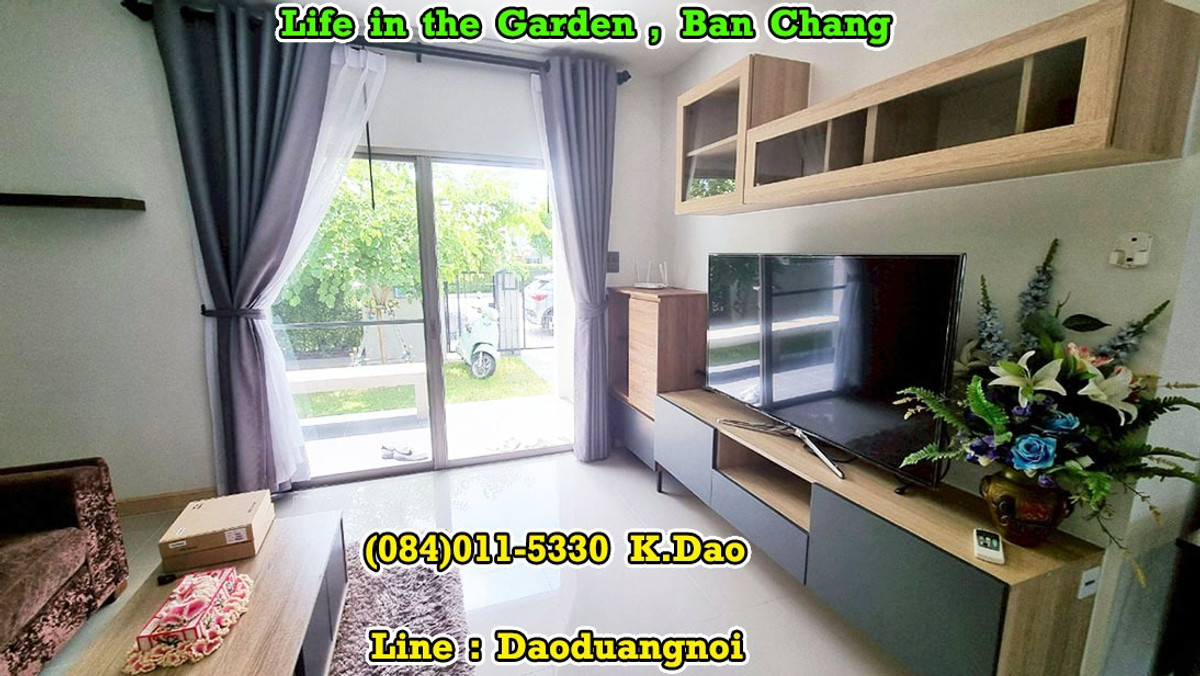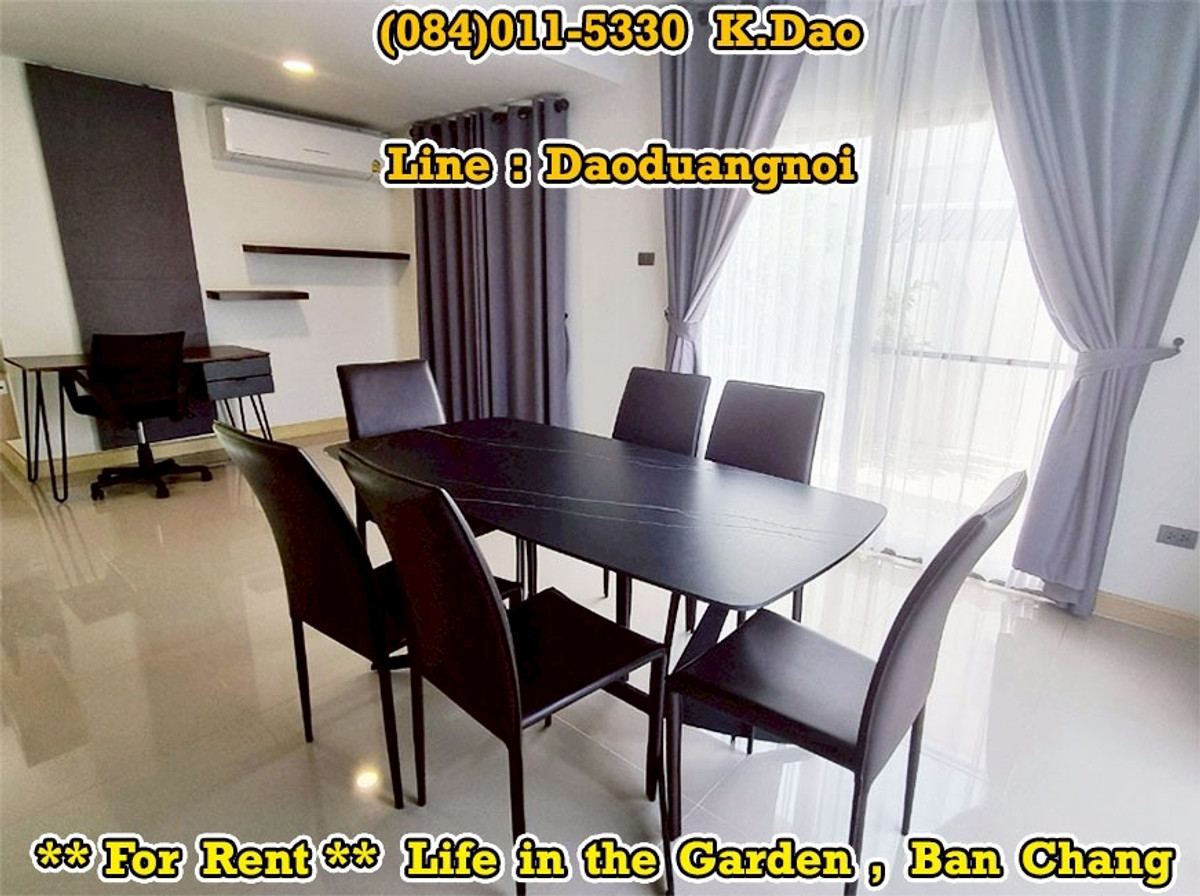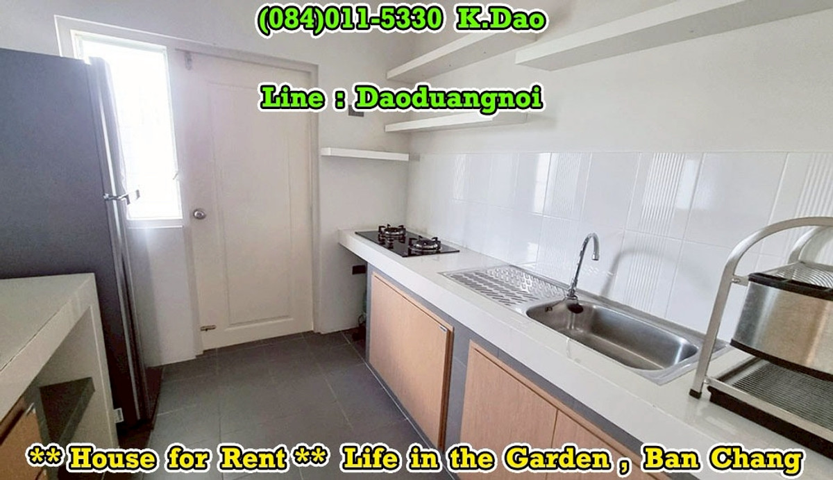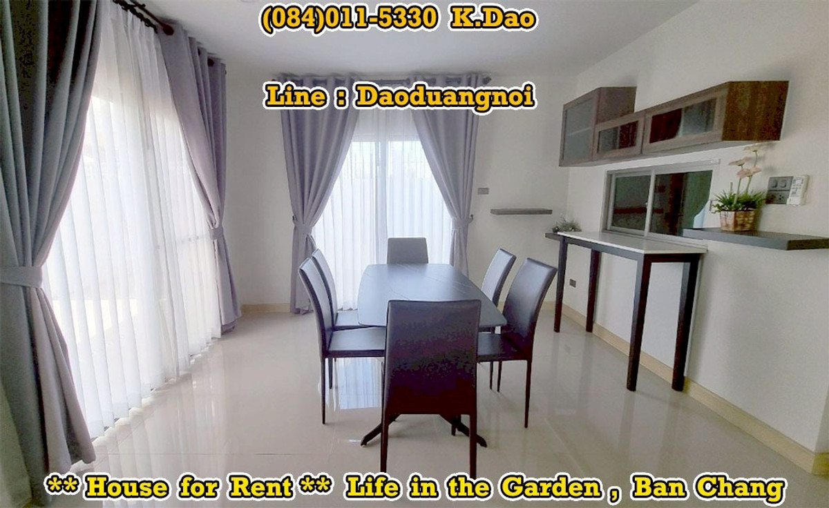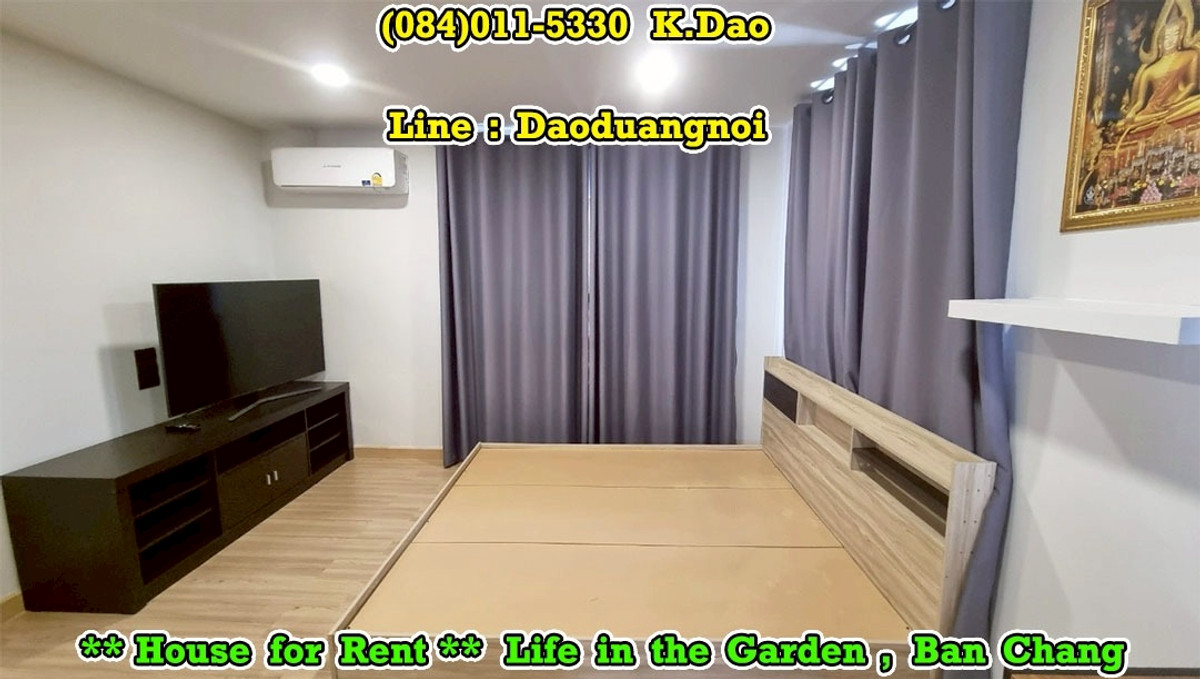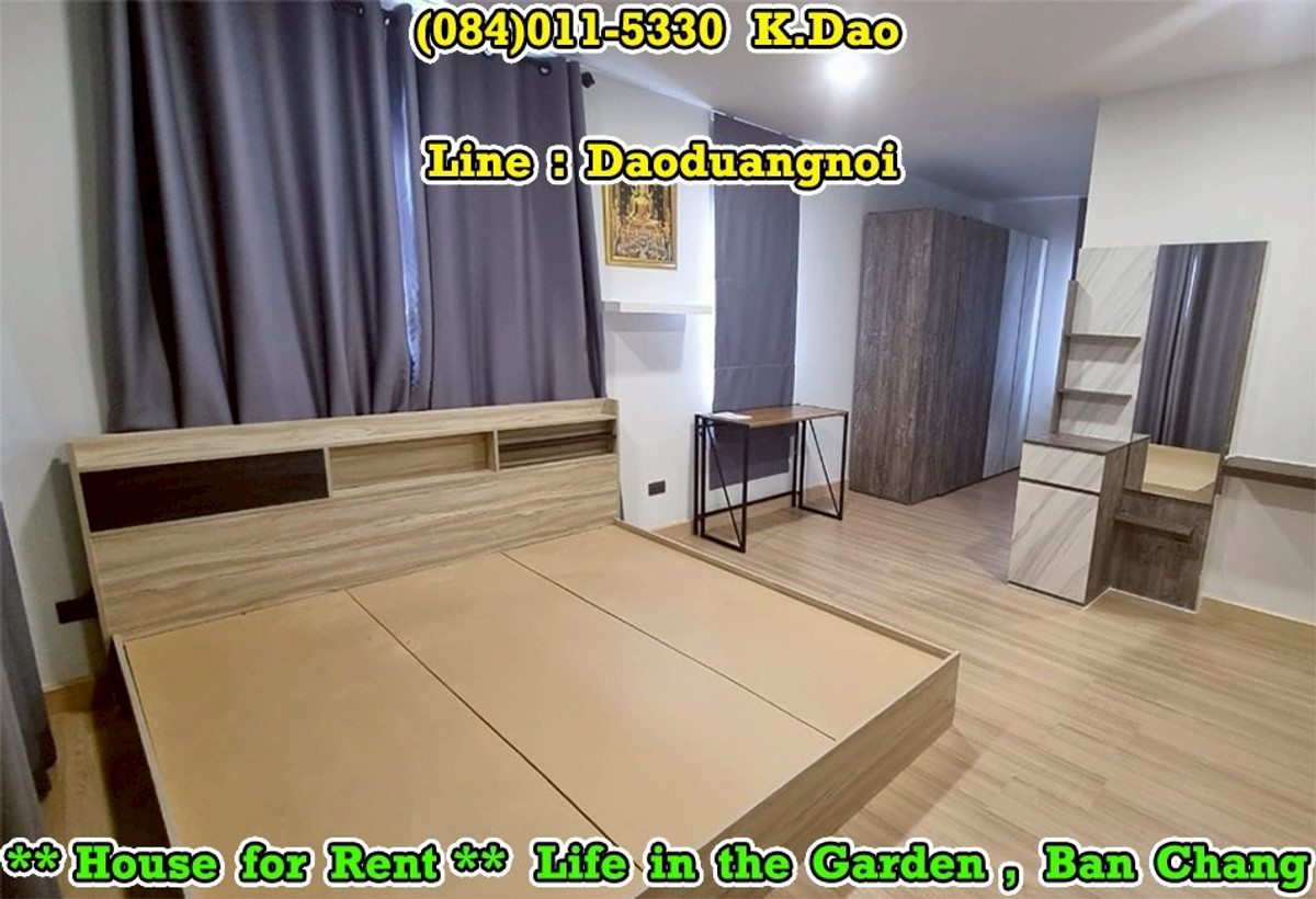 *** Single House for Rent *** Life in the Garden, Ban Chang Near Clubhouse and Security Guard This village is located on Sukhumvit Road. Front of the village has 7/11 Convenient Store, Café Amazon, Beertique & Restaurant, Laundry Bar Location : https://goo.gl/maps/MdHXPodWGPyVjtzX9 2-Storey House Land Area 56.3 Sqr.wah House Area 176 Sqr.m. 3 Bedrooms 3 Bathrooms 1 Living Room 1 Kitchen 1 Dining Area 1 Office Area 1 Storage Room 1 Laundry Area 1 Balcony 3 Terraces 2 Parking Fully Furnished +++ Rental Fee 27,000 Baht +++ Facility - Clubhouse with Swimming Pool, Gym, and Playground - Small Soccer Field with Mini Football Goals - Outdoor Half Basketball Court - Jogging Lane 1.2 Km. - Community Park with Playground - Pavilions - Keycard for enter & exit the village - CCTVs - 24-Hour Security Guards Contact for renting with Dao. Tel. : (084)011-5330 Line ID : Daoduangnoi WhatsApp : คลิกเพื่อดูเบอร์โทรติดต่อ https://www.facebook.com/ThePastelProperty