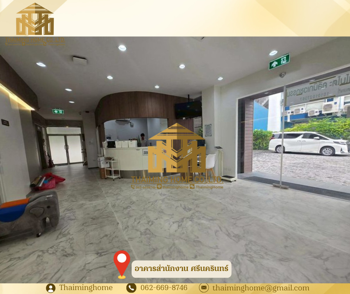 ขาย อาคารสำนักงาน 8 ชั้น 1,000 ตารางเมตร 127 ตารางวา ศรีนครินทร์ (TO8-00626) รายละเอียด - 8 ชั้น - 1,000 ตารางเมตร - 127 ตารางวา - ชั้น 1 - 5 สำนักงาน, ห้องประชุม, ห้องรับรองลูกค้า, ห้องน้ำทุกชั้น, ลิฟท์, แอร์ทุกชั้น - ชั้น 6 - 8 living room, 4 ห้องนอน 4 ห้องน้ำ + ดาดฟ้า - ที่จอดรถ 12 + 3 คัน สถานที่ใกล้เคียง - ศรีนครินทร์ - ฝั่งตรงข้าม ซีคอน - รถไฟฟ้าสายสีเหลือง-ปากซอย - ออกสุขุมวิท 101 - BTS สถานี ปุณนวิถี เงื่อนไข - ราคาขาย 69 ล้านบาท ________________________ บริษัท ไทยหมิง โฮม จำกัด Thaiming Home Co.,Ltd. 泰明房园 房产公司 _________________________ Contact ติดต่อ : คลิกเพื่อดูเบอร์โทรติดต่อ Contact : คลิกเพื่อดูเบอร์โทรติดต่อ คุณหมิง Line ID: thaiminghome Line ID: @thaiminghome https://lin.ee/PkkHwYv Wechat : ThaimingHome E-mail : คลิกเพื่อดูอีเมล _________________________