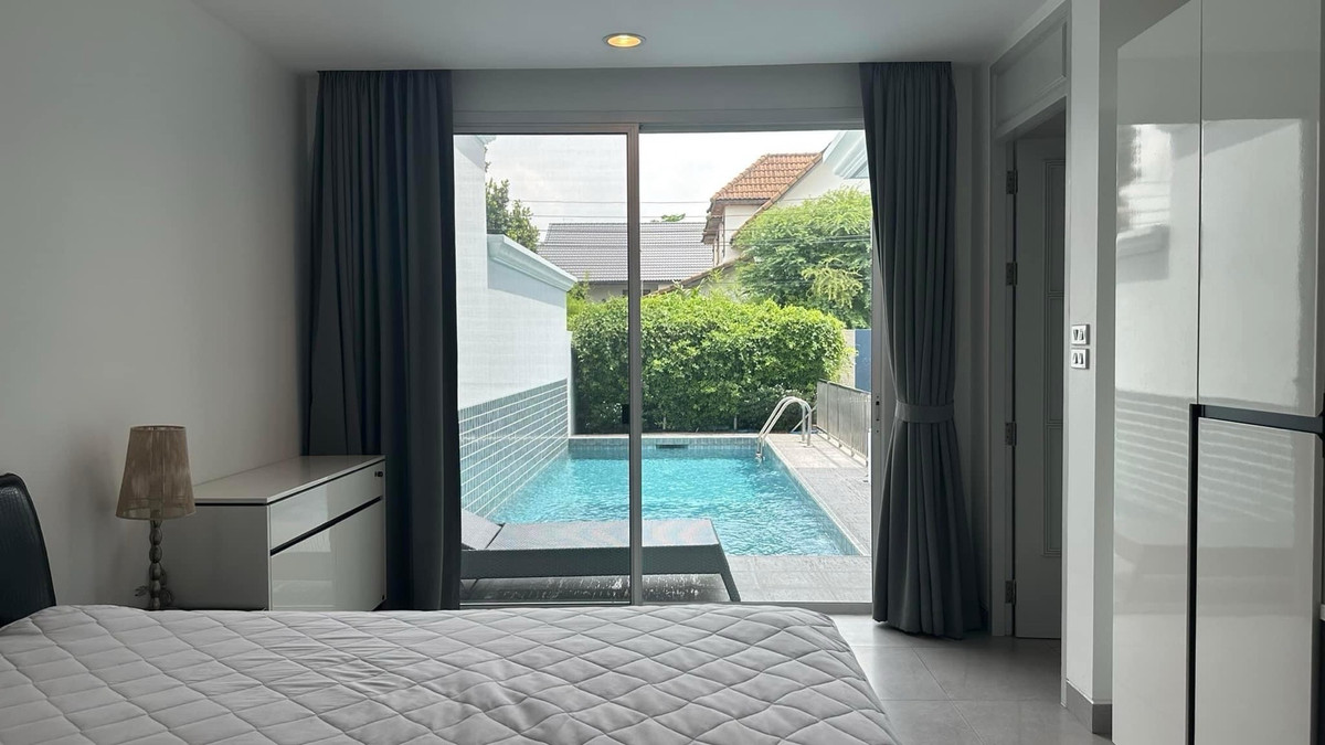 Kesinee Ville House with pool & fully furnished: - 4 bedrooms - 2 kitchens, indoor & outdoor - maid quater - 1 parking space (inside)+1 parking (outside) - approx. 500 sq.meters - secured & quiet compound - Macro supermarket 5 mn. walk Rental : 160,000 Contact K.Bonus Tel/Line คลิกเพื่อดูเบอร์โทรติดต่อ Wechat : Bonusestate