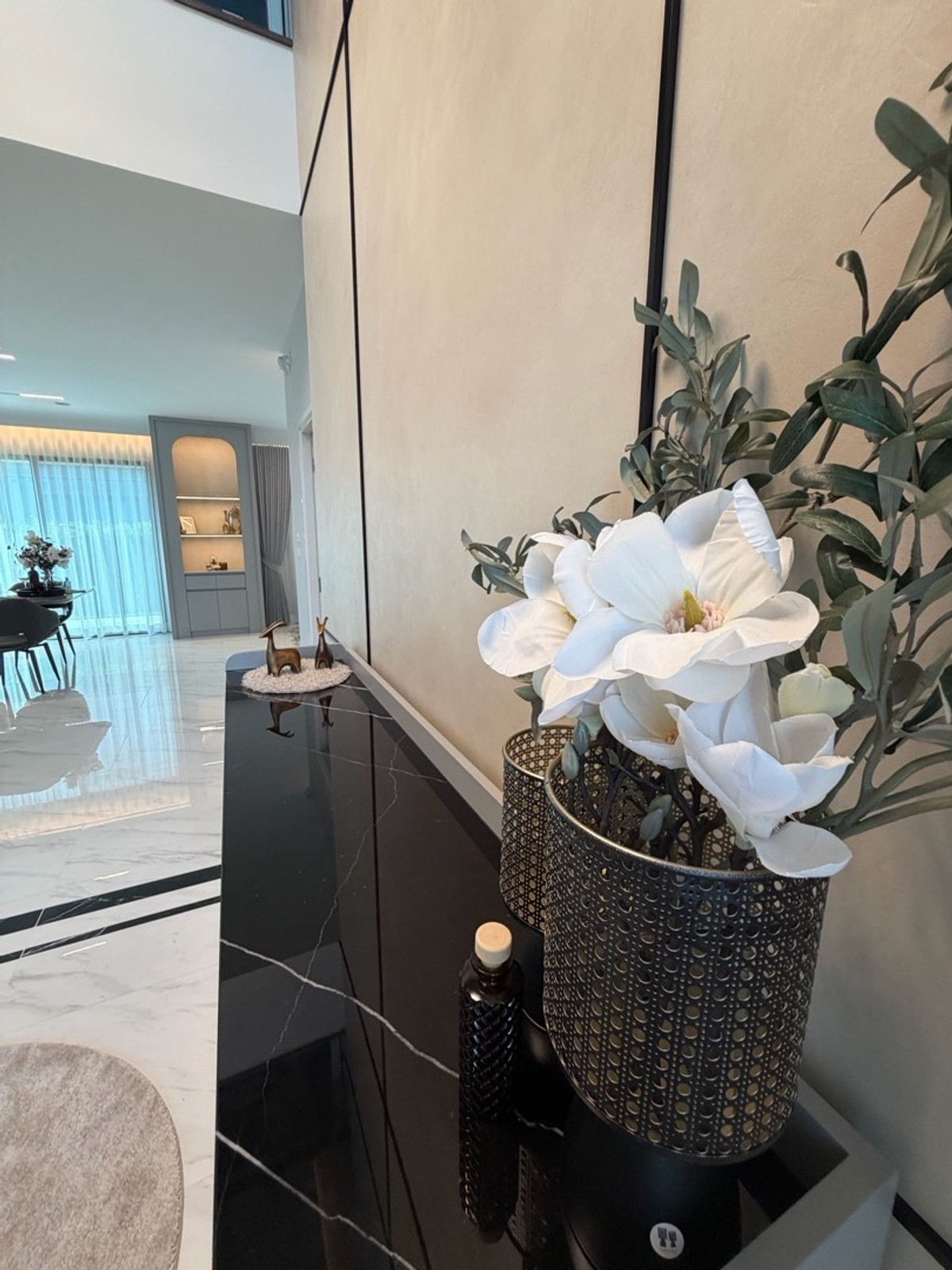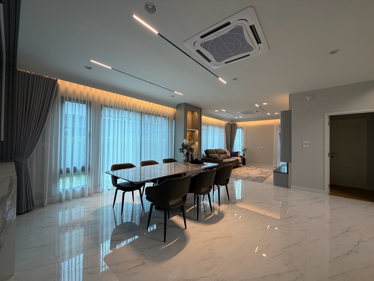 โครงการเศรษฐสิริ วงแหวน - จตุโชติ เรียกได้ว่าเป็นแบบบ้านสุดฮ็อตที่ตอบโจทย์ไลฟ์สไตล์การพักอาศัยของทุกคนในครอบครัวมากที่สุด ด้วยสไตล์ Modern Art Deco ในลุคหรูละมุน บนที่ดินขนาดใหญ่ ถึง 100 ตร.ว. และ พื้นที่ใช้สอยมากถึง 340 ตร.ม. มาพร้อมฟังก์ชันที่สมบูรณ์แบบ - 4 ห้องนอน 5 ห้องน้ำ 2 Living room และ 3 ที่จอดรถ - โดดเด่นด้วยดีไซน์ Double Volume ที่โอ่โถง สง่างามเชื่อมส่วนรับประทานอาหาร และวิวสวนหลังบ้าน มีห้องแม่บ้านตกแต่งเพิ่มเติม จากโครงการ บิ้วอิน walk in closet ทุกห้อง ครบทุกห้อง เดินทางสะดวกใกล้ ทางด่วนจตุโชติ แฟชั่นไอซ์แลนด์ สนามกอล์ฟปัญญา-รามอินทรา รร.นานาชาติRIS รถไฟฟ้าสายสีชมพู รพ.สินแพทย์