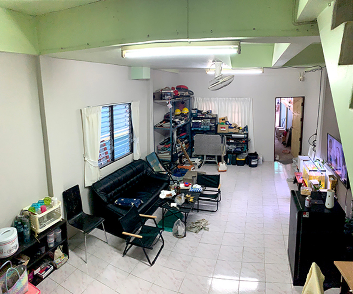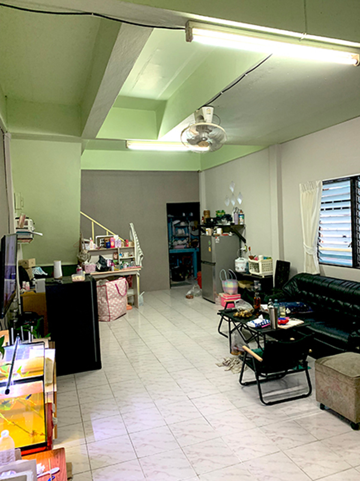 1 โถงกลางชั้นล่าง กว้างขวาง ด้านหน้าจอดรถได้ 1 คัน พร้อมหลังคา
