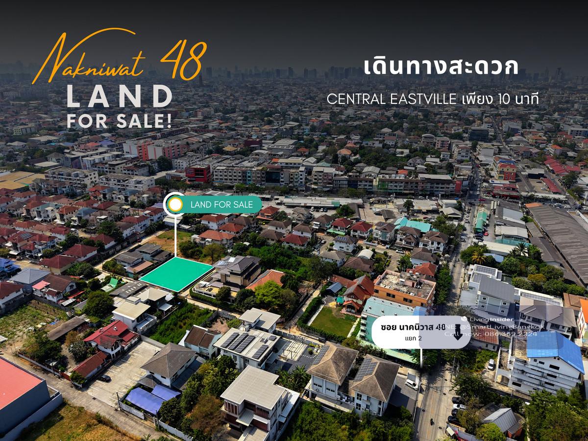 ขาย ที่ดิน 181 ตร.ว. ถมที่แล้ว ทำเลดี ใกล้ถนนนาคนิวาส เดินทางสะดวก แถมฟรี!!! แบบบ้านจากสถาปนิก