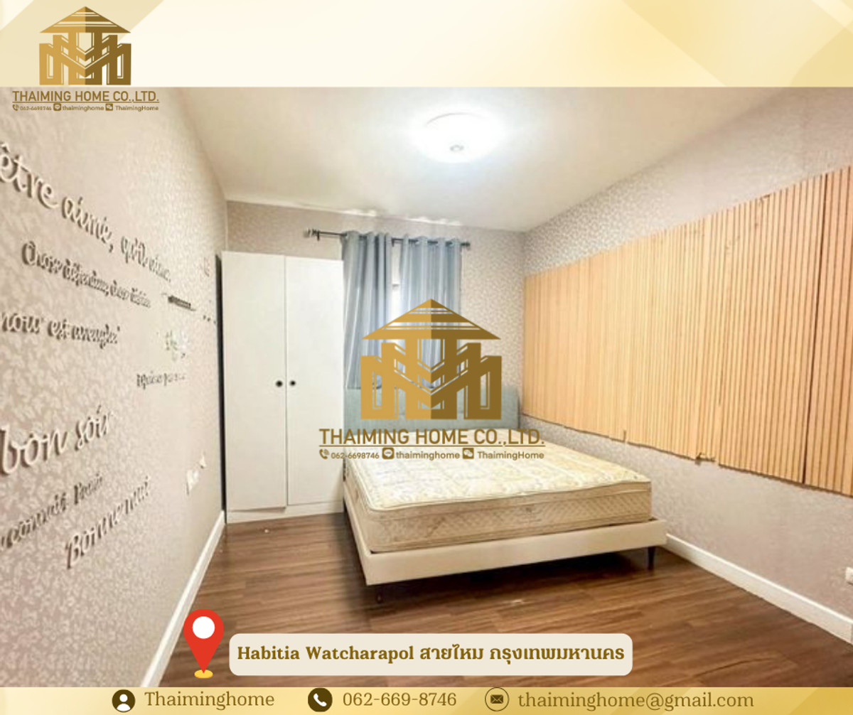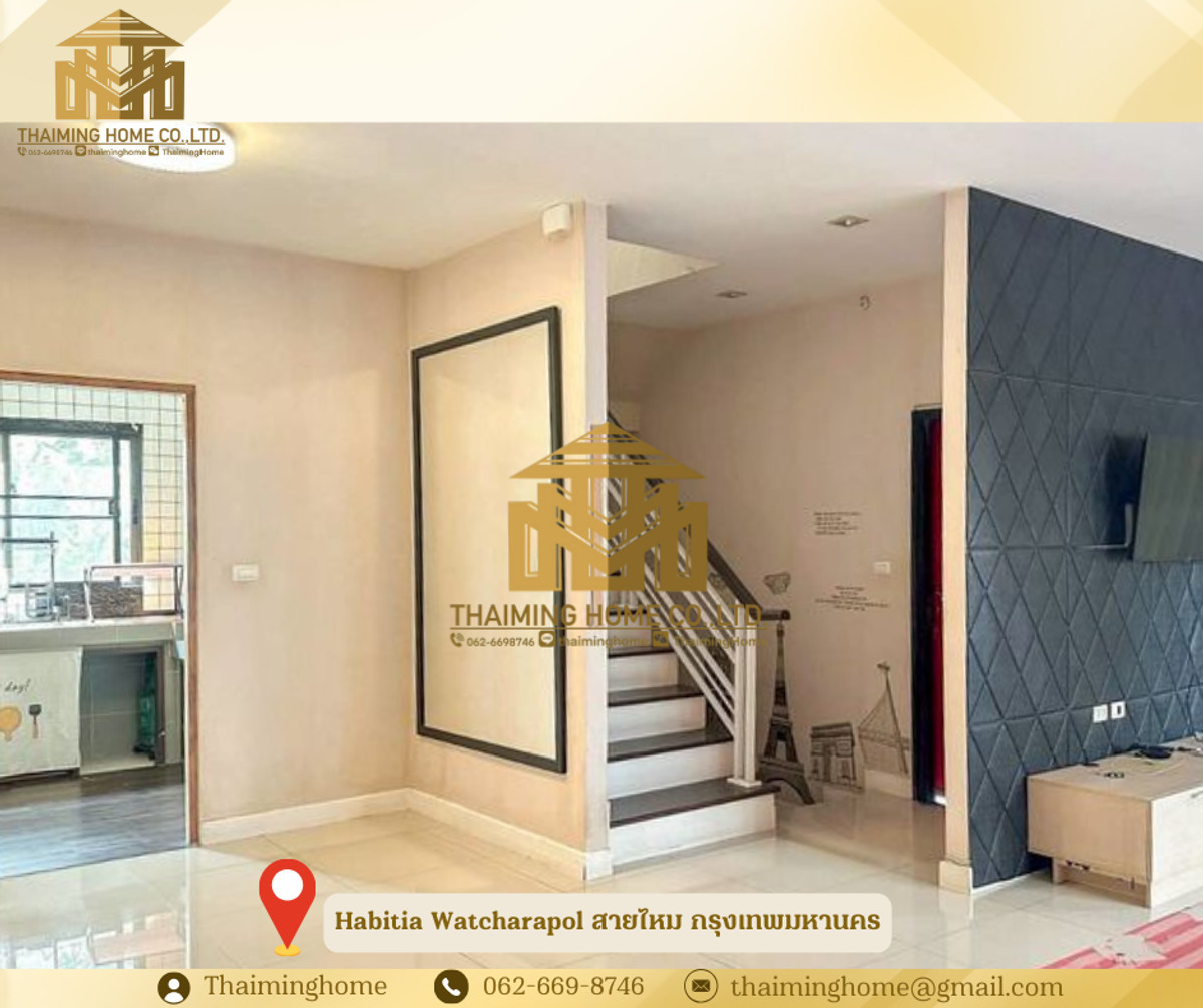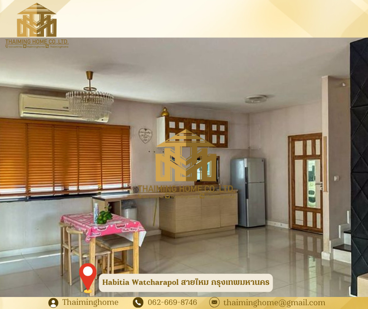 ให้เช่าบ้านเดี่ยว 2 ชั้น Habitia Watcharapol ขนาด 67 ตร.ว สายไหม กรุงเทพมหานคร (รหัสทรัพย์ TH06-1326) รายละเอียด - ที่ดิน 67 ตร.ว พื้นที่ใช้สอย 180 ตร.ม. - 3 ห้องนอน 3 ห้องน้ำ - 1 ห้องแม่บ้าน - 1 ห้องครัว - จอดรถ 2 คัน - เฟอร์นิเจอร์ : Full Furnished - สิ่งอำนวยความสะดวก : ฟิตเนส สระว่ายน้ำ คลับเฮ้าส์ สวนสาธารณะ ระบบรักษาความปลอดภัย 24 ชั่วโมง สถานที่ใกล้เคียง - เซ็นทรัล รามอินทรา - Fashion Island - The Promenade - ตลาดถนอมมิตร - โรงพยาบาลสินแพทย์ เงื่อนไขการเช่า - สัญญา 1 ปี - เงินประกัน 2 เดือน - เงินล่วงหน้า 1 เดือน - ราคาค่าเช่า 35,000 บาท/เดือน ------------------- บริษัท ไทยหมิง โฮม จำกัด Thaiming Home Co.,Ltd. 泰明房园 房产公司 ----------------------- Contact ติดต่อ : คลิกเพื่อดูเบอร์โทรติดต่อ Contact : คลิกเพื่อดูเบอร์โทรติดต่อ คุณหมิง(中文) Line ID: thaiminghome Line ID: @thaiminghome https://lin.ee/PkkHwYv Wechat : ThaimingHome E-mail : คลิกเพื่อดูอีเมล -----------------------