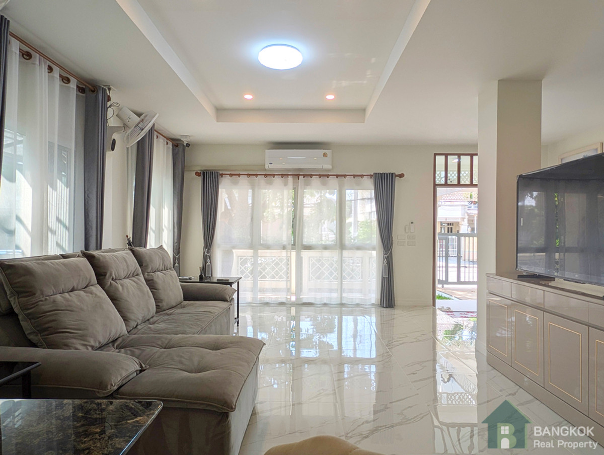 บ้านเดี่ยว 4 ห้องนอน ปรับปรุงใหม่ (ปี 2025) พร้อมให้เช่าแล้วที่Perfect Place Ramkhamhaeng 164ซึ่งตั้งอยู่ไม่ไกลจากถนนรามคำแหง หมู่บ้านยอดนิยมแห่งนี้ตั้งอยู่ในทำเลที่สะดวกสบาย เนื่องจากมีทั้งโรงเรียนร่วมฤดี (RIS) และโรงเรียน RIS Swiss Section Deutschsprachige Schule Bangkok ตั้งอยู่ในบริเวณหมู่บ้านเดียวกัน บ้านเดี่ยวสำหรับครอบครัวหลังนี้มี 2 ชั้น ประกอบด้วย 4 ห้องนอนขนาดใหญ่ 4 ห้องน้ำทันสมัย 2 ห้องรับแขก ห้องครัวสไตล์ตะวันตก 1 ห้องแม่บ้าน และพื้นที่ใช้สอย 420 ตารางเมตร บนที่ดินขนาด 111 ตารางวา (444 ตารางเมตร) พร้อมที่จอดรถนอกบ้านและสวนสวยงาม บ้านหลัก: ห้องนั่งเล่นและห้องรับประทานอาหารแบบเปิดโล่ง, ห้องครัวสไตล์ตะวันตก, 4 ห้องนอนเตียงคู่, 3 ห้องน้ำ, ห้องแม่บ้าน บ้านพักรับรองแขก: ห้องรับประทานอาหาร, ห้องครัวขนาดเล็ก, ห้องน้ำ 1 ห้อง, ระเบียงนอนบนชั้นลอย สัญญาจ้างขั้นต่ำ 1 ปี (12 เดือนขึ้นไป) เงินประกันความเสียหาย 2 เดือน + ค่าเช่าล่วงหน้า 1 เดือน ไม่อนุญาตให้นำสัตว์เลี้ยงเข้า ค่าเช่าไม่รวมการใช้สิ่งอำนวยความสะดวกด้านกีฬาในคลับเฮาส์ - ไม่รับโคเอเจนย์ สำหรับรายละเอียดเพิ่มเติม คุณต้อม LINE ID: tombkkproperty Mobile/WhatsApp: คลิกเพื่อดูเบอร์โทรติดต่อ ไทย - ภาษาอังกฤษ คุณต้อม LINE ID: คลิกเพื่อดูเบอร์โทรติดต่อ Mobile/WhatsApp: คลิกเพื่อดูเบอร์โทรติดต่อ ไทย - ภาษาอังกฤษ Website: https://bangkokrealproperty.com
