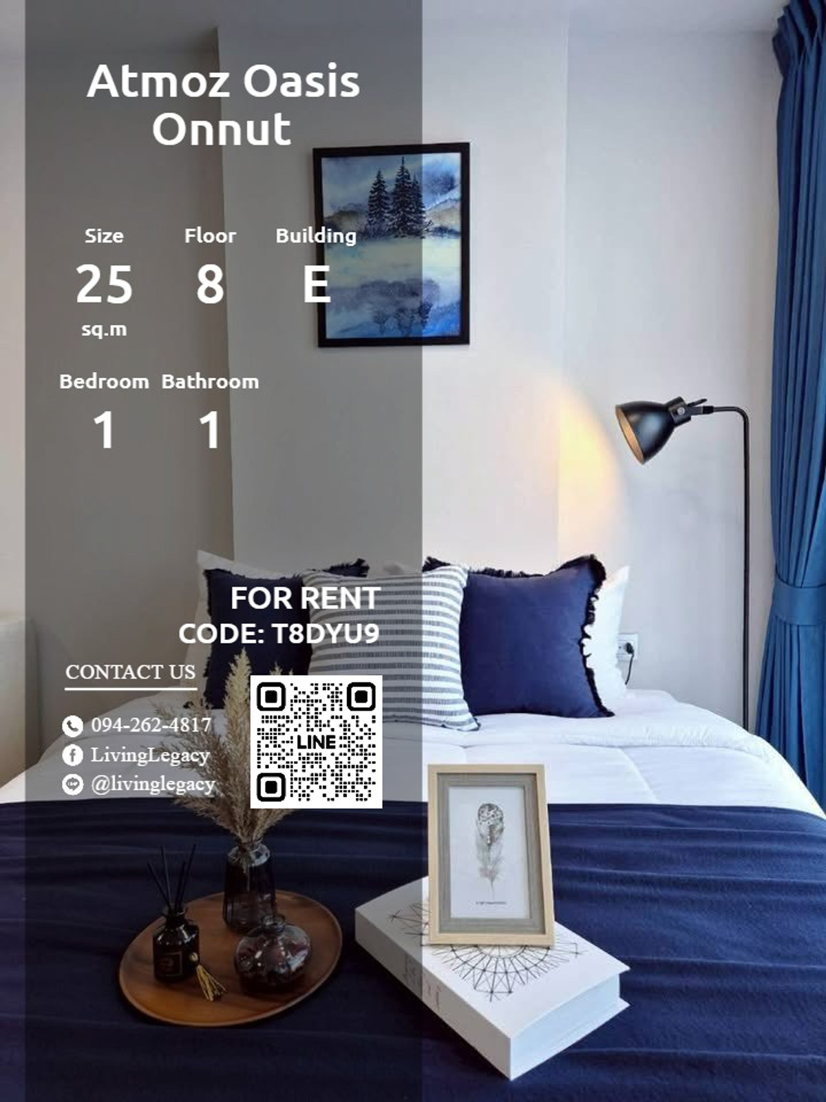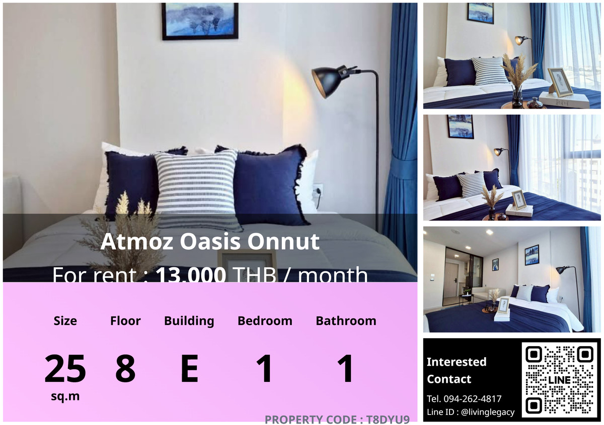 🏠 T8DYU9 ให้เช่าคอนโด Atmoz Oasis Onnut 25 ตร.ม. ชั้น 8 ตึก E 1 นอน 1 น้ำ ✨ พร้อมอยู่ทันที! ห้องสวยแต่งครบ พร้อมเข้าอยู่ได้เลย! 🔍รายละเอียด - จำนวนห้องนอน: 1 - จำนวนห้องน้ำ: 1 - พื้นที่ใช้สอย (ตร.ม.): 25 - ชั้นที่: 8 - อาคาร: E - ทิศทาง: E 🌟 ไฮไลท์ห้องนี้! 🌟 🌟สิ่งอำนวยความสดวกต่างๆ - เครื่องปรับอากาศ - เฟอร์นิเจอร์ - เครื่องซักผ้า - ล็อคประตูดิจิตอล - เตา - ตู้เย็น - ที่จอดรถ 📞 รีบจองด่วน! สอบถามรายละเอียดเพิ่มเติม ราคา 13000 บาท รหัสทรัพย์สิน: T8DYU9 สนใจติดต่อ แอดไลน์ ID: @livinglegacy เฟสบุ๊ค: LivingLegacy WhatsApp: https://wa.me/ คลิกเพื่อดูเบอร์โทรติดต่อ สนใจห้องอื่นๆในโครงการคลิก : https://living-legacy.atrobot.asia/property-listing/660d41ee703e911b07a4c3fd #AtmozOasisOnnut #ThePizzaCompanySeaconSquare #AnertechCompanyLimited #PickadailyBangkok #PAEThailandPublicCoLtd #TheMasterBTSOnnutPattanakarn #CADSERVICECOLTDBangkokOffice #TalentsInternationalPreschool #SeaconSquareSrinagarindra #PrasarnwitWattanaSchool #บริษัทปิยะณัฐสอนขับรถจำกัด