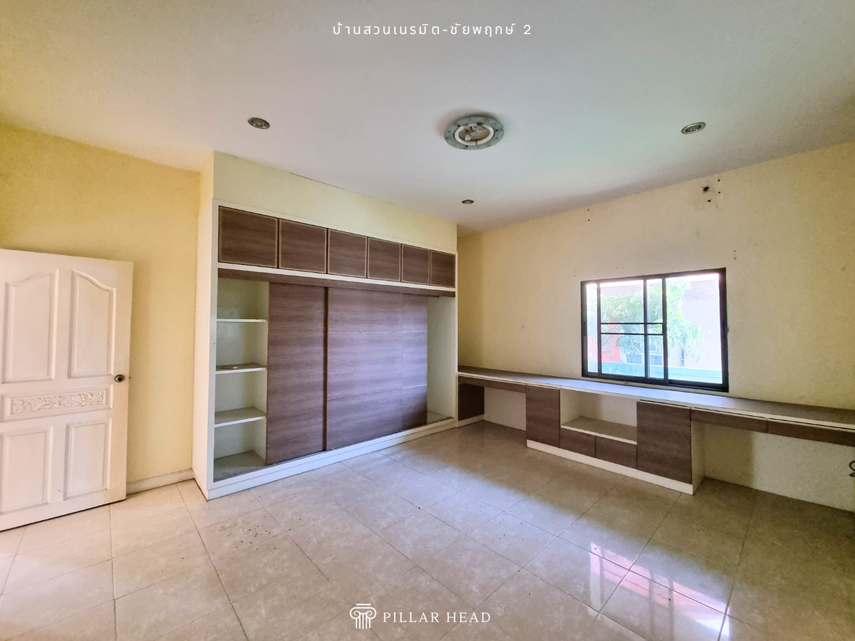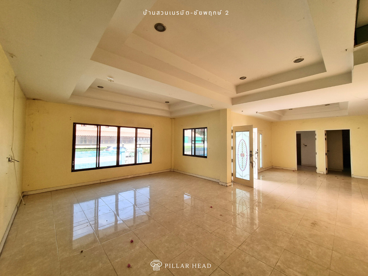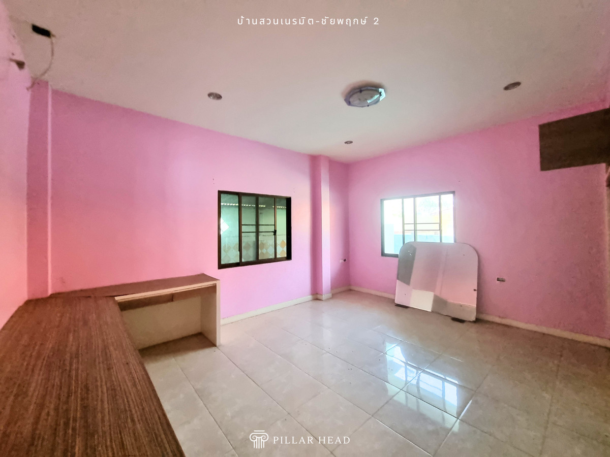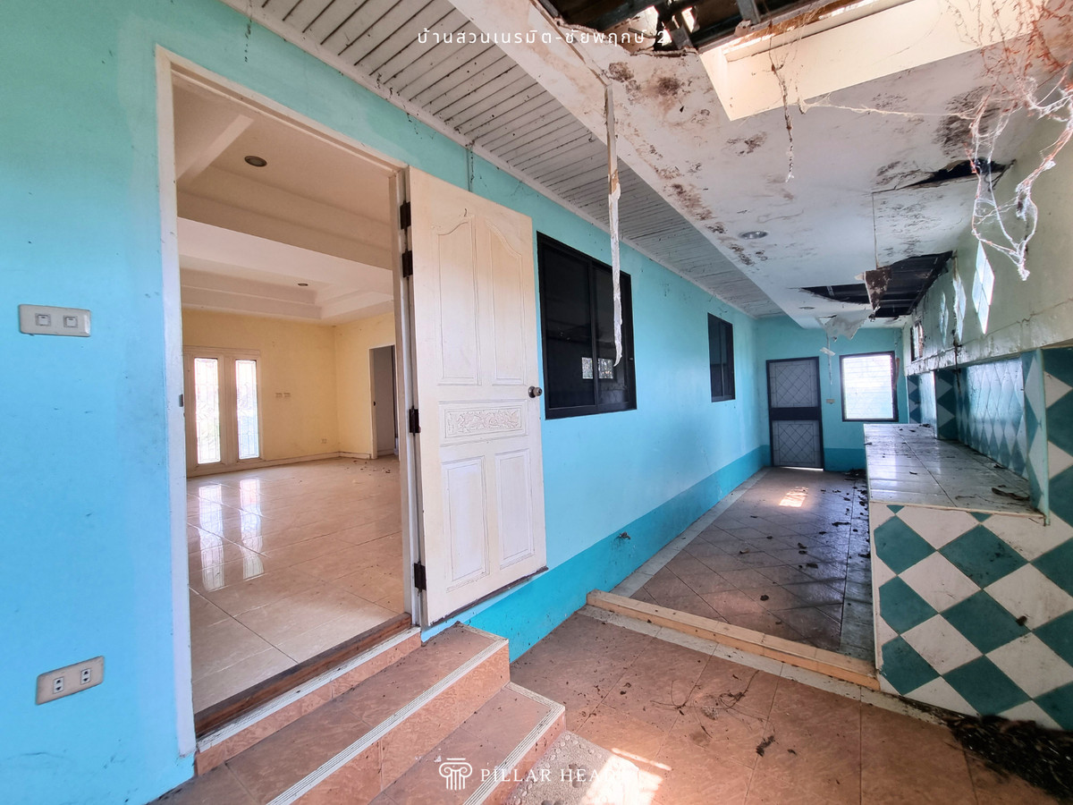 บ้านเดี่ยว 1 ชั้น ในโครงการบ้านสวนเนรมิต ชัยพฤกษ์ 2 เนื้อที่ 92.8 ตารางวา พื้นที่ใช้สอยประมาณ 250 ตารางเมตร 4 ห้องนอน, 3 ห้องน้ำ, ส่วนต่อเติมครัวหลังบ้าน อยู่ต้นโครงการ ไม่ต้องเข้าซอยต่อ ถนนในโครงการกว้าง ขายตามสภาพในราคาดี ต่ำกว่าราคาตลาด 25-30% สำหรับนักลงทุนซื้อไปรีโนเวทเพื่อขาย หรือปรับเปลี่ยนพื้นที่การใช้งานตามความต้องการเพื่ออยู่อาศัยเอง โครงการตั้งอยู่ในแหล่งชุมชน ย่านการค้าธุรกิจ และอยู่ใกล้ชายหาดจอมเทียน เหมาะกับวันพักผ่อนของครอบครัว เดินทางสะดวกสบาย เข้า-ออก ได้ทั้งทางถนนชัยพฤกษ์ 2, ถนนสุขุมวิท, ถนนเลียบทางรถไฟ และถนนสุขุมวิท-พัทยา 89 สิ่งอำนวยความสะดวก - สวนหย่อมในโครงการ - รปภ. 24 ชม. - ค่าส่วนกลางเดือนละ 13 บาท/ตร.ว. ขายบ้าน น่าอยู่ สภาพดี เดินทางไปไหนมาไหนสะดวก หาของกินง่าย นัดดูบ้านได้เลย ขายด่วน ราคาคุ้มมาก ต่อรองได้ สนใจทักแชทหรือโทรมาได้เลย