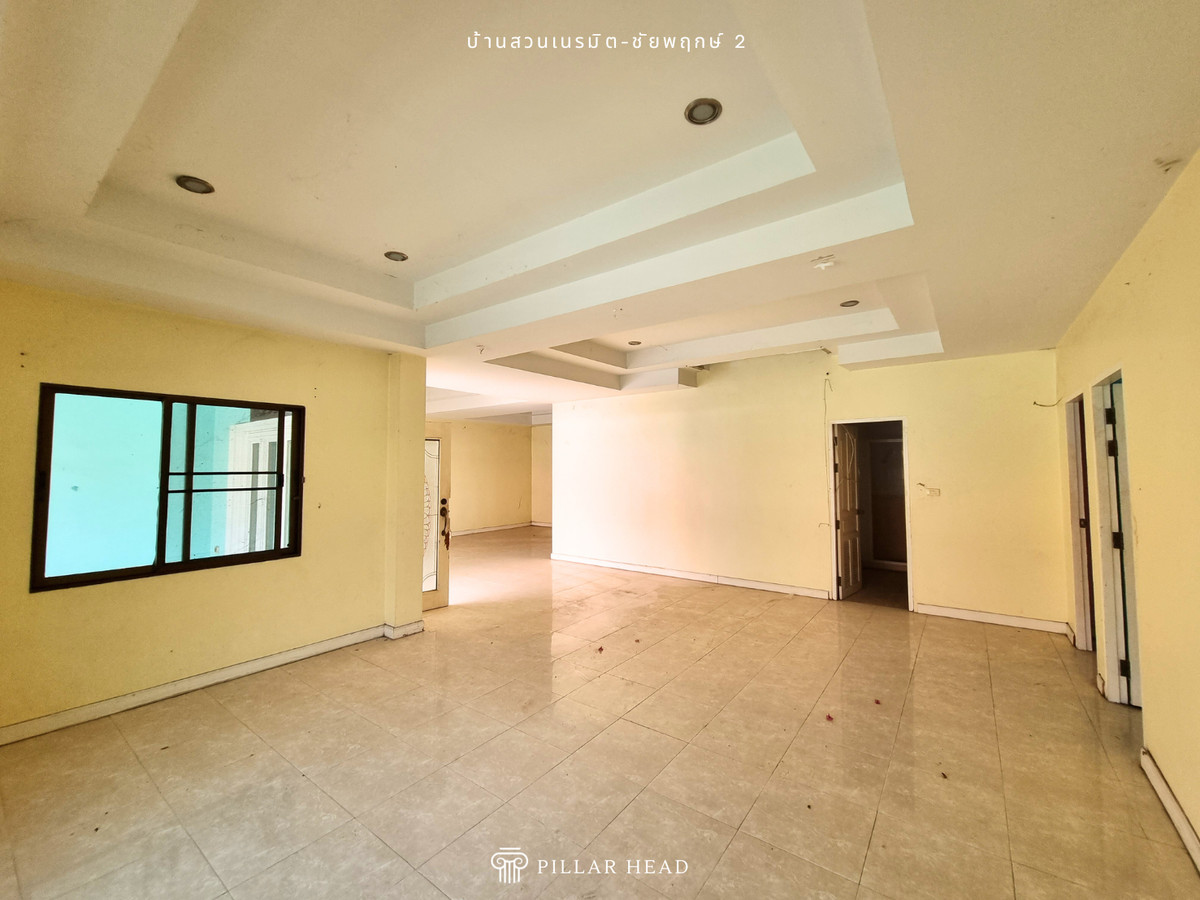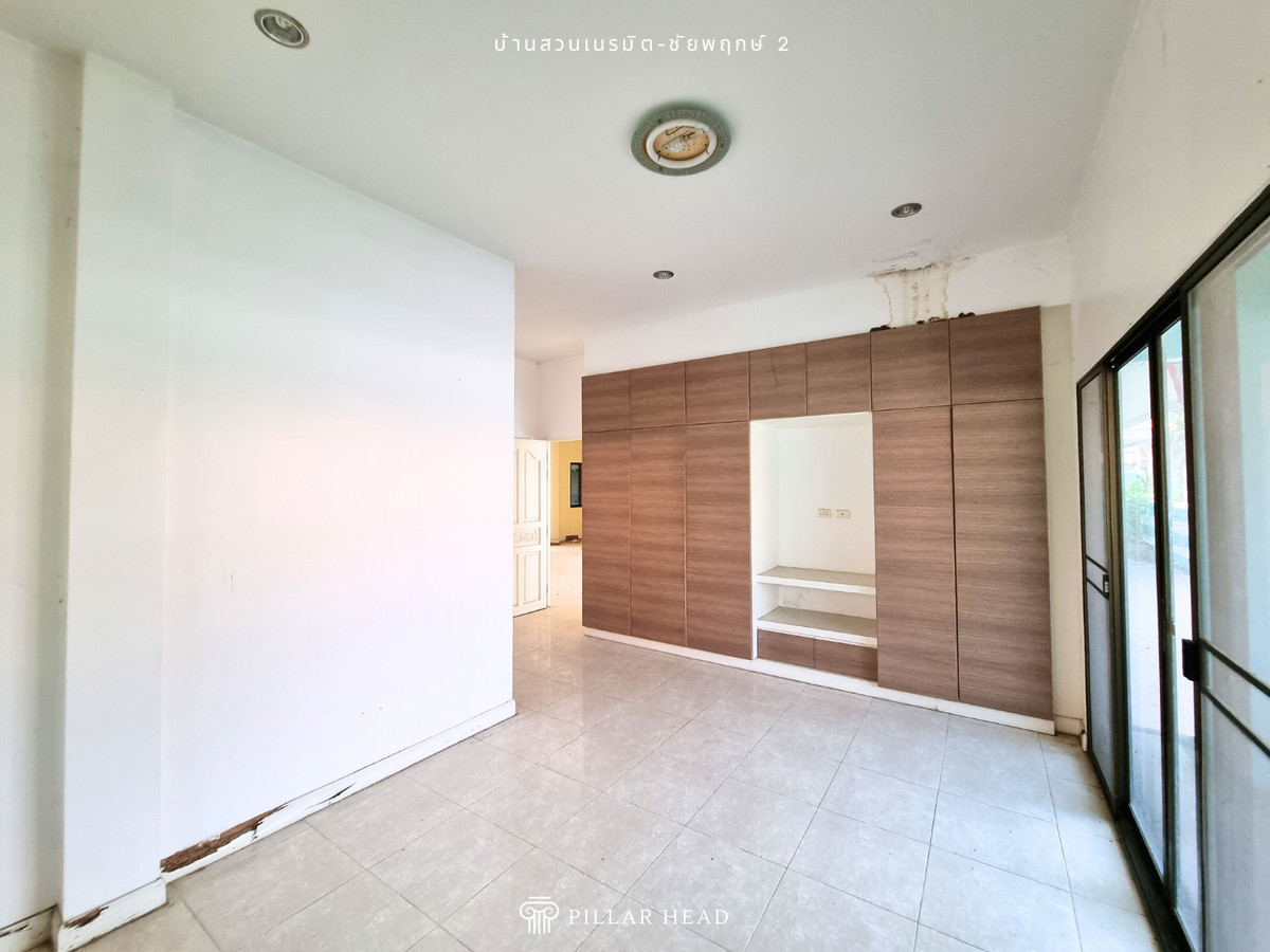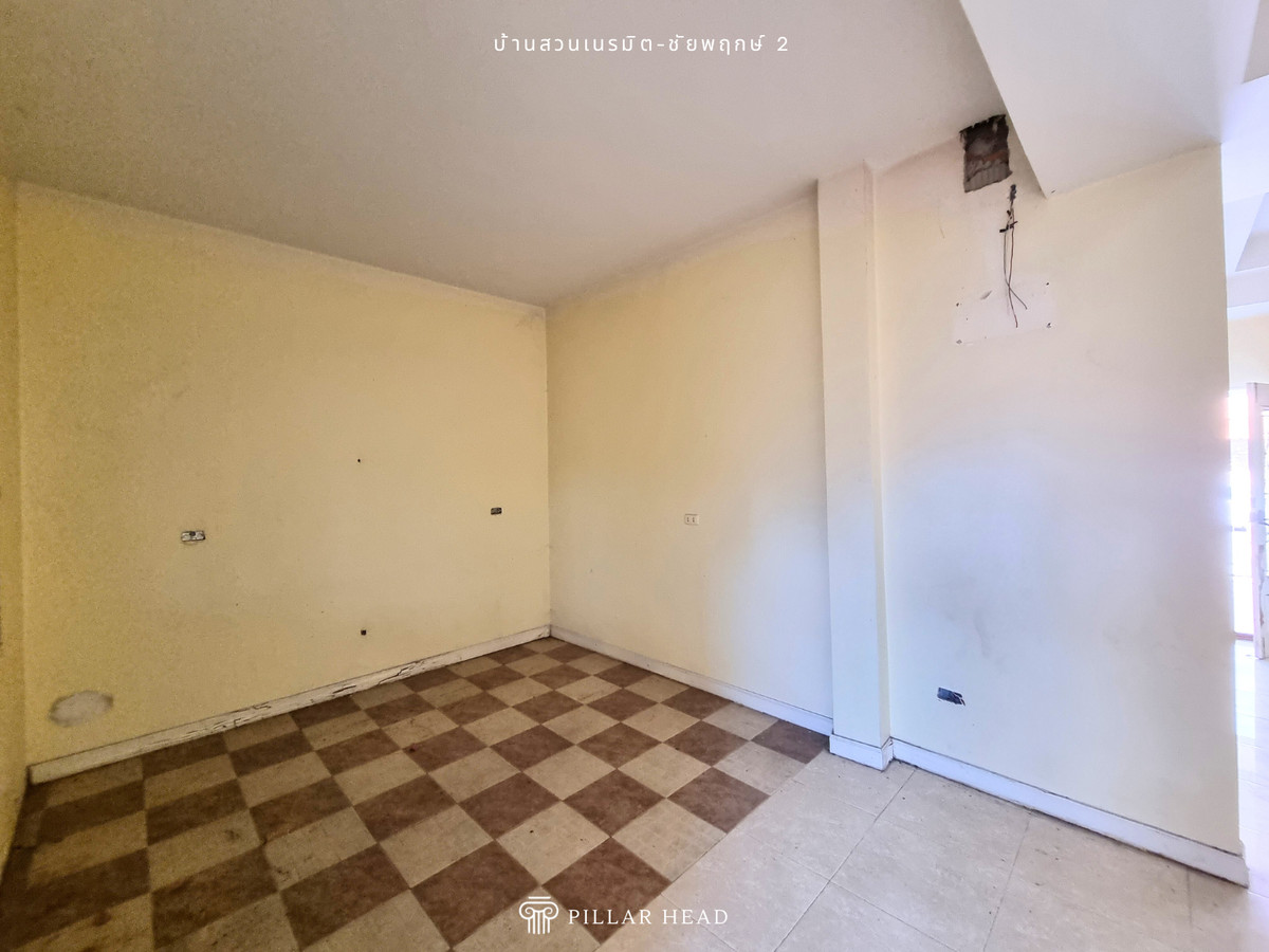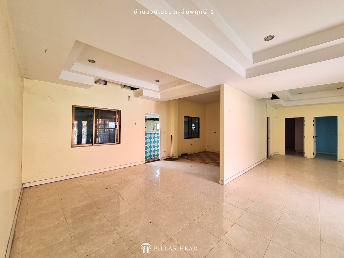 บ้านเดี่ยว 1 ชั้น ในโครงการบ้านสวนเนรมิต ชัยพฤกษ์ 2 เนื้อที่ 92.8 ตารางวา พื้นที่ใช้สอยประมาณ 250 ตารางเมตร 4 ห้องนอน, 3 ห้องน้ำ, ส่วนต่อเติมครัวหลังบ้าน อยู่ต้นโครงการ ไม่ต้องเข้าซอยต่อ ถนนในโครงการกว้าง ขายตามสภาพในราคาดี ต่ำกว่าราคาตลาด 25-30% สำหรับนักลงทุนซื้อไปรีโนเวทเพื่อขาย หรือปรับเปลี่ยนพื้นที่การใช้งานตามความต้องการเพื่ออยู่อาศัยเอง โครงการตั้งอยู่ในแหล่งชุมชน ย่านการค้าธุรกิจ และอยู่ใกล้ชายหาดจอมเทียน เหมาะกับวันพักผ่อนของครอบครัว เดินทางสะดวกสบาย เข้า-ออก ได้ทั้งทางถนนชัยพฤกษ์ 2, ถนนสุขุมวิท, ถนนเลียบทางรถไฟ และถนนสุขุมวิท-พัทยา 89 สิ่งอำนวยความสะดวก - สวนหย่อมในโครงการ - รปภ. 24 ชม. - ค่าส่วนกลางเดือนละ 13 บาท/ตร.ว. ขายบ้าน น่าอยู่ สภาพดี เดินทางไปไหนมาไหนสะดวก หาของกินง่าย นัดดูบ้านได้เลย ขายด่วน ราคาคุ้มมาก ต่อรองได้ สนใจทักแชทหรือโทรมาได้เลย