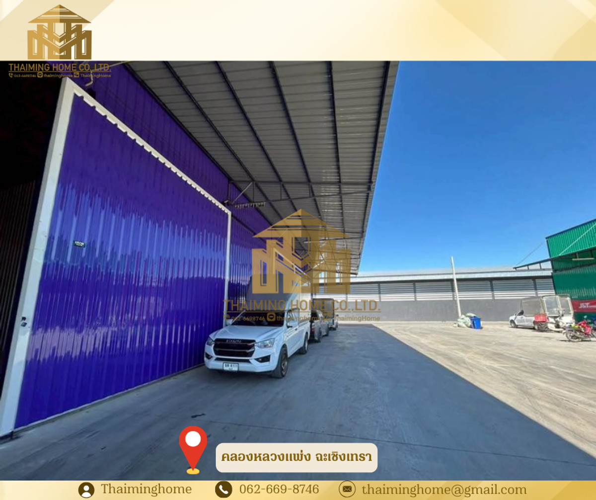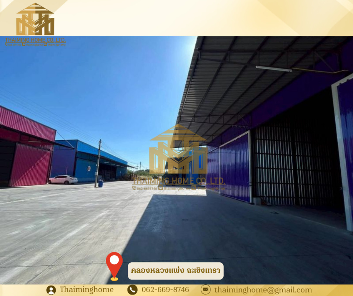 ให้เช่าโกดังคลองหลวงแพ่ง ขนาด 240 ตร.ม. อำเภอเมือง ฉะเชิงเทรา (รหัสทรัพย์ TW06-1426) รายละเอียด - ขนาด 240 ตารางเมตร (10 ม.*24 ม.) - โกดังสูงเฉลี่ย 7.5 เมตร - รถเทรลเลอร์ คอนเทนเนอร์ เข้าออกสะดวกสบาย - ประตูโกดังสูง 5 เมตร กว้าง 5 เมตร - ไฟฟ้า 1-3 เฟส - ห้องน้ำ ปั๊มน้ำ แทงค์น้ำ อ่างล้างมือ - ถนนส่วนกลางรถบรรทุก รถคอนเทนเนอร์ สามารถเข้า-ออกได้ - รับน้ำหนักได้ 3 ตัน/ตร.ม. สถานที่ใกล้เคียง - makro ฉะเชิงเทรา - ตลาดฉินสุวินทวงศ์ - สนามกอล์ฟ ฟีนิกซ์ โกลด์ - ศูนย์บริการสาธารณสุข 44 ลำผักชี หนองจอก เงื่อนไขการเช่า - สัญญาขั้นต่ำ 1 ปี - เงินประกัน 2 เดือน - ล่วงหน้า 1 เดือน - ราคาเช่า 24,000 บาท/เดือน -------------------- บริษัท ไทยหมิง โฮม จำกัด Thaiming Home Co.,Ltd. 泰明房园 房产公司 ----------------------- Contact ติดต่อ : คลิกเพื่อดูเบอร์โทรติดต่อ Contact : คลิกเพื่อดูเบอร์โทรติดต่อ คุณหมิง(中文) Line ID: thaiminghome Line ID: @thaiminghome https://lin.ee/PkkHwYv Wechat : ThaimingHome E-mail : คลิกเพื่อดูอีเมล -----------------------
