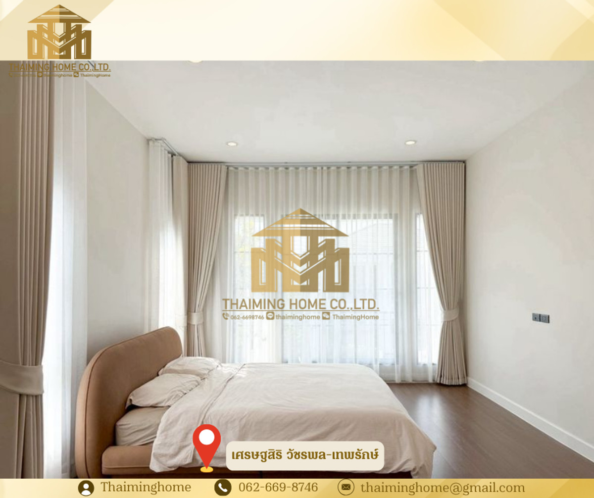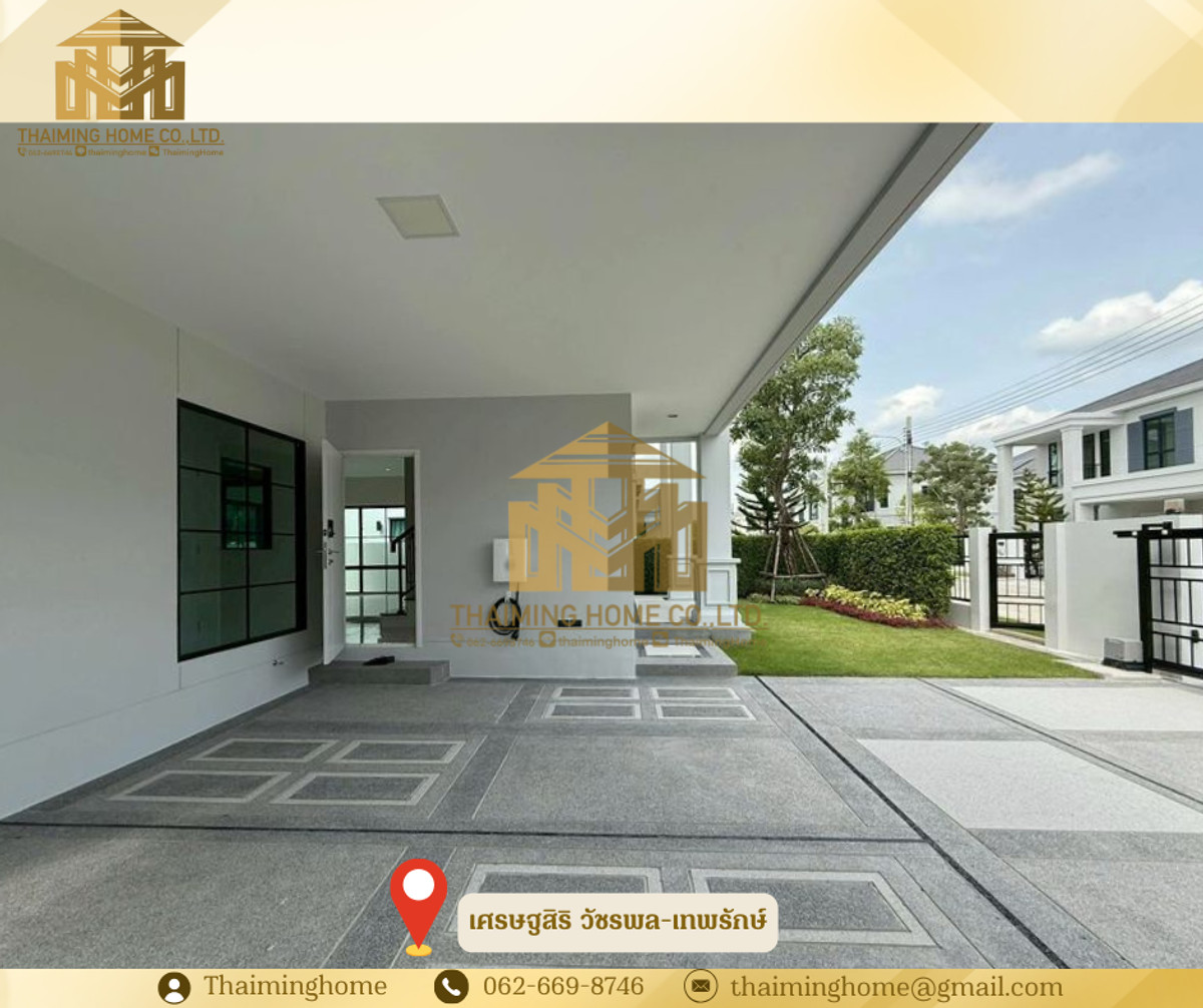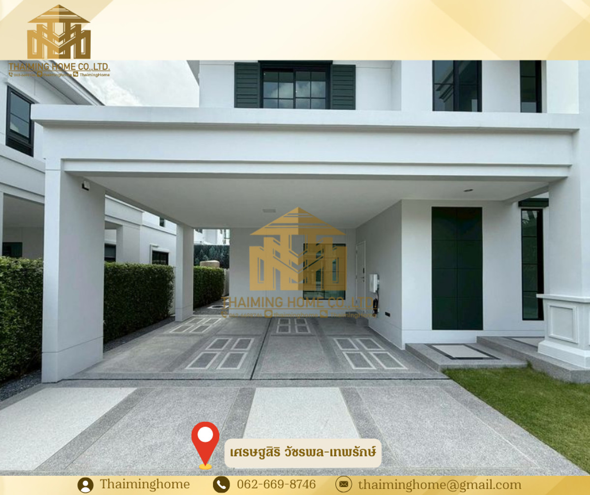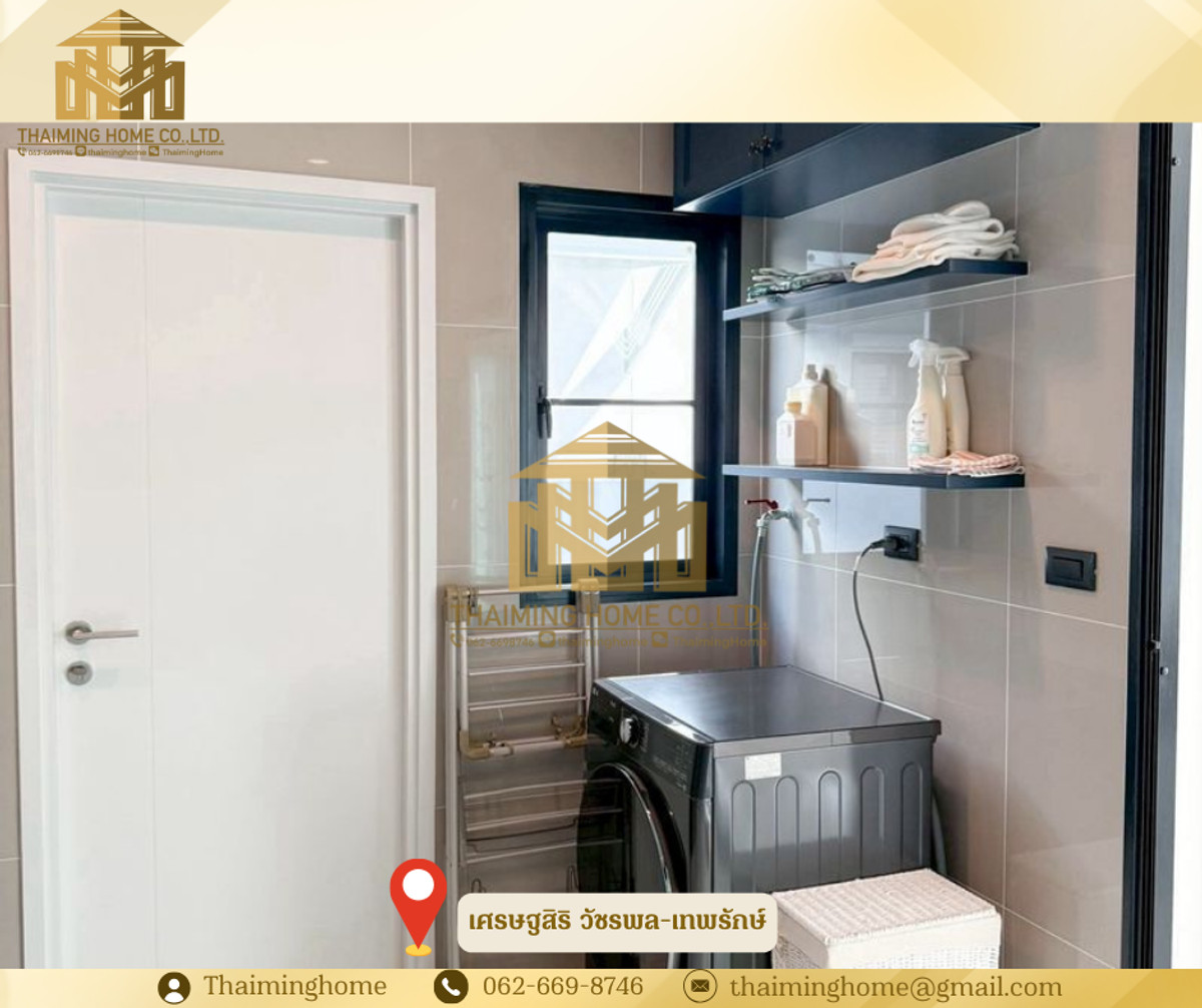 ขายบ้านโครงการ เศรษฐสิริ วัชรพล-เทพรักษ์ กรุงเทพฯ 59.80ตรว (TH8-03226) รายละเอียด - Type: Monro - พื้นที่ใช้สอย 205 ตร.ม. - ที่ดิน 59.80 ตร.ว. - สวนใหญ่ บ้านหันทิศใต้ เป็นส่วนตัว - 4 ห้องนอน ติดแอร์แล้วทุกห้อง | 4 ห้องน้ำ - 1 ห้องรับแขก 1 Dining Room - 1 ห้องเก็บของ - 1 ห้องครัว บิ้วอินเป็นครัวปูน - ติดม่าน พร้อมเฟอร์+เครื่องใช้ไฟฟ้าตามภาพ - ที่จอดรถ 2 คัน พร้อม EV Charger 1 จุด - สัญญาณกันขโมย ระบบ Magnetic ทั้งหลัง - ประตูบ้าน digital door lock + ประตูรั้วอัตโนมัติ + แท๊งค์น้ำปั้มน้ำ + ฉีดวางระบบปลวกแล้ว + ฟรีค่าส่วนกลางปี 2569 สถานที่ใกล้เคียง - ทางพิเศษฉลองรัช ด่านสุขาภิบาล 5 2.8 กม. - รถไฟฟ้า BTS สายหยุด 6.9 กม. - ถ.กาญจนาภิเษก 9 กม. - ถ.วิภาวดีรังสิต 9.4 กม. ห้างสรรพสินค้า - Market Places เทพรักษ์ 900 ม. - แม็คโคร เทพรักษ์ 4.5 กม. - เซ็นทรัล รามอินทรา 9.2 กม. - เดอะพรอมานาด 11.5 กม. - เซ็นทรัล อีสต์วิลล์ 14.4 กม. โรงเรียน - รร.ศิริวัฒน์วิทยา 3.4 กม. - รร.นานาชาติกีรพัฒน์ 9.2 กม. - รร.นานาชาติฮาร์โรว์ กรุงเทพ 15.7 กม. เงื่อนไข - ราคา 13,990,000 บาท - ค่าโอนคนละครึ่ง ________________________ บริษัท ไทยหมิง โฮม จำกัด Thaiming Home Co.,Ltd. 泰明房园 房产公司 _________________________ Contact ติดต่อ : คลิกเพื่อดูเบอร์โทรติดต่อ Contact : คลิกเพื่อดูเบอร์โทรติดต่อ คุณหมิง Line ID: thaiminghome Line ID: @thaiminghome https://lin.ee/PkkHwYv Wechat : ThaimingHome E-mail : คลิกเพื่อดูอีเมล _________________________