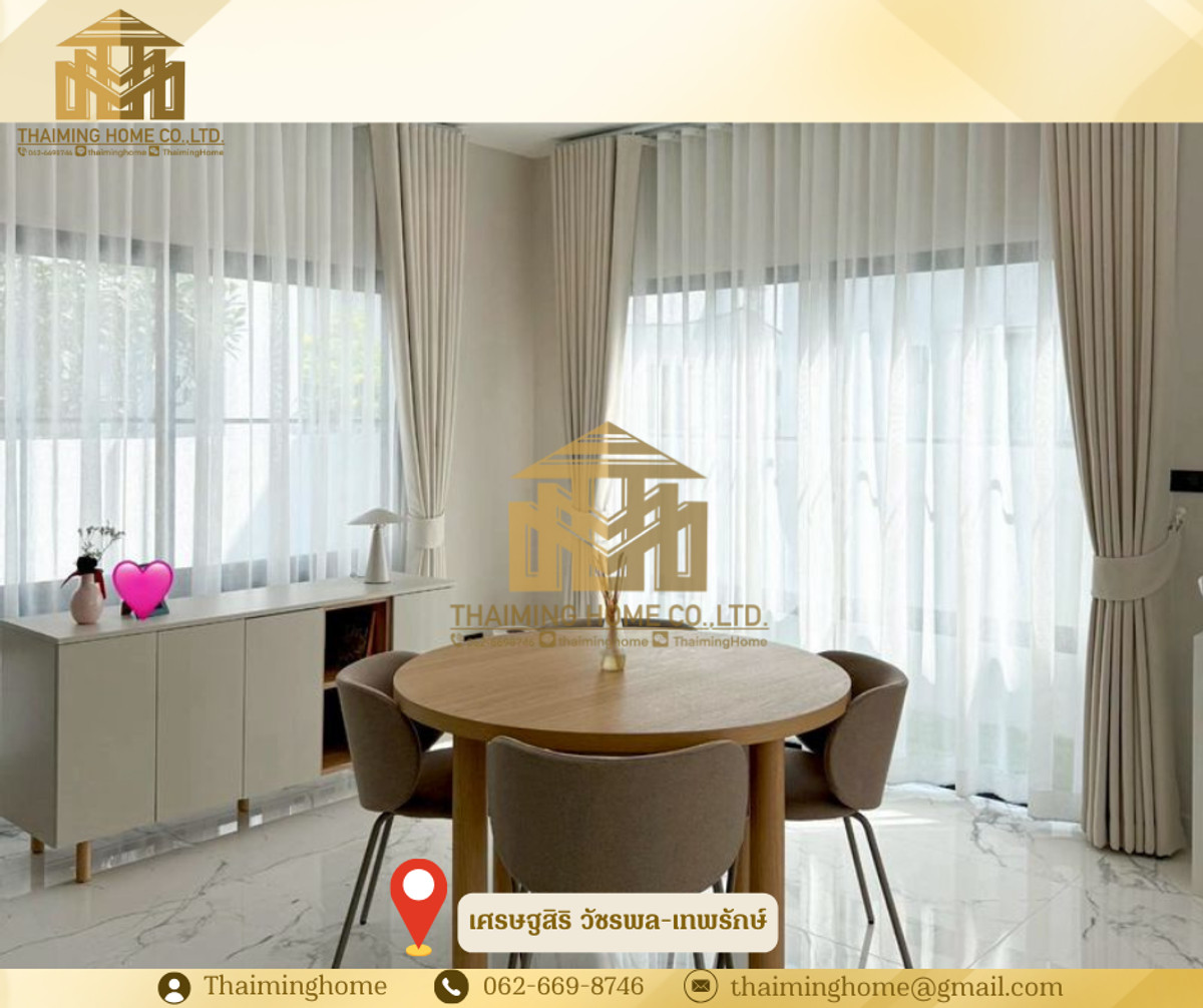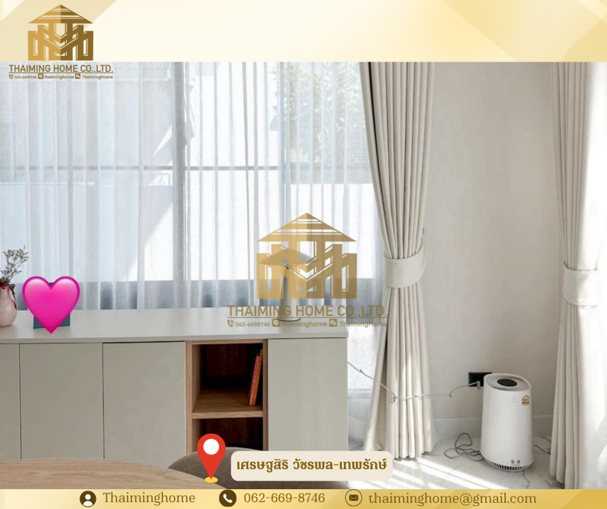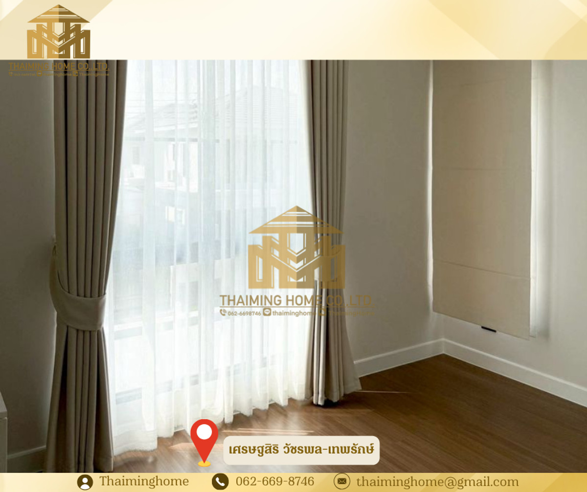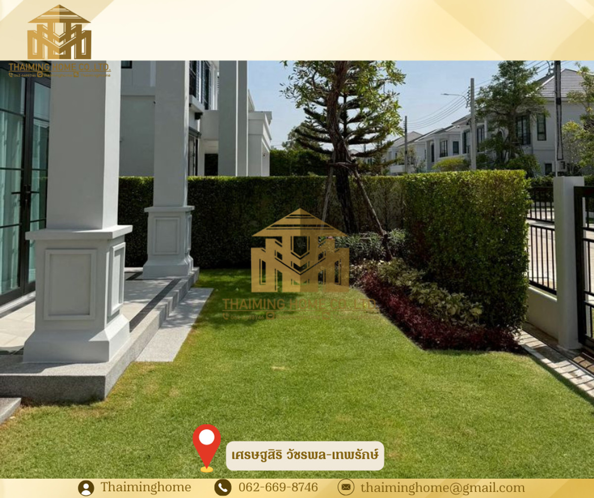 ขายบ้านโครงการ เศรษฐสิริ วัชรพล-เทพรักษ์ กรุงเทพฯ 59.80ตรว (TH8-03226) รายละเอียด - Type: Monro - พื้นที่ใช้สอย 205 ตร.ม. - ที่ดิน 59.80 ตร.ว. - สวนใหญ่ บ้านหันทิศใต้ เป็นส่วนตัว - 4 ห้องนอน ติดแอร์แล้วทุกห้อง | 4 ห้องน้ำ - 1 ห้องรับแขก 1 Dining Room - 1 ห้องเก็บของ - 1 ห้องครัว บิ้วอินเป็นครัวปูน - ติดม่าน พร้อมเฟอร์+เครื่องใช้ไฟฟ้าตามภาพ - ที่จอดรถ 2 คัน พร้อม EV Charger 1 จุด - สัญญาณกันขโมย ระบบ Magnetic ทั้งหลัง - ประตูบ้าน digital door lock + ประตูรั้วอัตโนมัติ + แท๊งค์น้ำปั้มน้ำ + ฉีดวางระบบปลวกแล้ว + ฟรีค่าส่วนกลางปี 2569 สถานที่ใกล้เคียง - ทางพิเศษฉลองรัช ด่านสุขาภิบาล 5 2.8 กม. - รถไฟฟ้า BTS สายหยุด 6.9 กม. - ถ.กาญจนาภิเษก 9 กม. - ถ.วิภาวดีรังสิต 9.4 กม. ห้างสรรพสินค้า - Market Places เทพรักษ์ 900 ม. - แม็คโคร เทพรักษ์ 4.5 กม. - เซ็นทรัล รามอินทรา 9.2 กม. - เดอะพรอมานาด 11.5 กม. - เซ็นทรัล อีสต์วิลล์ 14.4 กม. โรงเรียน - รร.ศิริวัฒน์วิทยา 3.4 กม. - รร.นานาชาติกีรพัฒน์ 9.2 กม. - รร.นานาชาติฮาร์โรว์ กรุงเทพ 15.7 กม. เงื่อนไข - ราคา 13,990,000 บาท - ค่าโอนคนละครึ่ง ________________________ บริษัท ไทยหมิง โฮม จำกัด Thaiming Home Co.,Ltd. 泰明房园 房产公司 _________________________ Contact ติดต่อ : คลิกเพื่อดูเบอร์โทรติดต่อ Contact : คลิกเพื่อดูเบอร์โทรติดต่อ คุณหมิง Line ID: thaiminghome Line ID: @thaiminghome https://lin.ee/PkkHwYv Wechat : ThaimingHome E-mail : คลิกเพื่อดูอีเมล _________________________
