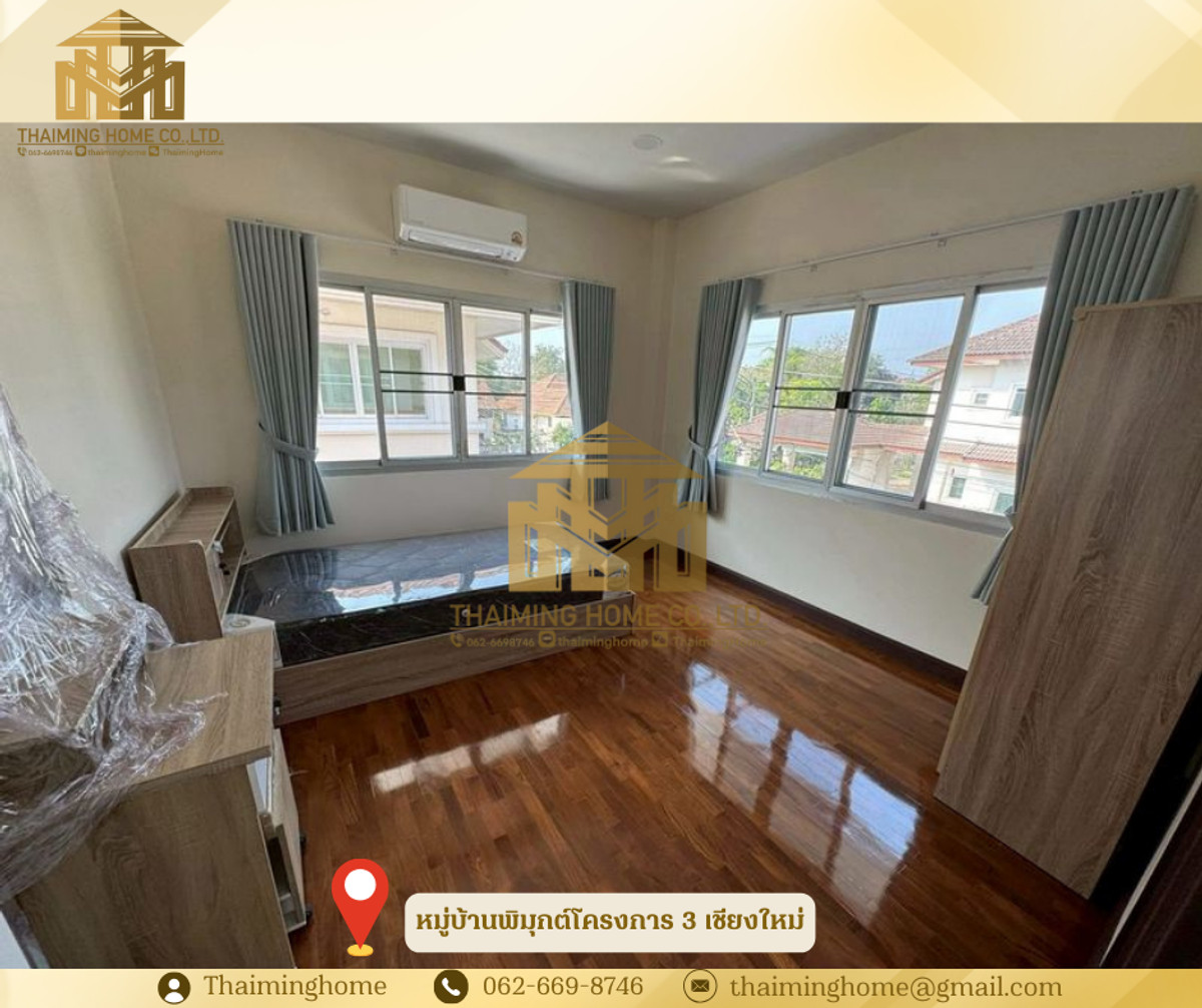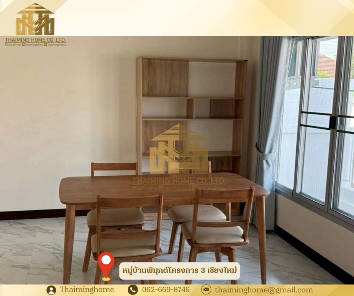 บ้านให้เช่า เชียงใหม่ รีโนเวทใหม่หมู่บ้านพิมุกต์โครงการ 3 บ้านหัวมุม (TH8-03426) รายละเอียด - บ้านรีโนเวทใหม่หมู่บ้านพิมุกต์โครงการ 3 บ้านหัวมุม - ติดถนนใหญ่ ข้างม.พายัพ ใกล้เซนเฟส ตลาดสามแยก - ถนนโครงการกว้าง 12 เมตร security 24 ชั่วโมง - พื้นที่ภายในบ้าน 170 ตร.ม. - สามารถเลี้ยงสัตว์ได้ - บ้านเดี่ยว2 ชั้น 3 ห้องนอน 3 ห้องน้ำ (มีอ่างอาบน้ำ1ห้อง) - ห้องนั่งเล่น ห้องนอน มีแอร์และเครื่องทำน้ำอุ่น ให้ทุกห้อง - ครัวภายใน และภายนอก - มีโรงจอดรถ ประตูรีโมทอัตโนมัติ - มีเฟอร์นิเจอร์ให้ครบ พร้อมอยู่ได้เลย - เครื่องปรับอากาศ 5 - เครื่องทำน้ำอุ่น 3 - เครื่องดูดควันจากเตา 1 - เตาแก๊ส - ตู้เย็น 1 - ไมโครเวฟ 1 - เครื่องซักผ้า 1 - เฟอร์นิเจอร์ในห้องนอน เตียงพร้อมฟูกนอน 3 ตู้เสื้อผ้า 3 โต๊ะเครื่องแป้ง 2 - เฟอร์นิเจอร์ในห้องรับแขก - ชุดรับแขก 1 - โทรทัศน์ 1 - โต๊ะทานข้าว 1 - โต๊ะทำงาน1 สถานที่ใกล้เคียง - ติดถนนใหญ่ ข้างม.พายัพ ใกล้เซนเฟส ตลาดสามแยก - คุ้มขันโตก - แม็คโครเชียงใหม่ - ตลาดฉำฉา เงื่อนไข - ราคาเช่าเดือนละ 26,000 บาท - สัญญาขั้นต่ำ 1 ปี - เงื่อนไขเข้าอยู่ จ่ายประกัน 2 เดือน + ล่วงหน้า 1 เดือน = จ่าย 3 เดือนเข้าอยู่ได้เลย - ไม่ต้องจ่ายค่าส่วนกลางเพิ่ม - สามารถเลี้ยงสัตว์ได้ ________________________ บริษัท ไทยหมิง โฮม จำกัด Thaiming Home Co.,Ltd. 泰明房园 房产公司 _________________________ Contact ติดต่อ : คลิกเพื่อดูเบอร์โทรติดต่อ Contact : คลิกเพื่อดูเบอร์โทรติดต่อ คุณหมิง Line ID: thaiminghome Line ID: @thaiminghome https://lin.ee/PkkHwYv Wechat : ThaimingHome E-mail : คลิกเพื่อดูอีเมล _________________________