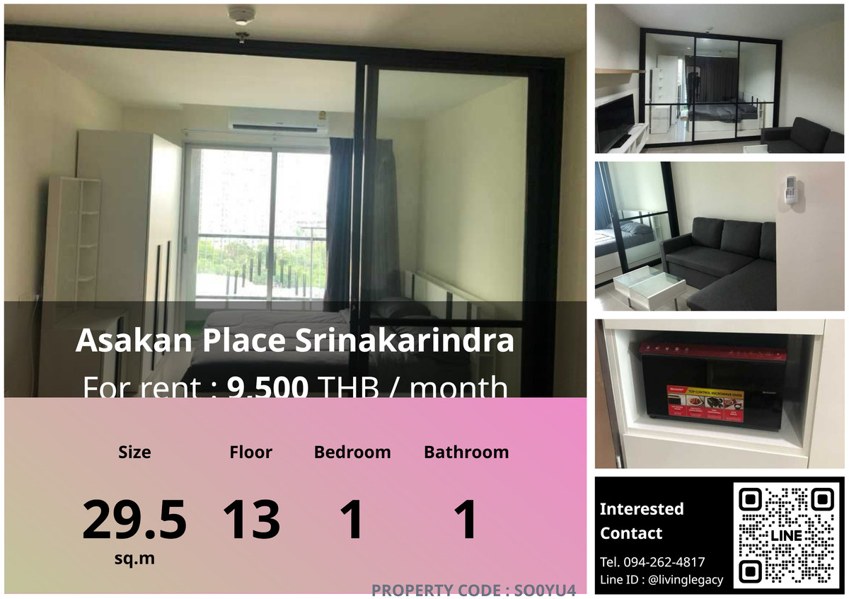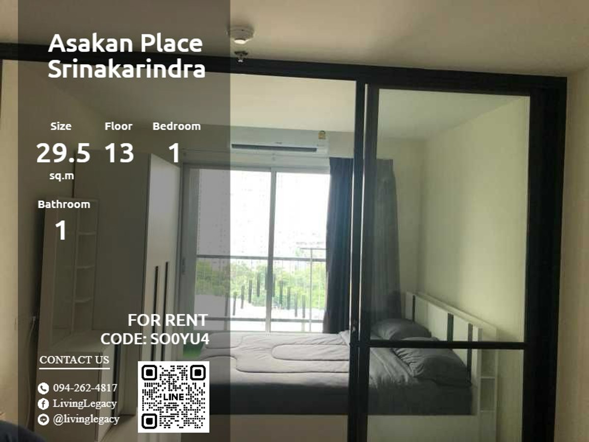 SO0YU4 ให้เช่าคอนโด Asakan Place Srinakarindra 29.5 ตร.ม. ชั้น 13 line id : @livinglegacy
