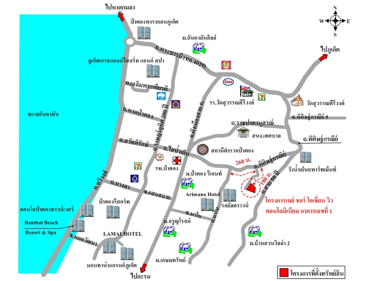 โครงการ เบย์ ชอร์ โอเชี่ยน วิว คอนโดมิเนียม - โครงการตั้งอยู่บนทำเลคุณภาพ ใกล้แหล่งอำนวยความสะดวก อาทิ โรงพยาบาลป่าตอง, สถานีตำรวจภูธรกะทู้, แม็คโคร ป่าตอง, เซ็นทรัล ป่าตอง, ศูนย์การค้าจังซีลอน, โรบินสัน สาขาจังซีลอน, วัดสุวรรณคีรี, หาดป่าตอง และบิ๊กซี เอ็กซ์ตร้า ภูเก็ต - การเดินทางสะดวกสบาย เข้า-ออกได้หลายเส้นทาง ถนนพระบารมี, ถนนราษฏร์อุทิศ 200 ปี, ถนนห้าสิบปี และถนนพิศิษฐ์กรณีย์ ห้องชุดพักอาศัย เลขที่ 127/41 (D30) ชั้นที่ 5 ชื่ออาคารชุด เบย์ ชอร์ โอเชี่ยน วิว คอนโดมิเนียม ทะเบียนอาคารชุดเลขที่ 17/2557 อัตราส่วนแห่งกรรมสิทธิ์ในทรัพย์ส่วนกลาง : 39.95 ส่วน ใน 3,792.45 ส่วน ข้อมูลอาคารชุด : อาคารสูง 8 ชั้น มีจำนวนห้องชุดรวม 77 ห้อง โดยโครงการฯ มีทั้งหมด 1 อาคาร จำนวนลิฟท์ 2 ชุด/อาคาร มีระบบรักษาความปลอดภัย ระบบดับเพลิง ค่าส่วนกลางประมาณ 1,997.50 บาท/เดือน หมายเหตุ : ทรัพย์สินตั้งอยู่ในย่านที่อยู่อาศัย และพาณิชยกรรม สนใจทรัพย์นี้ติดต่อ ออย คลิกเพื่อดูเบอร์โทรติดต่อ