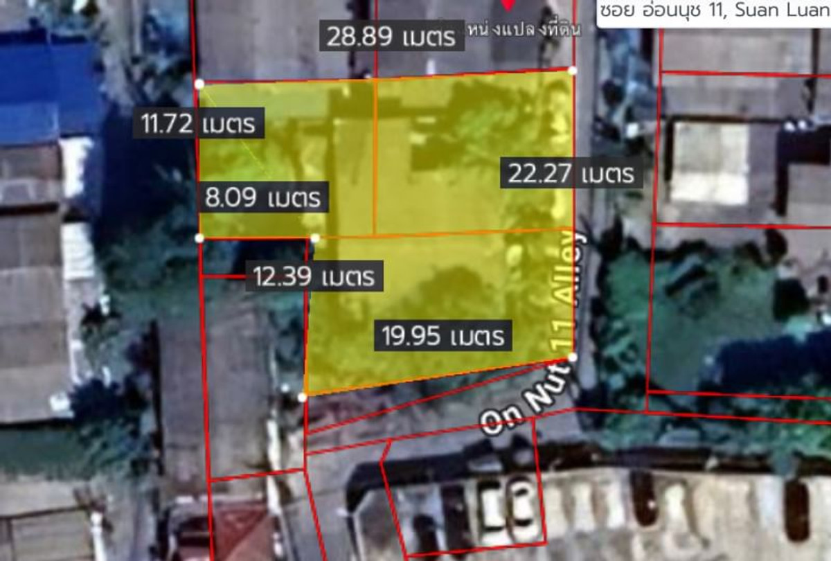 ที่ดินเปล่า 144 ตารางวา ซอยอ่อนนุช 11 ใกล้ถนนสุขุมวิท แปลงที่ดินอยู่ตรงข้าม People Park