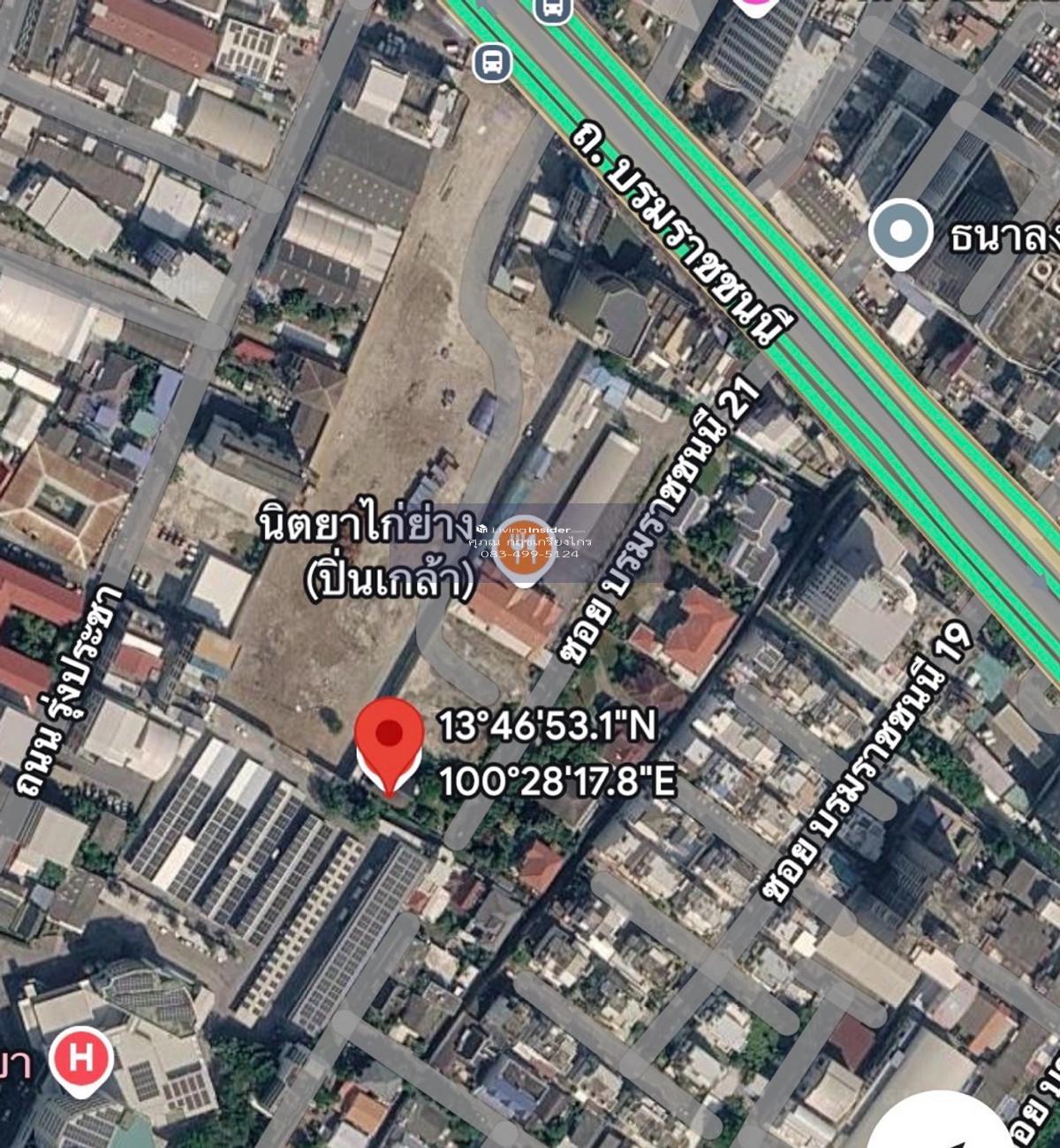 ขายที่ดิน 379+80วา ซอยบรมราชนนี21 ใกล้เซ็นทรัลปิ่นเกล้า เข้าซอย 100เมตร -ขายที่ดินถนนบรมราชนนี 459 ตารางวา -หน้ากว้าง 46 เมตร ลึก 40 เมตร สอบถามเพิ่มเติม โทร. คลิกเพื่อดูเบอร์โทรติดต่อ (คุณศุภณ) LINE