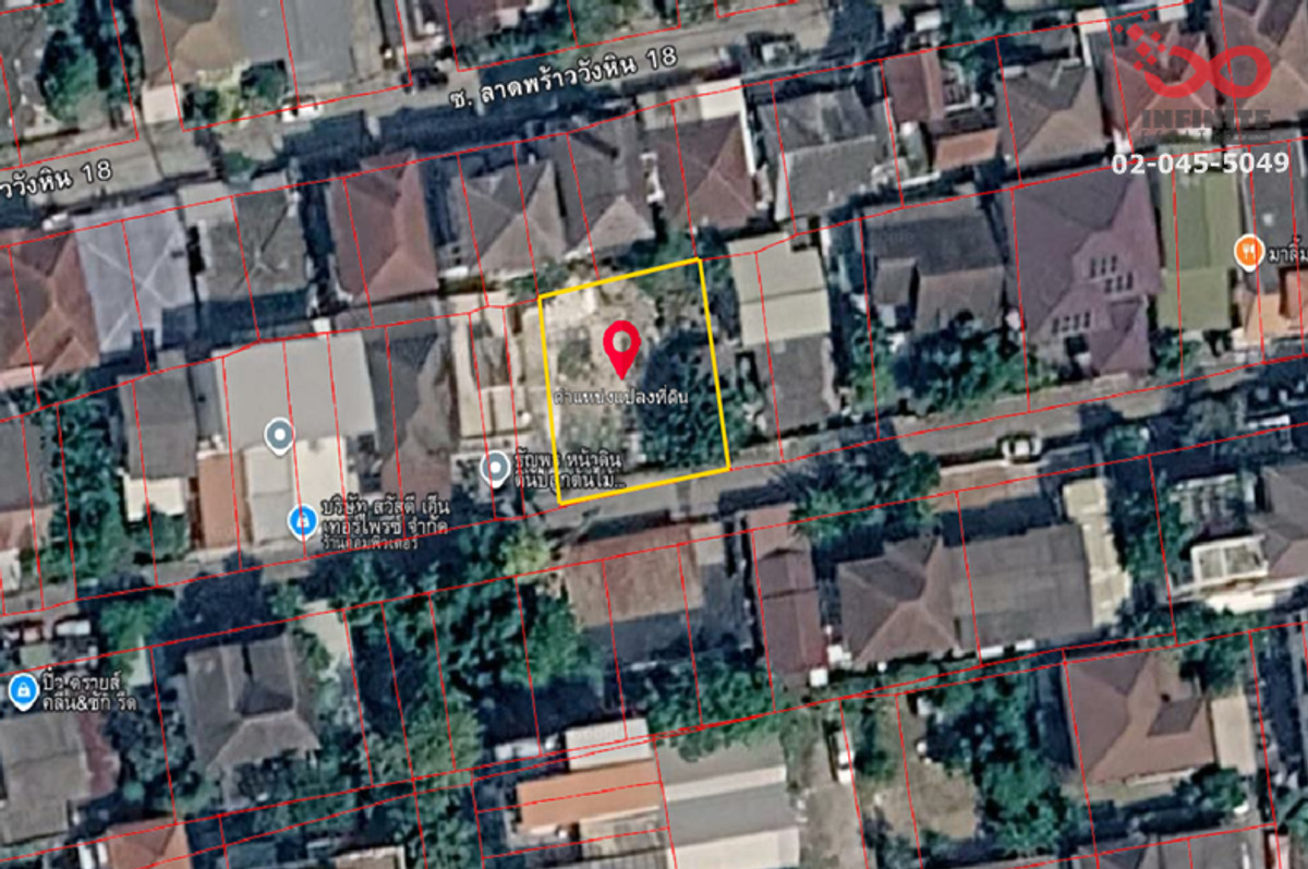 ติดต่อ : คุณเจษ คลิกเพื่อดูเบอร์โทรติดต่อ office : คลิกเพื่อดูเบอร์โทรติดต่อ ที่ตั้ง : ซอยลาดพร้าววังหิน 16 ถนนลาดพร้าว แขวงลาดพร้าว เขตลาดพร้าว กรุงเทพมหานคร 10230 พื้นที่ : 100 ตารางวา กว้าง-ยาว : กว้าง 20 เมตร ลึก 20 เมตร โดยประมาณ รีวิว : ที่ดินเปล่าถมแล้วแปลงสวยรูปสี่เหลี่ยมจตุรัส หน้ากว้าง 20 เมตร ลึก 20 เมตร ทำเลดีพร้อมปลูกสร้างที่พักอาศัย , โฮมออฟฟิศ เข้าออกได้ 2 เส้นทางทั้งทางถนนลาดพร้าววังหิน (ซอย16) และโชคชัย 4 ซอย27 ทรัพย์สินหันหน้าทิศ : ใต้ สถานที่ใกล้เคียง : สถานที่ช้อปปิ้งและไลฟ์สไตล์ - เซ็นทรัลอีสวิลล์ - โฮมโปรเอกมัย-รามอินทรา - โลตัสวังหิน สถานศึกษา - มหาวิทยาลัยราชภัฏจันทรเกษม - โรงเรียนสตรีวิทยา 2 - โรงเรียนนวมินทราชินูทิศบดินทรเดชา โรงพยาบาล - โรงพยาบาลเปาโลโชคชัย 4 - โรงพยาบาลลาดพร้าว - โรงพยาบาลเวชธานี การเดินทาง - รถไฟฟ้า สายสีเหลือง - ทางด่วนฉลองรัช - สนามบินดอนเมือง