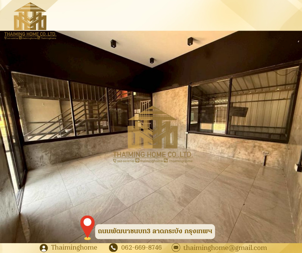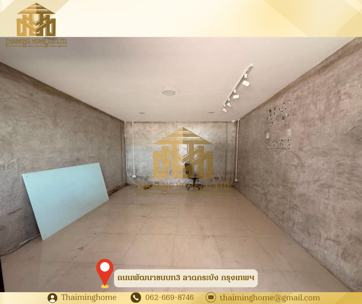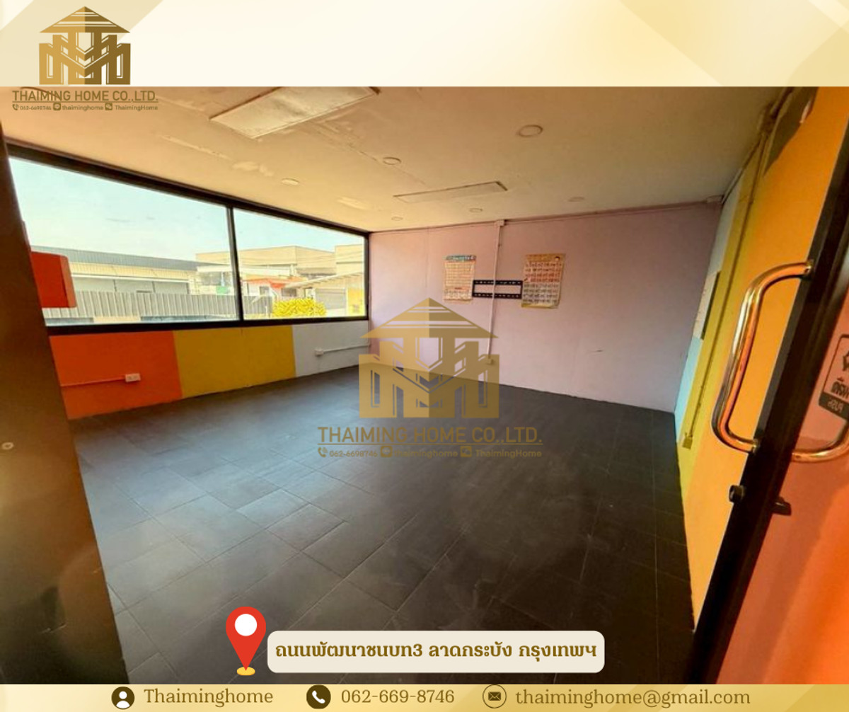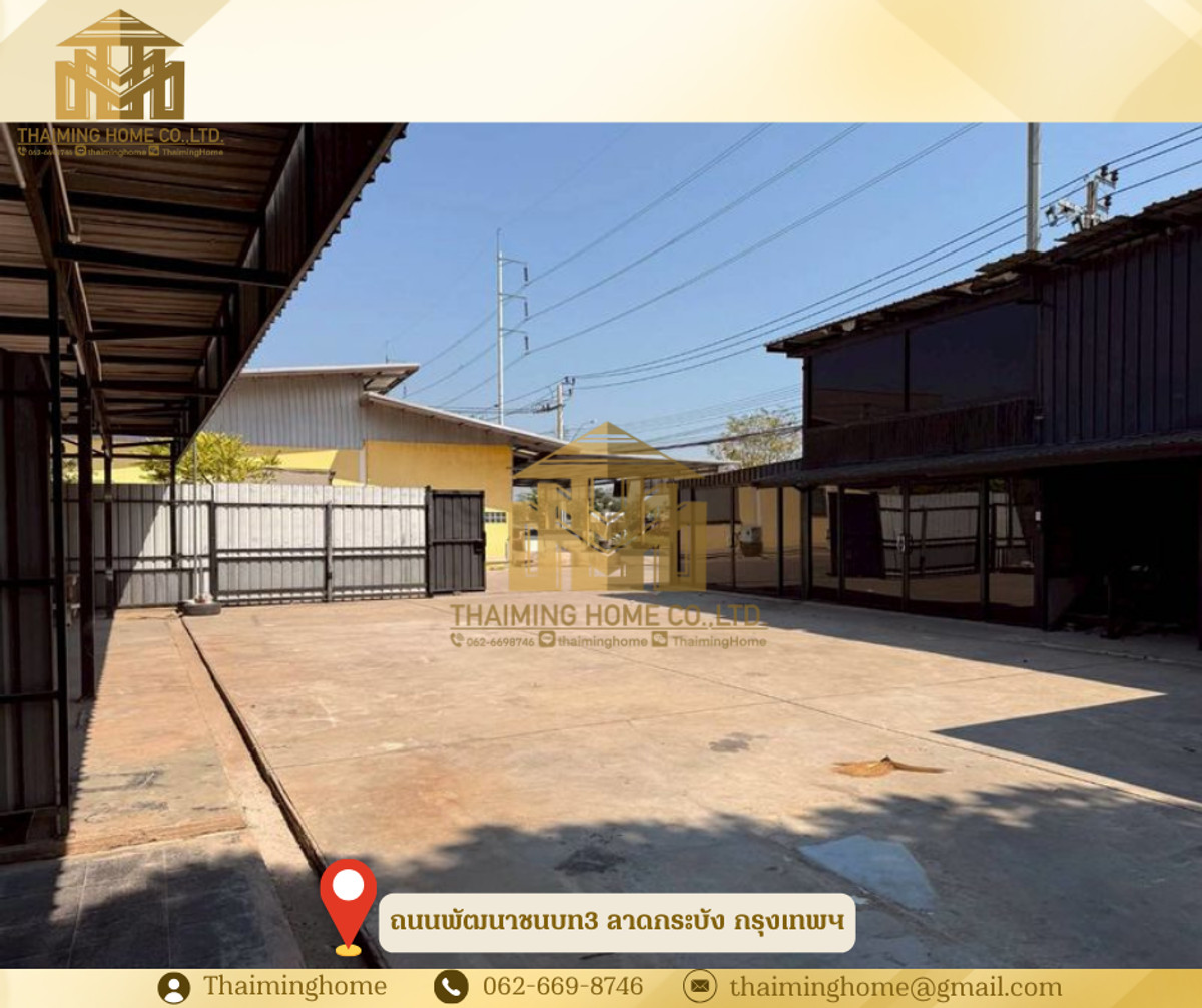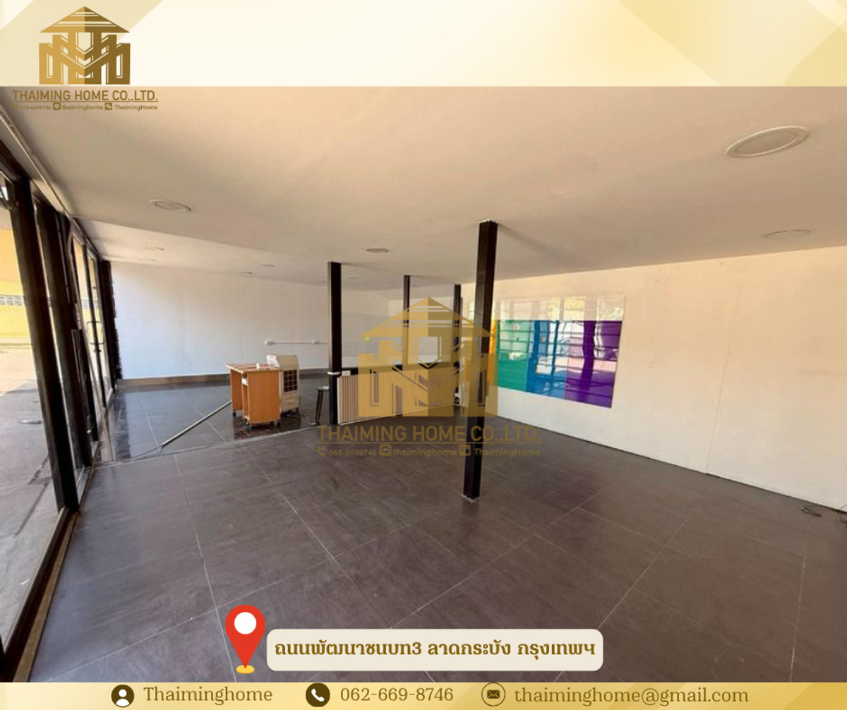 ให้เช่าโกดังพร้อมออฟฟิศ พัฒนาชนบท 3 ขนาด 150 ตร.ว. ลาดกระบัง กรุงเทพมหานคร (รหัสทรัพย์ TW06-2926) รายละเอียด - พื้นที่ 150 ตร.ว. - พื้นที่ใช้สอย 590 ตร.ม. - ออฟฟิศ 4 ห้อง - ห้องพนักงาน 2 ห้อง - ห้องน้ำ 2 ห้อง - เหมาะสำหรับเปิดร้านค้า ออฟฟิศ โกดัง หรือทำธุรกิจต่าง ๆ สถานที่ใกล้เคียง - สนามบินสุวรรณภูมิ - โรบินสัน สุวรรณภูมิ - โรงพยาบาลสิรินธร เงื่อนไขการเช่า - สัญญาขั้นต่ำ 1 ปี - เงินประกัน 2 เดือน - ล่วงหน้า 1 เดือน - ราคาเช่า 50,000 บาท/เดือน -------------------- บริษัท ไทยหมิง โฮม จำกัด Thaiming Home Co.,Ltd. 泰明房园 房产公司 ----------------------- Contact ติดต่อ : คลิกเพื่อดูเบอร์โทรติดต่อ Contact : คลิกเพื่อดูเบอร์โทรติดต่อ คุณหมิง(中文) Line ID: thaiminghome Line ID: @thaiminghome https://lin.ee/PkkHwYv Wechat : ThaimingHome E-mail : คลิกเพื่อดูอีเมล -----------------------