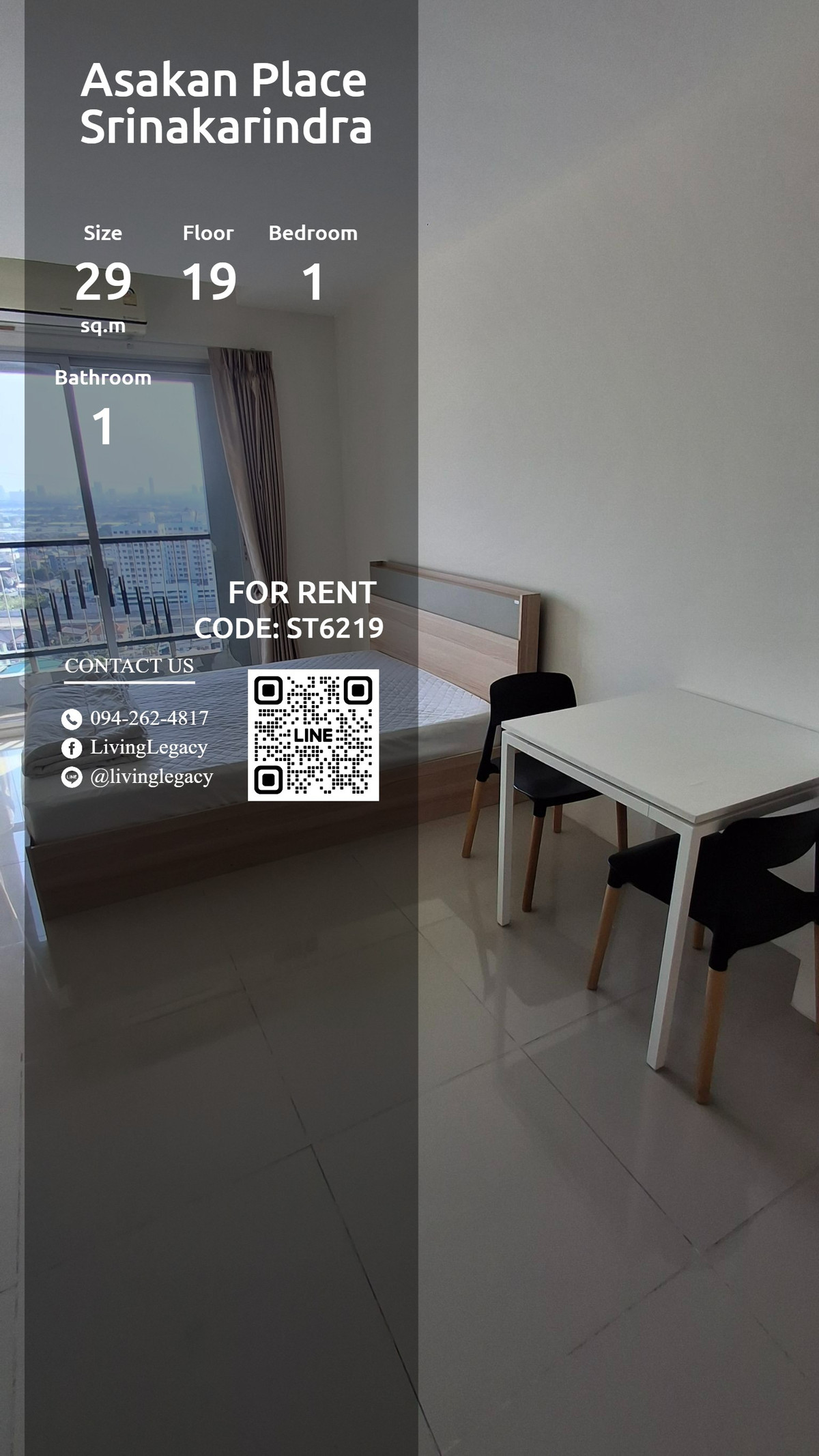 ST6219 ให้เช่าคอนโด Asakan Place Srinakarindra 29 ตร.ม. ชั้น 19 line id : @livinglegacy