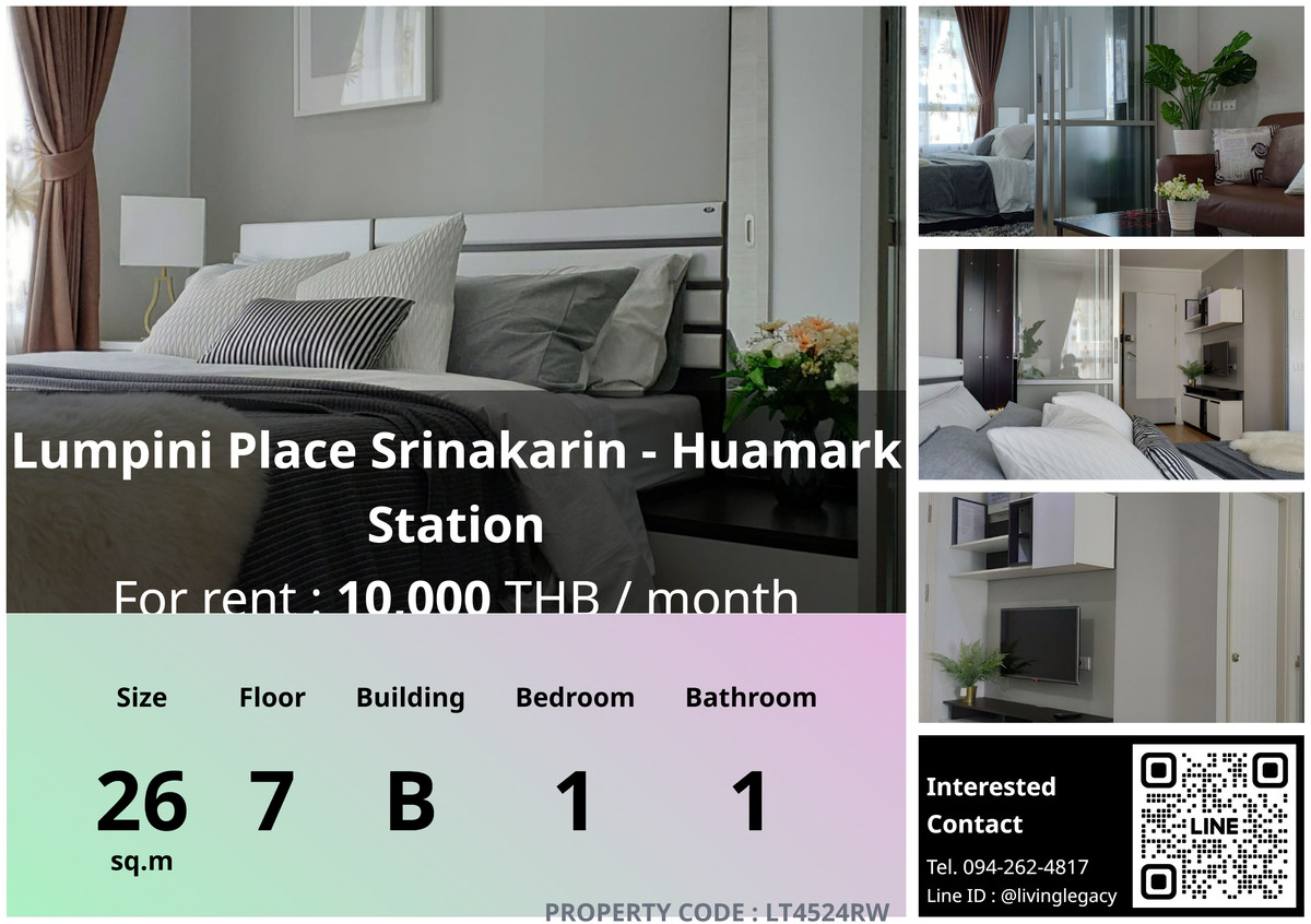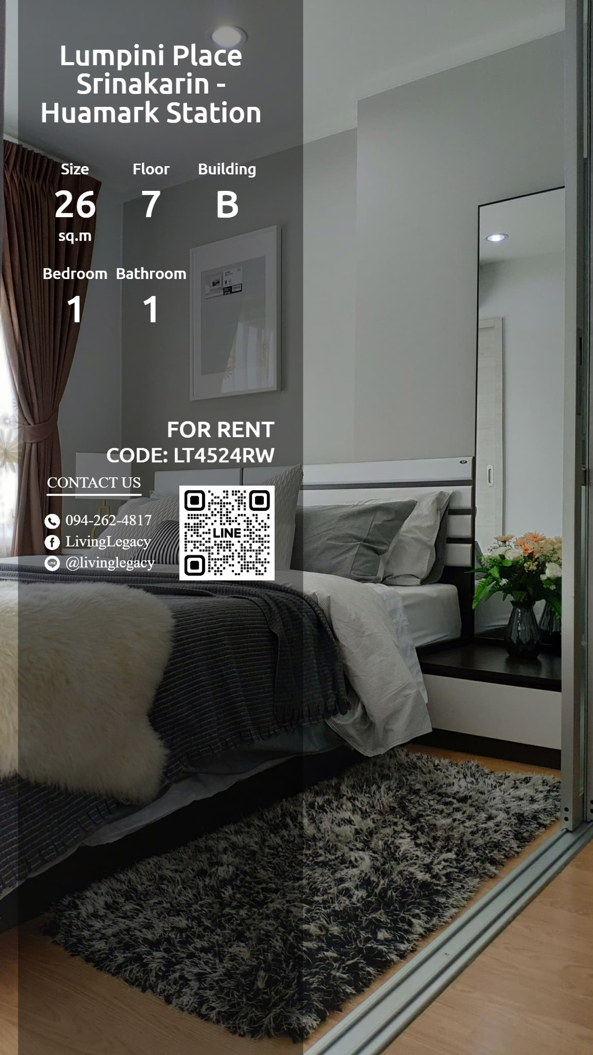 LT4524RW ให้เช่าคอนโด Lumpini Place Srinakarin - Huamark Station 26 ตร.ม. ชั้น 7 ตึก B line id : @livinglegacy