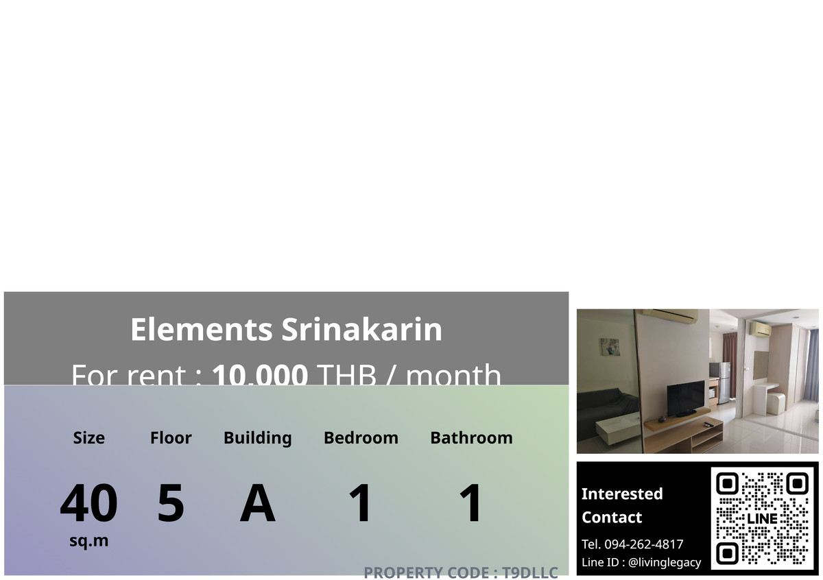 🏠 T9DLLC ให้เช่าคอนโด Elements Srinakarin 40 ตร.ม. ชั้น 5 ตึก A 1 นอน 1 น้ำ ✨ พร้อมอยู่ทันที! ห้องสวยแต่งครบ พร้อมเข้าอยู่ได้เลย! 🔍รายละเอียด - จำนวนห้องนอน: 1 - จำนวนห้องน้ำ: 1 - พื้นที่ใช้สอย (ตร.ม.): 40 - ชั้นที่: 5 - อาคาร: A 🌟 ไฮไลท์ห้องนี้! 🌟 🌟สิ่งอำนวยความสดวกต่างๆ - เครื่องปรับอากาศ - เฟอร์นิเจอร์ - เตา - ตู้เย็น 📞 รีบจองด่วน! สอบถามรายละเอียดเพิ่มเติม ราคา 10000 บาท รหัสทรัพย์สิน: T9DLLC สนใจติดต่อ แอดไลน์ ID: @livinglegacy เฟสบุ๊ค: LivingLegacy WhatsApp: https://wa.me/ คลิกเพื่อดูเบอร์โทรติดต่อ สนใจห้องอื่นๆในโครงการคลิก : https://living-legacy.atrobot.asia/property-listing/65af311155dd1c90c1105ea2 #ElementsSrinakarin #ParadisePlace #BizInterCoLtd #PickadailyBangkok #WatWachirathamSathitSchoolโรงเรียนวัดวชิรธรรมสาธิต #บจกจอยน์เทคอินเตอร์เนชั่นแนลJointechInternationalCompany #SeasonFashionMall #KPSSmartSchool #UDOMSUKVETSCAREANI #BramaTradeCompanyLTD #AsokwitOnnutSchool