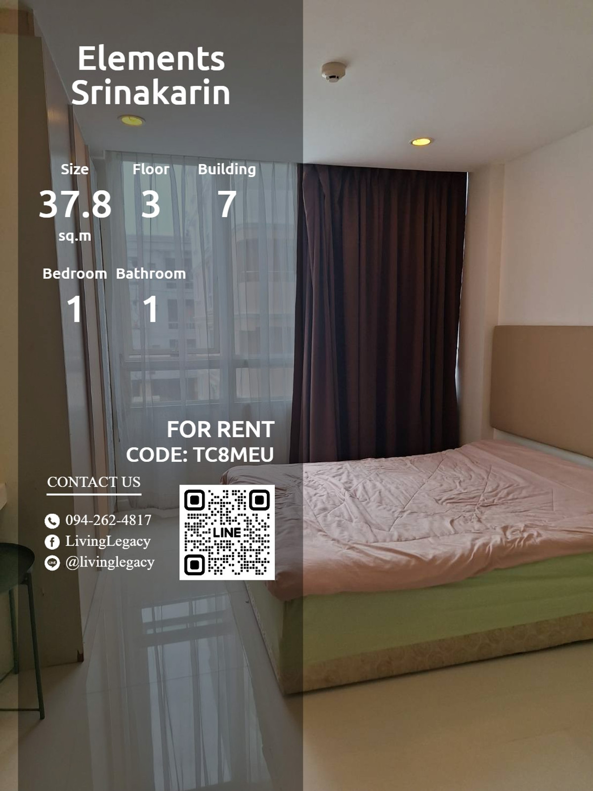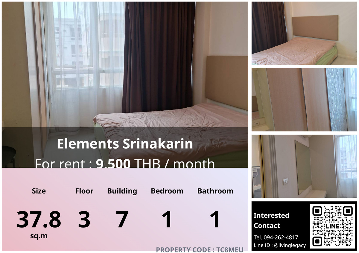 🏠 TC8MEU ให้เช่าคอนโด Elements Srinakarin 37.8 ตร.ม. ชั้น 3 ตึก 7 1 นอน 1 น้ำ ✨ พร้อมอยู่ทันที! ห้องสวยแต่งครบ พร้อมเข้าอยู่ได้เลย! 🔍รายละเอียด - จำนวนห้องนอน: 1 - จำนวนห้องน้ำ: 1 - พื้นที่ใช้สอย (ตร.ม.): 37.8 - ชั้นที่: 3 - อาคาร: 7 🌟 ไฮไลท์ห้องนี้! 🌟 🌟สิ่งอำนวยความสดวกต่างๆ - เครื่องปรับอากาศ - เฟอร์นิเจอร์ - เครื่องซักผ้า - เตา - ตู้เย็น - ที่จอดรถ 📞 รีบจองด่วน! สอบถามรายละเอียดเพิ่มเติม ราคา 9500 บาท รหัสทรัพย์สิน: TC8MEU สนใจติดต่อ แอดไลน์ ID: @livinglegacy เฟสบุ๊ค: LivingLegacy WhatsApp: https://wa.me/ คลิกเพื่อดูเบอร์โทรติดต่อ สนใจห้องอื่นๆในโครงการคลิก : https://living-legacy.atrobot.asia/property-listing/65af311155dd1c90c1105ea2 #ElementsSrinakarin #TrainNightMarketSrinakarin #NyoOng #NuanwanSuksaSchool #Srinagarindra38 #ChampMechanicFactoryCompanyLimitedบริษัทแชมป์แมคคานิคแฟคตอรี่จำกัด #ERECompanyLimited #PerfectArtSchool #BowmanIngredientsThailandCompanyLimited #MINTANACOMPANYLIMITED #WachirathamSathitSchool