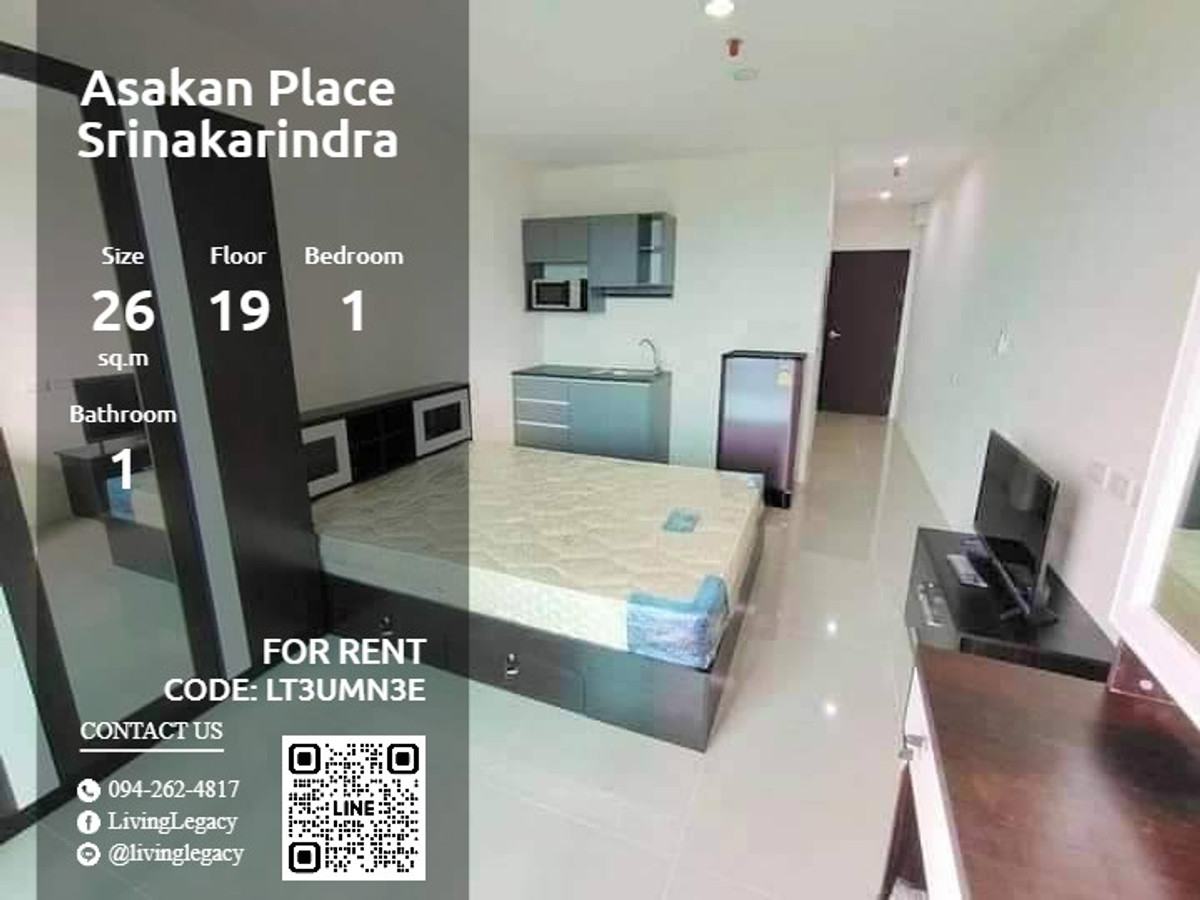 LT3UMN3E ให้เช่าคอนโด Asakan Place Srinakarindra 26 ตร.ม. ชั้น 19 line id : @livinglegacy