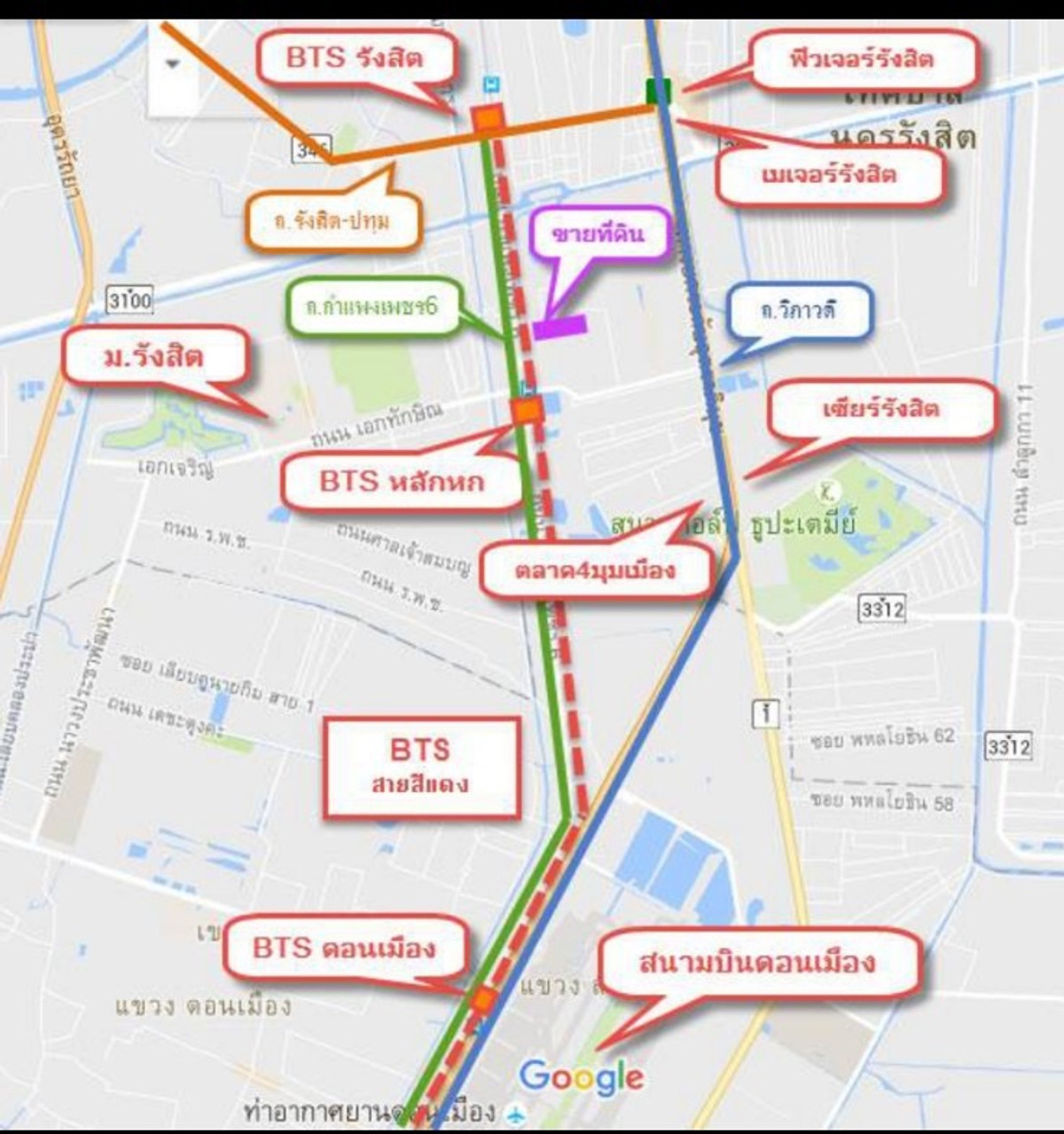 ด่วน!! ขายที่ดินแปลงสวย ย่านรังสิต (อัปเดต*** พึ่งไถดินยกระดับ โล่งโปร่งพร้อมใช้งาน) 8 ไร่ 57 ตารางวา ติดรถไฟฟ้าสายสีแดง ห่างจากสถานีหลักหก 500ม. 1 สถานีถึงสนามบินดอนเมือง เดินทางสะดวก ใกล้สิ่งอำนวยความสะดวกครบครัน ** ใกล้รถไฟฟ้าสายสีแดง (สถานีเดียวถึงสนามบินดอนเมือง /สถานีรังสิต , 7 สถานีถึงสถานีบางซื่อใจกลางเมือง) **อนาคตมีโครงการเชื่อม 3 สนามบิน มีรถไฟความเร็วสูงไทย-จีนแล่นผ่าน ** ทางเข้าเดียวกันกับเมืองเอกจากถนนพหลโยธิน 87 ** เลี้ยวขวาซอยถึงก่อนปั๊ม Shell ทางไปรร.สายปัญญา รังสิต ** ใกล้ห้างฟิวเจอร์พาร์ค / เมเจอร์รังสิต / เซียร์ รังสิต / Tesco Lotus รังสิต / ตลาดสี่มุมเมือง / Big C รังสิต และ Makro รังสิต ** ใกล้รพ. แพทย์รังสิต / รพ.ปทุมเวช / รพ. เปาโลรังสิต ** ใกล้ม.รังสิต / รร.สาธิตรังสิต / รร.สายปัญญารังสิต ** ใกล้สนามกอล์ฟ เมืองเอก / สนามเมืองเอก วิสต้า กอล์ฟ คอร์ส *** และอีกมากมาย ที่ดิน ราคา 29,500 บาท/ตรว. (หน้ากว้าง 50 ม. ลึก 300 ม. ท้ายกว้าง 37 ม.) หรือ 12 ล้าน/ไร่) ติดต่อสอบถาม คุณบาส คลิกเพื่อดูเบอร์โทรติดต่อ หากต้องการซื้อจริงราคาคุยกันได้ / รับนายหน้าขายที่ดิน