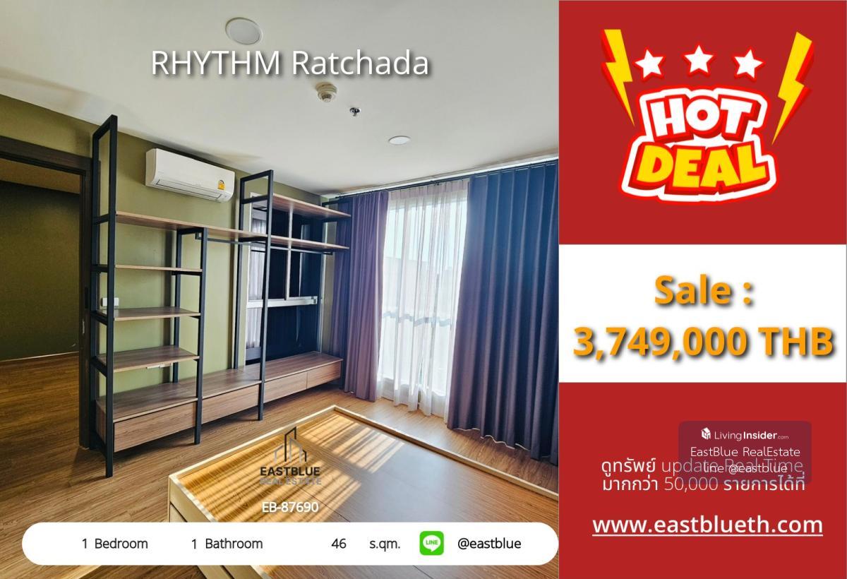 Project : RHYTHM Ratchada ID : EB-87690LY 1 Bed 1 Baht Size :46 sqm Selling Price : 3,799,000 - Contact, Appointment for viewing. Line: @eastblue / https://lin.ee/yNwHbFs WhatsApp: คลิกเพื่อดูเบอร์โทร