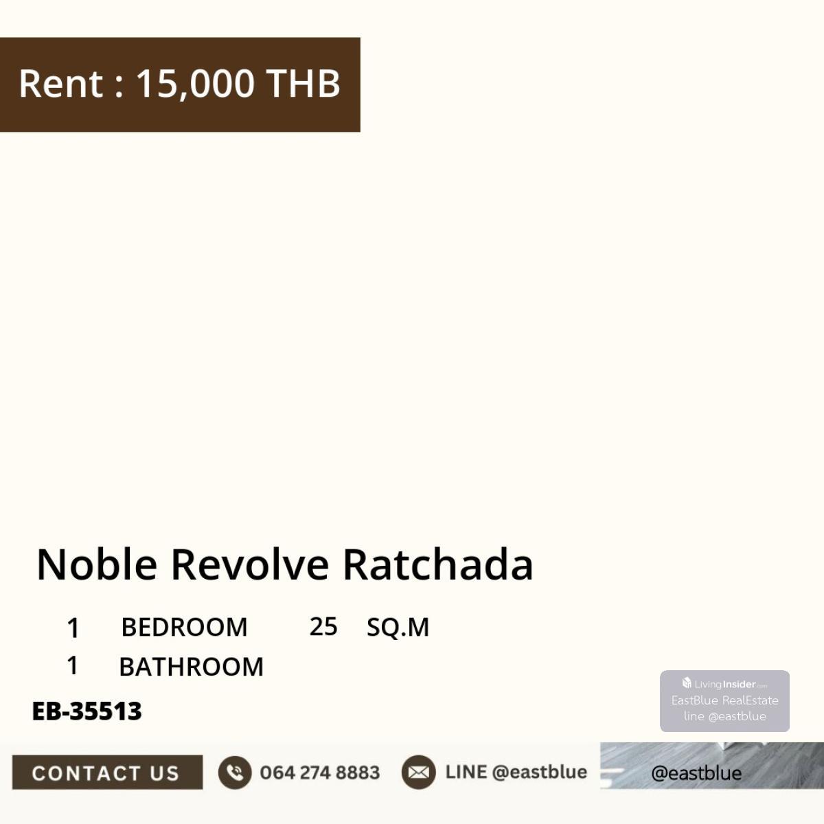 Project : Noble Revolve Ratchada ID : EB-35513CP 1 Bed 1 Baht Size :25 sqm Rental Price : 15,000 THB per month BTS / MRT :Thai Cultural Center - minimum contract 6 month - 1 year - Contact, Appointment for viewing. Line: @eastblue / https://lin.ee/yNwHbFs WhatsApp: คลิกเพื่อดูเบอร์โทรติดต่อ - ดูทรัพย์อื่นๆมากกว่า 50,000 รายการ ,explore over 50,000 listings on our website: eastblueth .com - ❗️❗️Not Accept Co-agent❗️❗️ For rent: Noble Revolve Ratchada condo in the city center, next to the Thai Cultural Center MRT, convenient transportation. • 1 bedroom, 1 bathroom, size 25 square meters • Rent price 15,000 Baht per month • Suitable for those who want a comfortable lifestyle near work and entertainment Project highlights of Noble Revolve Ratchada • Swimming pool with city view • Fitness center with complete exercise equipment • 24-hour security system • Spacious garden and common areas Nearby locations • MRT Thai Cultural Center (0 km) • Central Rama 9 (1.8 km) • Rama 9 Hospital (2.5 km) • Thai Chamber of Commerce University (3.5 km) • Watthanawitthaya School (7 km) Meets the needs of city dwellers seeking complete convenience and quick transportation. Interested parties, please contact urgently! #ForRentCondo #NobleRevolveRatchada #RatchadaCondoForRent #NearMRTThaiCulturalCenter #GoodLocationCondo