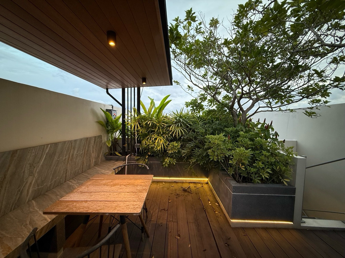 ตั้งอยู่ห่างจากสถานีรถไฟฟ้าสายสีเหลือง มหาดไทยเพียง 650 เมตร ▪️ใกล้จุดขึ้นลงทางด่วน ▪️ใกล้ foodland ลาดพร้าว 👉ราคาเช่า 90,000 / เดือน 👉ขาย 15.9 ลบ (ค่าธรรมเนียมโอนคนละครึ่ง) ------------------------------------------- สนใจสอบถามรายละเอียดเพิ่มเติม: 📞 โทร: คลิกเพื่อดูเบอร์โทรติดต่อ (คุณหนิง) 📱 Line: Maaragent ------------------------------------------- รายละเอียดบ้าน: - ชั้น 1: ห้องนั่งเล่นและห้องครัว พร้อมสวนหลังบ้าน เพดานสูง Double Volume ผนังครัวและห้องนั่งเล่นตกแต่งด้วยหินอ่อนแท้ - ชั้นลอย: ห้องนั่งเล่นสำหรับการพักผ่อน - ชั้น 2: ห้องนอนใหญ่พร้อม Walk-in Closet และห้องน้ำมีอ่างอาบน้ำ - ชั้น 3: ห้องนอนเล็ก 2 ห้อง - ชั้นดาดฟ้า: สวนดาดฟ้า