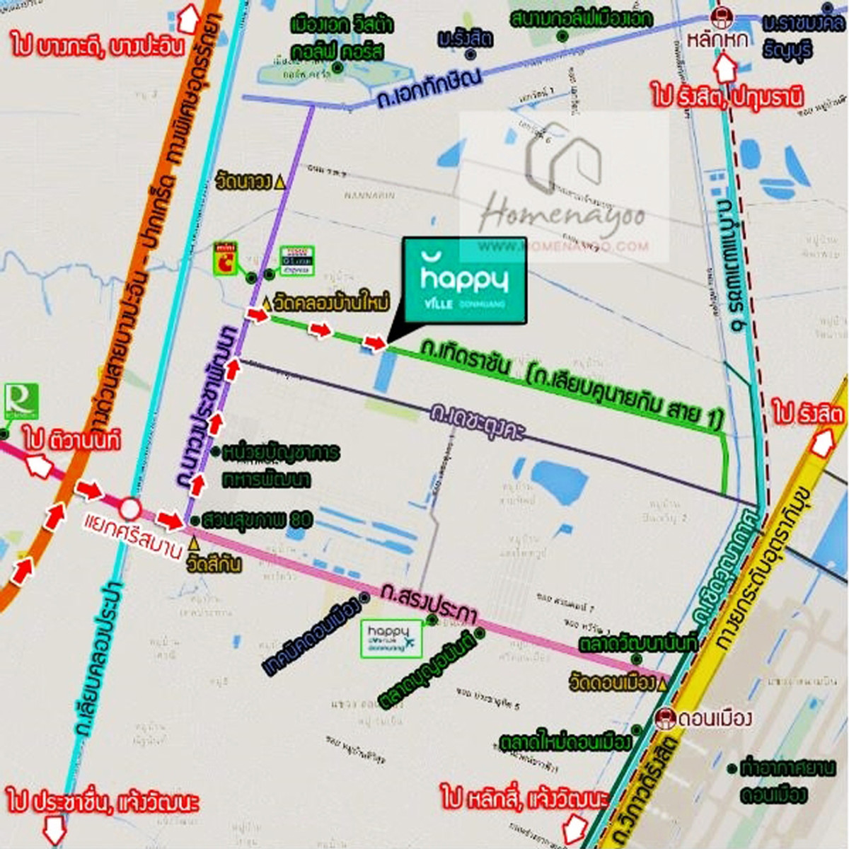 ขายทาวน์โฮม2ชั้น 32.7ตรว. หลังริม ม.แฮปปี้วิลล์ ดอนเมือง สภาพดี ไม่เคยเข้าอยู่ ราคาพร้อมคุย . ทาวน์โฮม 2 ชั้น 32.7 ตารางวา พื้นที่ใช้สอย 134 ตารางเมตร 3ห้องนอน 3ห้องน้ำ 1ห้องครัว 1ห้องโถงรับแขก 2ที่จอดรถ - แถมแอร์1ตัว , ปั๊มน้ำ+แท้งค์น้ำ - ต่อเติมห้องครัวหลังบ้านพร้อมเค้าเตอร์และบิ้วท์อินครัว - ต่อเติมห้องน้ำด้านหลังในห้องครัว (ห้องอาบน้ำพร้อมอ่างอาบน้ำ) - วัสดุปูพื้น : ชั้นล่าง-แกรนิตโต้ / ชั้นบน-ลามิเนต . ที่ตั้งทรัพย์สิน : ม.แฮปปี้วิลล์ ดอนเมือง (ซ.4/2) ถ.เทิดราชัน แขวงสีกัน เขตดอนเมือง กรุงเทพฯ การเดินทาง เริ่มจาก ถ.ประชาชื่น-ปากเกร็ด / ถ.ศรีสมาน > แยกศรีสมาน > ถ.สรงประภา > ถ.นาวงประชาพัฒนา > ถ.เลียบคูนายกิม สาย1 / ถ.เทิดราชัน >—1 กม.—> Happy Ville ดอนเมือง *ติด ซ.เทิดราชัน13 พิกัดทรัพย์ : https://maps.app.goo.gl/PgJu9aJSu67uDjQDA . ราคาขาย 3,099,000 บาท . จุดเด่น - ทาวน์โฮมหลังริม พื้นที่กว้างพิเศษ มากถึง 32.7 ตรว. บ้านไม่เคยเข้าอยู่ - ตัวบ้านสภาพดี มีพื้นที่ข้างบ้าน พร้อมเข้าอยู่ พื้นที่ใช้สอยเทียบเท่าบ้านแฝด - เป็นโครงการขนาดกลาง ไม่วุ่นวาย เพื่อนบ้านส่วนใหญ่เป็นวัยทำงาน - โครงการติดกับถนนเทิดราชัน เดินทางเข้า-ออกเมืองสะดวก ถ.สรงประภา ถ.นาวงประชาพัฒนา ถ.เลียบคูนายกิม สาย1 และ ถ.เทิดราชัน - ใกล้รถไฟฟ้าสายสีแดง สถานีดอนเมือง - ใกล้ทางด่วนยกระดับอุตราภิมุข ด่านศรีสมาน - ใกล้ตลาดสด ตลาดนัด ร้านค้า ร้านอาหาร โรงพยาบาล ห้างสรรพสินค้า และหน่วยงานราชการ - ราคาต่อรองได้ - บริการจัดสินฟรีเชื่อโดยมืออาชีพ - มีบริการรับผ่อนตรง . สิ่งอำนวยความสะดวกในโครงการ – สวนหย่อมขนาดใหญ่ – คลับเฮ้าส์ – สระว่ายน้ำ – CCTV – รปภ. 24 ชม. . สถานที่ใกล้เคียง – วัดนาวง : 1.9 กม. – สวนสุขภาพเฉลิมพระเกียรติ 80 พรรษา : 2.7 กม. – สวนสุขภาพดอนเมือง : 2.7 กม. – สน.ดอนเมือง : 3.3 กม. – วัดสีกัน : 3.7 กม. – ม.รังสิต : 3.8 กม. – โรบินสัน ศรีสมาน : 4.3 กม. – Happy Avenue ดอนเมือง : 4.8 กม. – สนามกอล์ฟ เมืองเอก : 4.8 กม. – ตลาดบุญอนันต์ : 5 กม. – ท่าอากาศยานดอนเมือง : 5 กม. – ร.ร.พระหฤทัยดอนเมือง : 5.2 กม. – สถานีรถไฟดอนเมือง : 6 กม. – อิมแพค เมืองทองธานี : 6 กม. – วัดดอนเมือง : 6.7 กม. – ม.ราชมงคลธัญบุรี : 7.1 กม. – ร.ร.สายปัญญารังสิต : 7.5 กม. – ร.ร.วัดดอนเมือง : 7.4 กม. – รพ.มงกุฎวัฒนะ : 8.5 กม. – รพ.ภูมิพลอดุลยเดช : 9.3 กม. – ไอที สแควร์ หลักสี่ : 10.4 กม. . สนใจติดต่อ คุณแบงค์ เบอร์โทรศัพท์ คลิกเพื่อดูเบอร์โทรติดต่อ / คลิกเพื่อดูเบอร์โทรติดต่อ / คลิกเพื่อดูเบอร์โทรติดต่อ