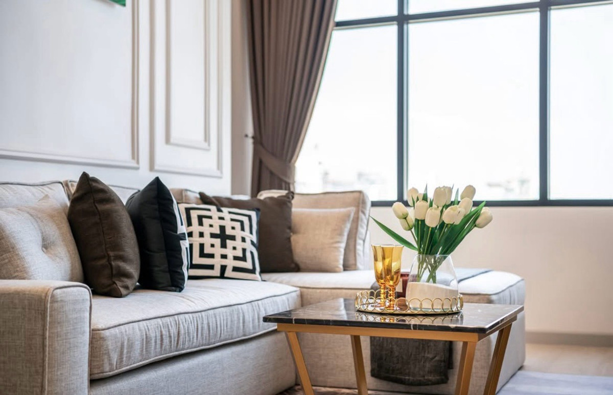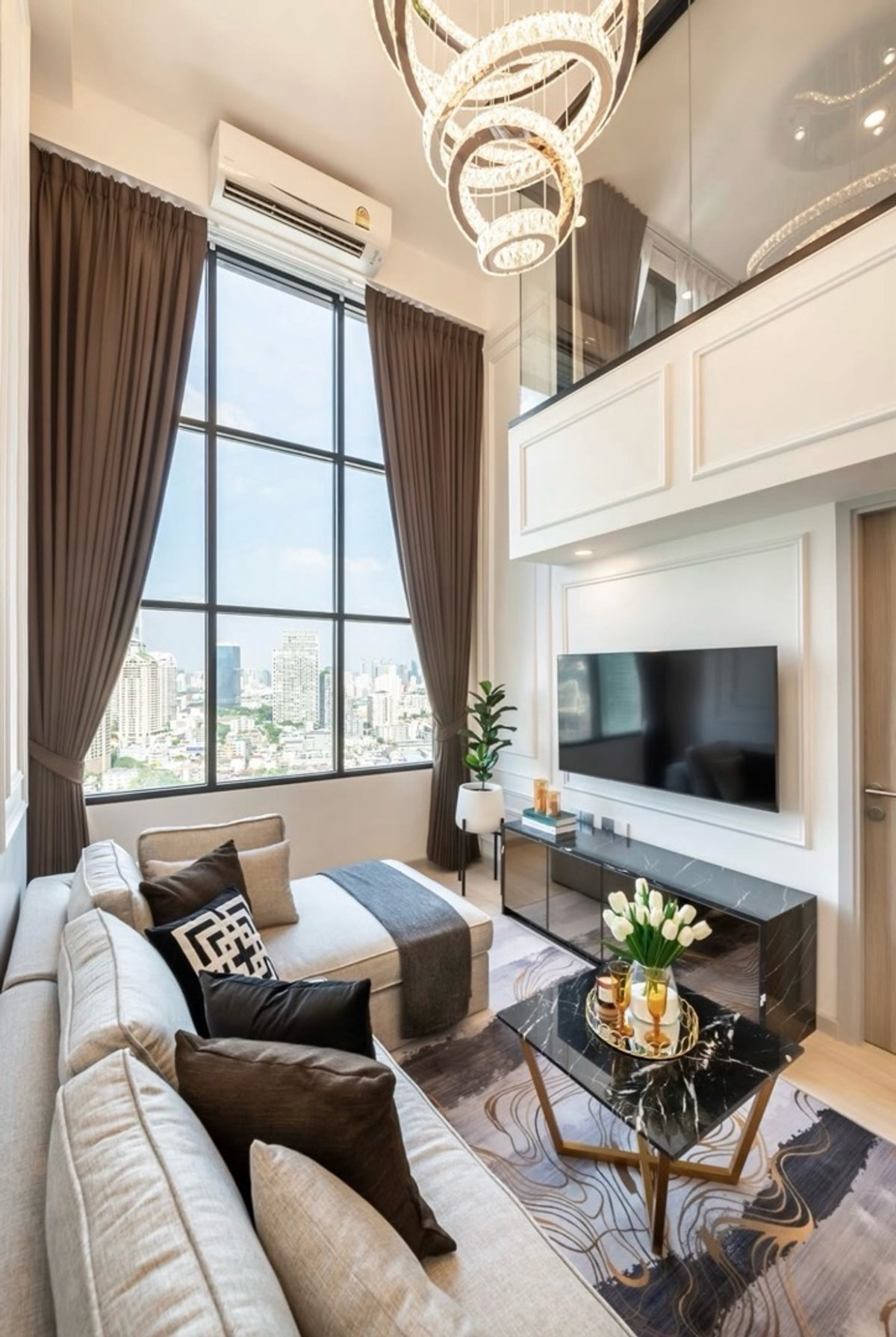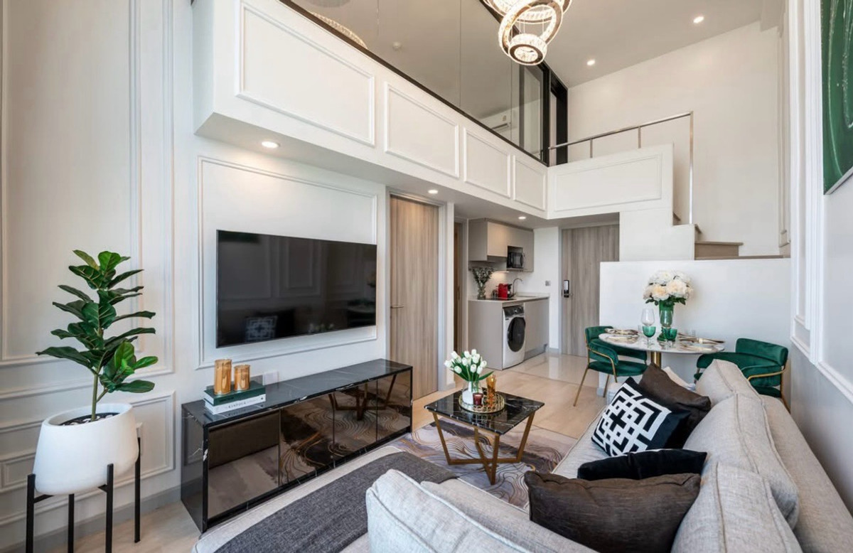 For Rent: Knightsbridge Prime Sathorn Duplex 1 Bed | 44 sq.m. | 29th Floor North-East facing | Panoramic city view ✨ White-Gold X Timeless Luxury design ✨ Designed by award-winning interior designer ✨