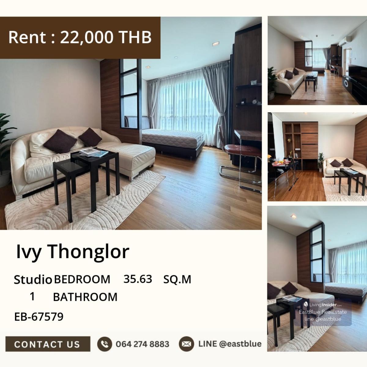 Project : Ivy Thonglor ID : EB-67579PRY Studio Bed 1 Baht Size :35.63 sqm Selling Price : 4,850,000 - Contact, Appointment for viewing. Line: @eastblue / https://lin.ee/yNwHbFs WhatsApp: คลิกเพื่อดูเบ