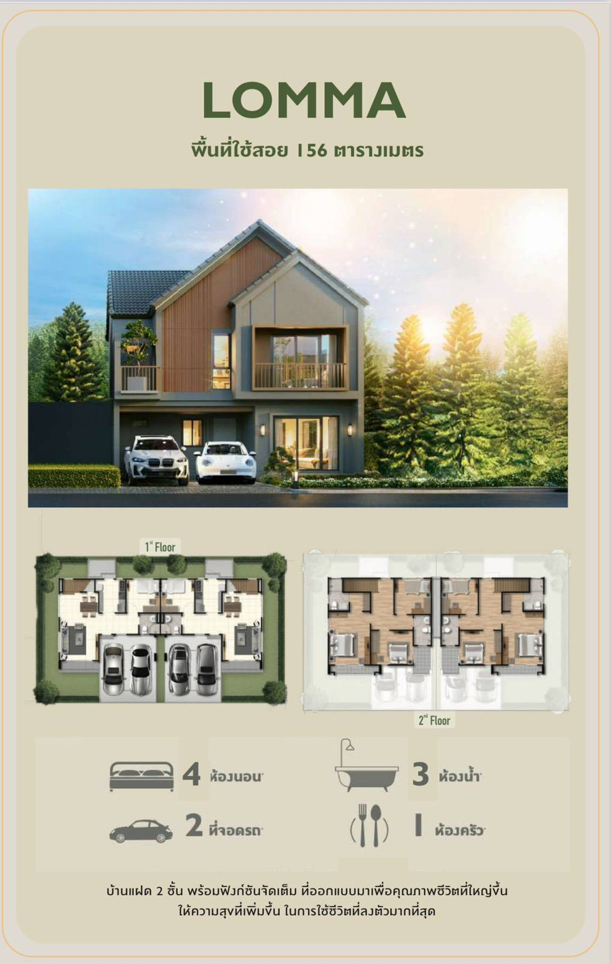 พื้นที่ใช้สอย 156 ตร.ม.